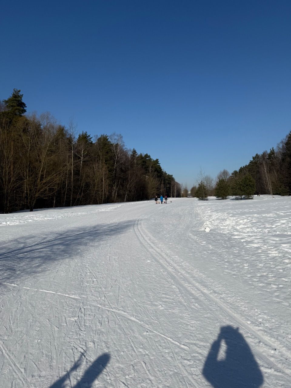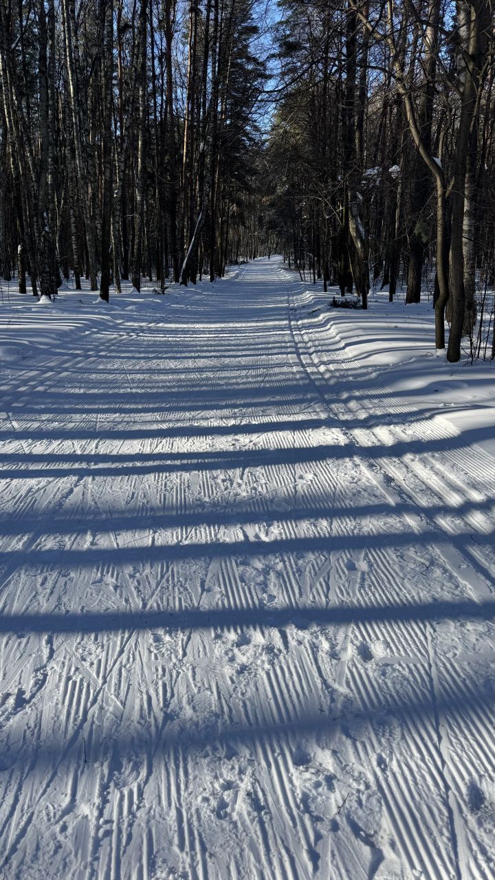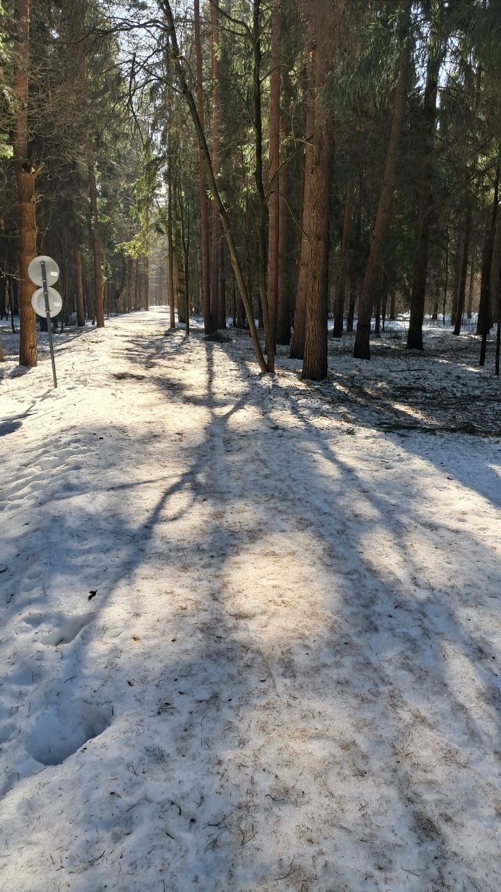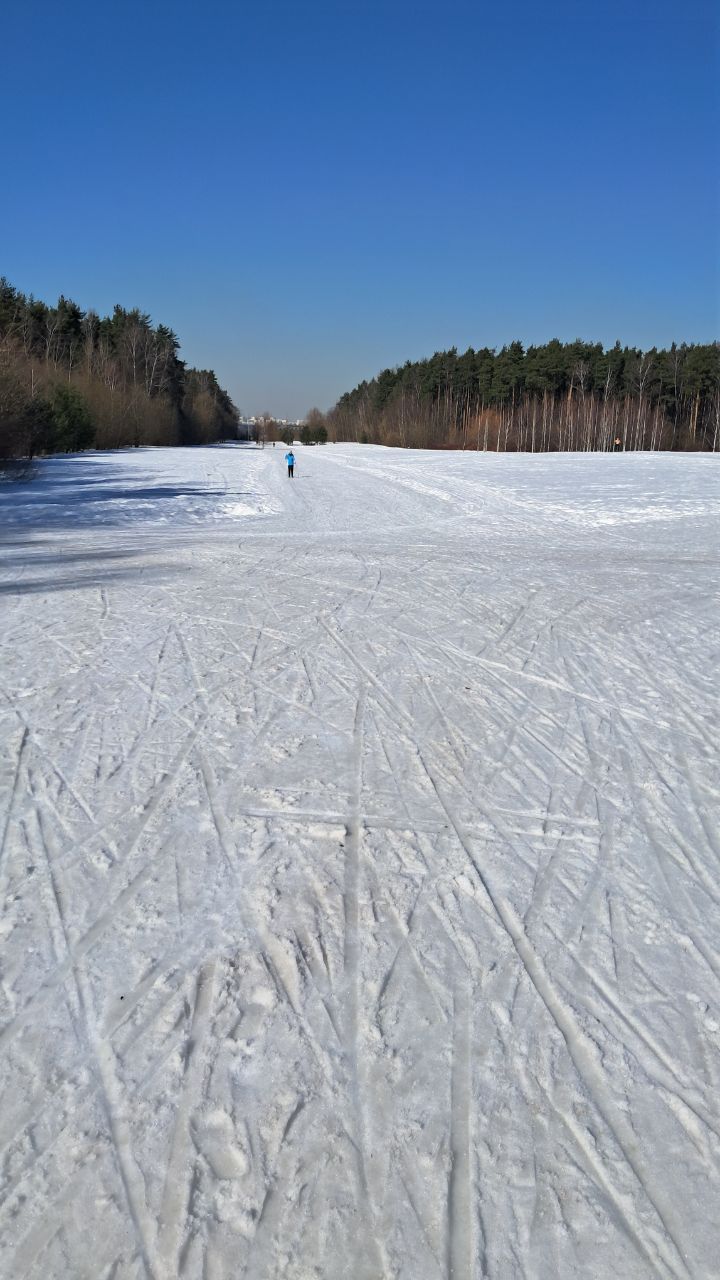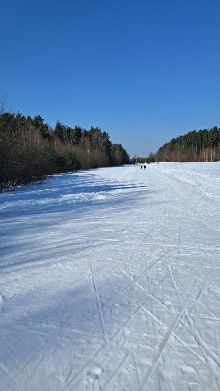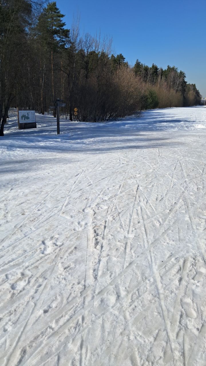 22 марта 2026 года.Парк Мещерский в лесу снега полно, полно его и у пруда подкова, трасса на любой вкус, и фирн, и каша, и свежий снежок, и лединистая в лесу, проталин совершенно не портят карину. Лыжи летят, даже полу асфальтовые. Рекомендую