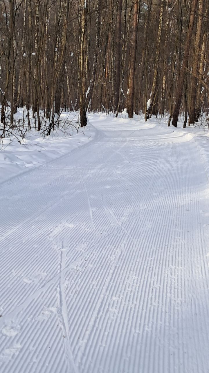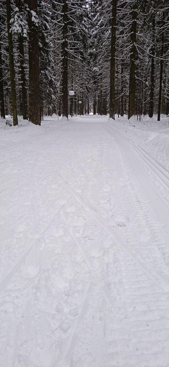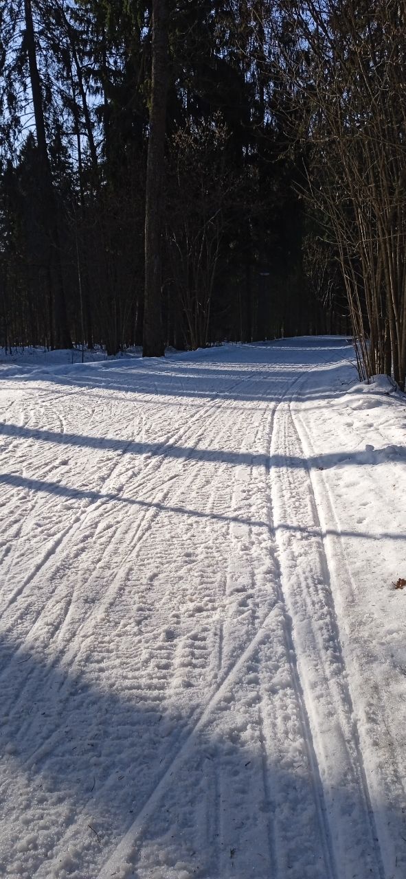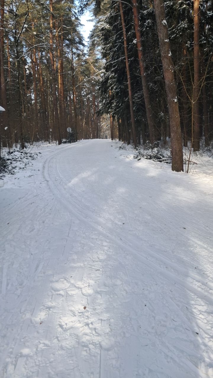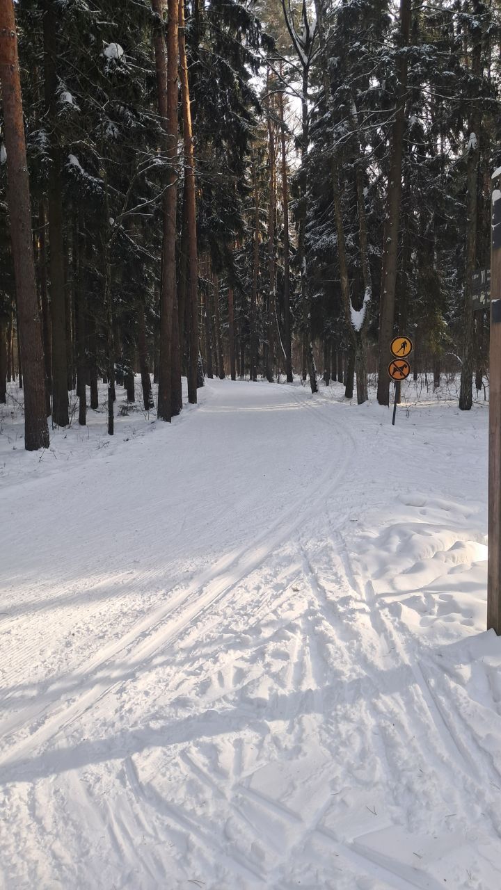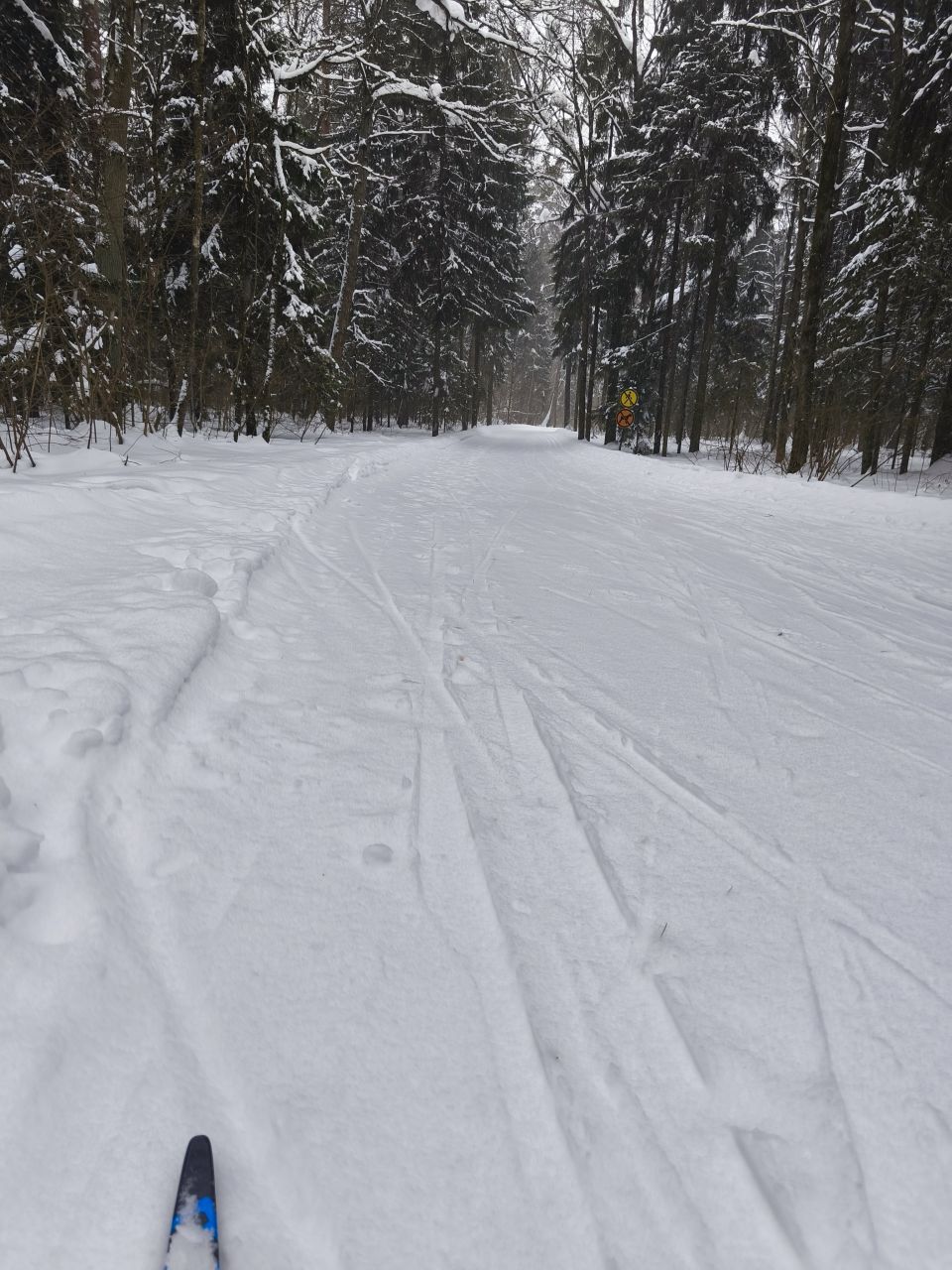 Покатался сегодня с утра, было тяжело с непривычки, лыжников очень много. Пруд ещё не катали, видимо толщина льда не позволяет там сделать трассу, по лесу катается в целом хорошо, попадаются ветки и палки достают до асфальта