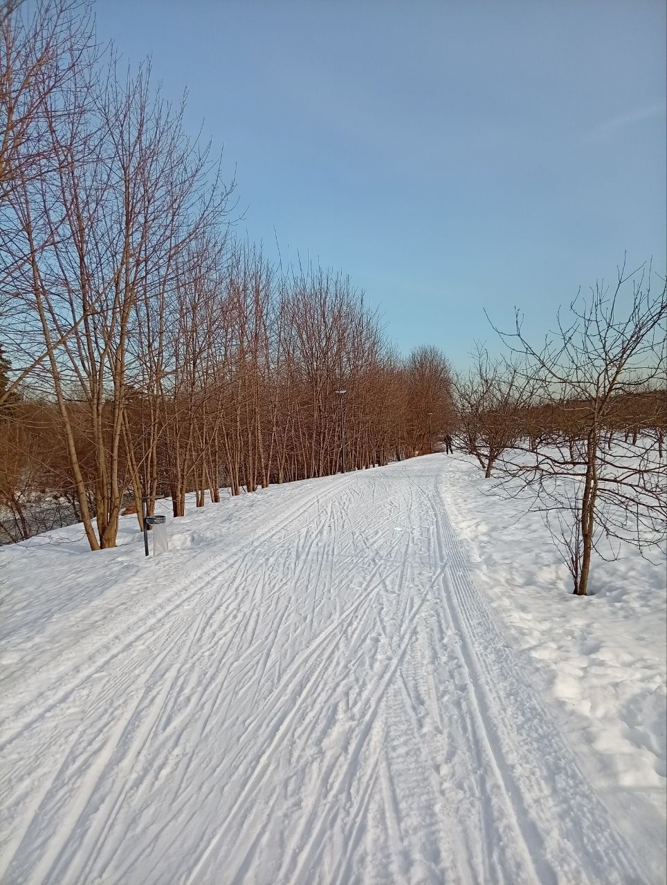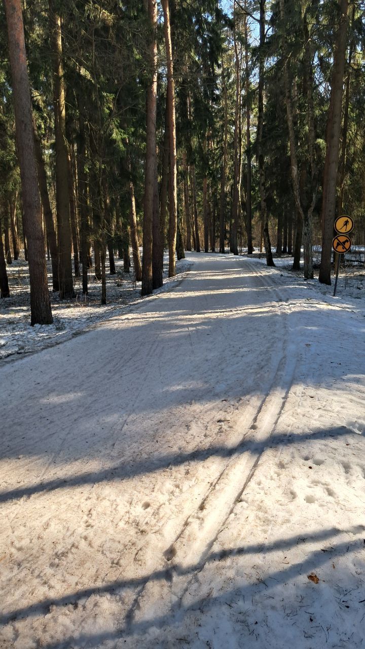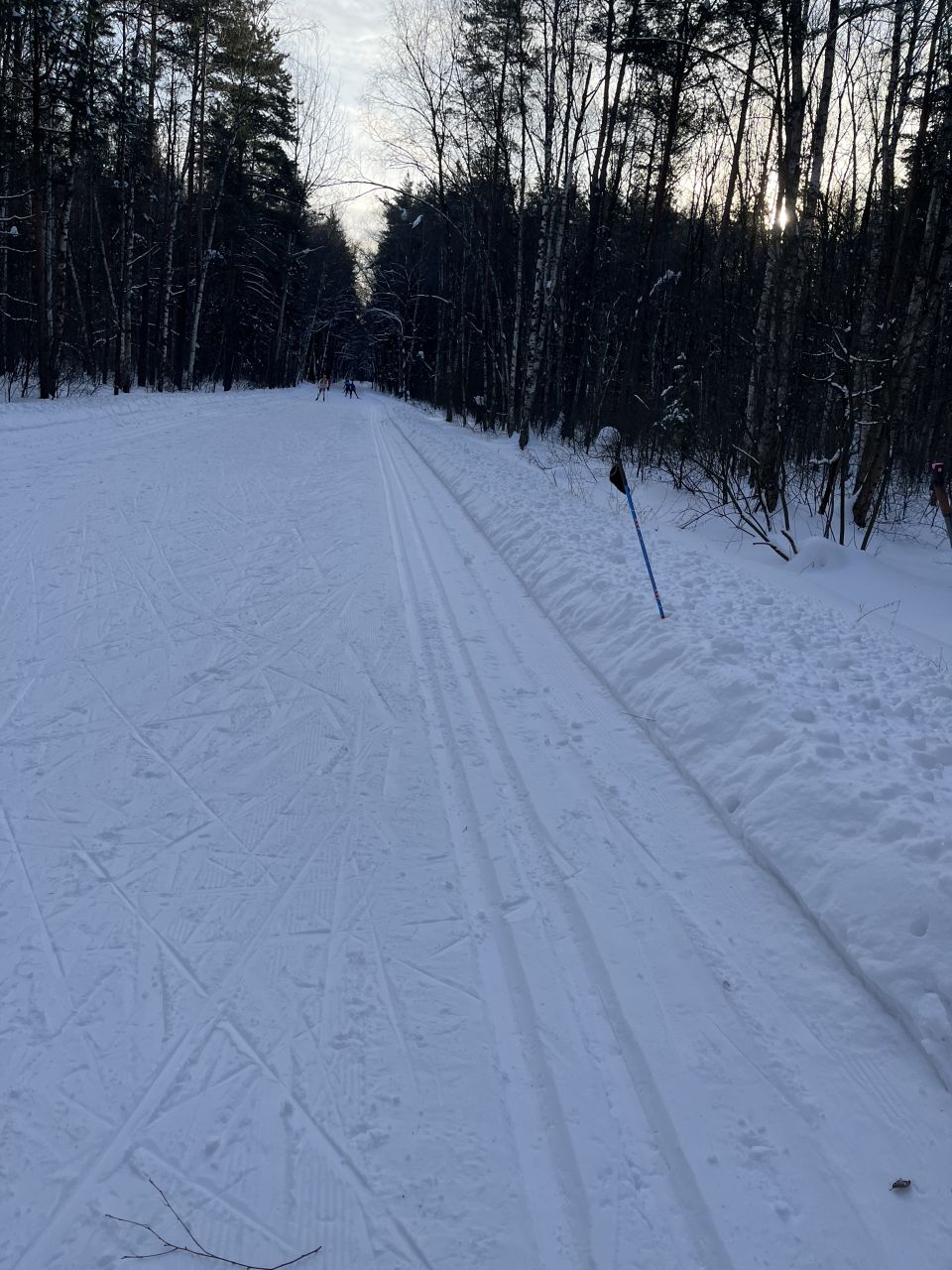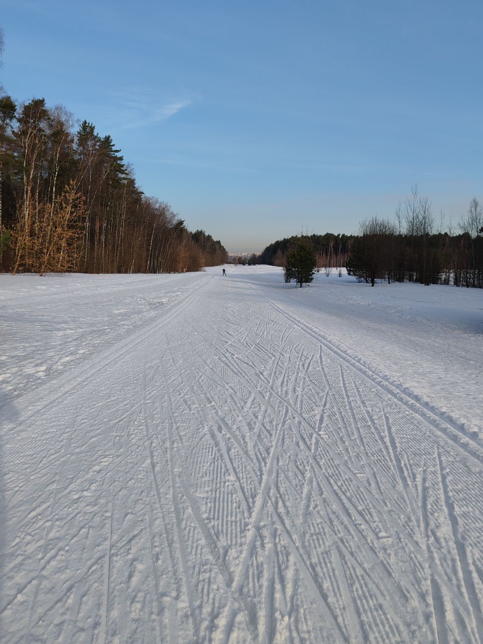 Покатался сегодня с утра, было тяжело с непривычки, лыжников очень много. Пруд ещё не катали, видимо толщина льда не позволяет там сделать трассу, по лесу катается в целом хорошо, попадаются ветки и палки достают до асфальта