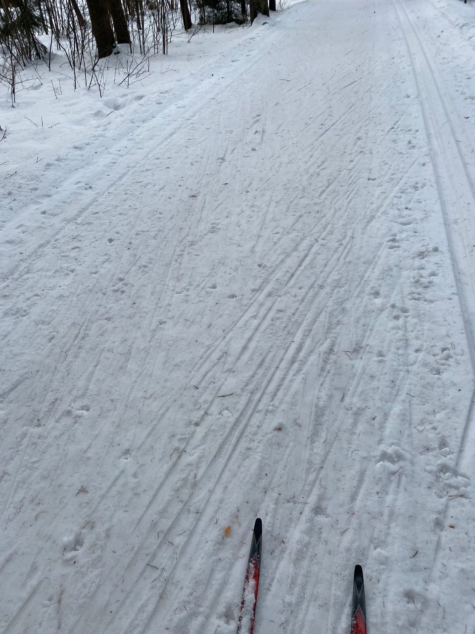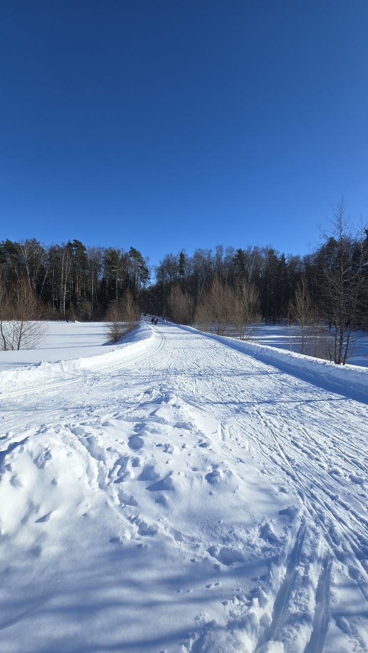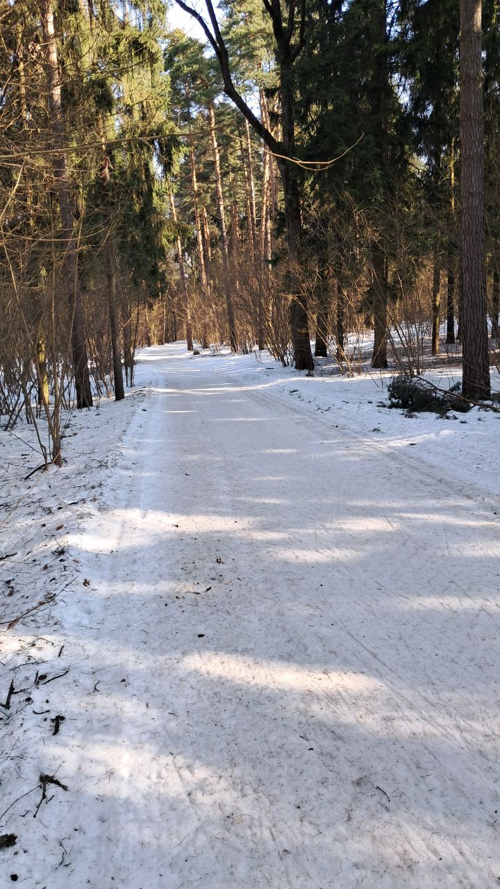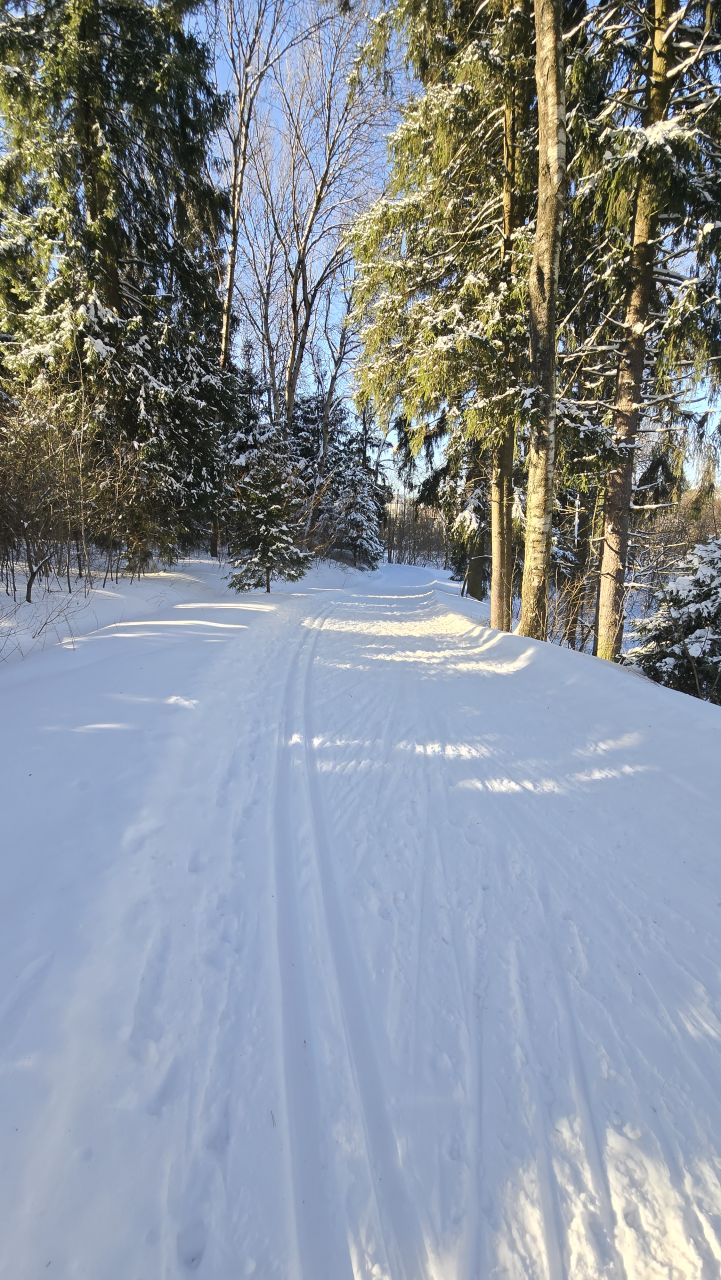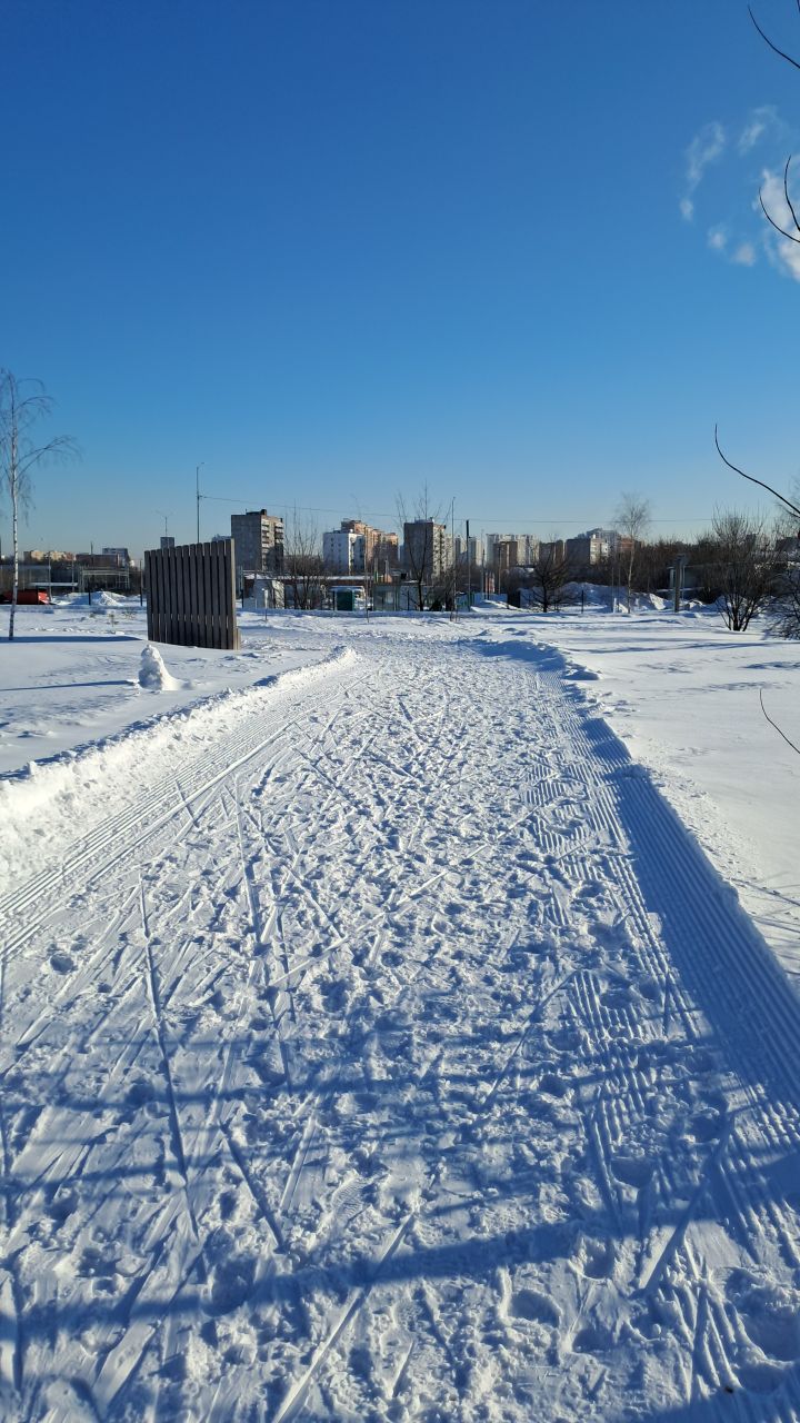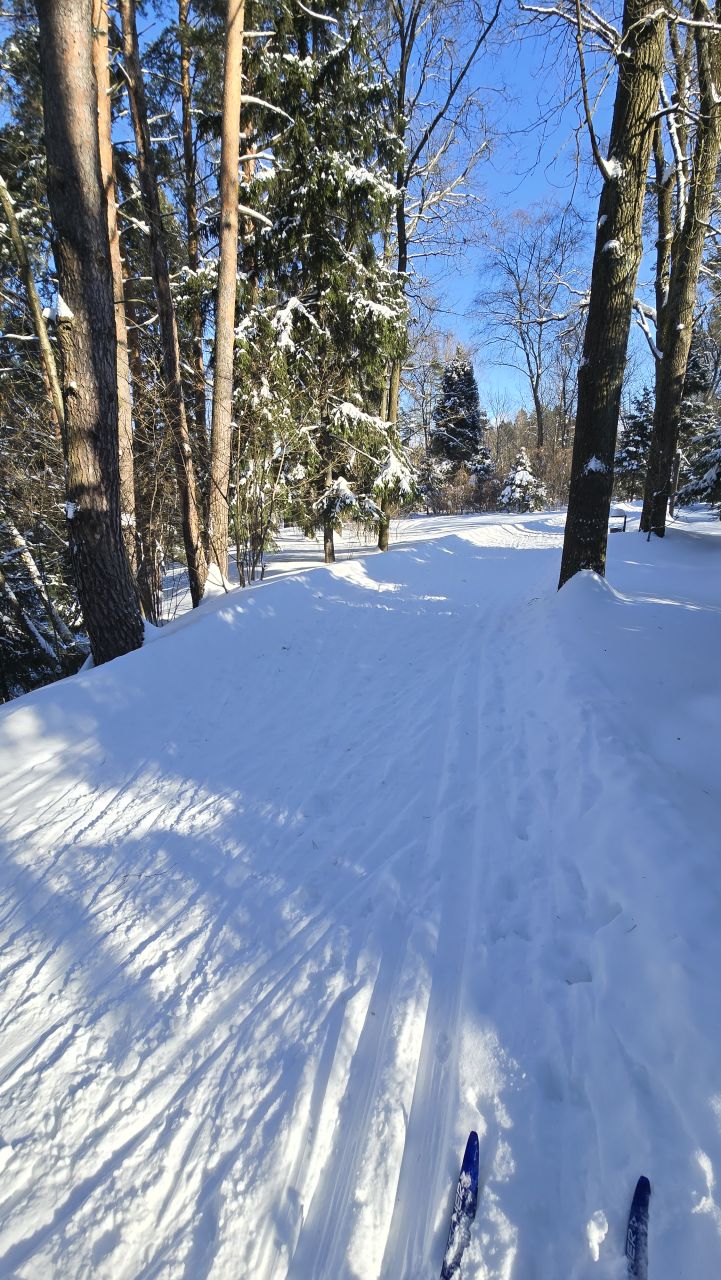 Покатался сегодня с утра, было тяжело с непривычки, лыжников очень много. Пруд ещё не катали, видимо толщина льда не позволяет там сделать трассу, по лесу катается в целом хорошо, попадаются ветки и палки достают до асфальта