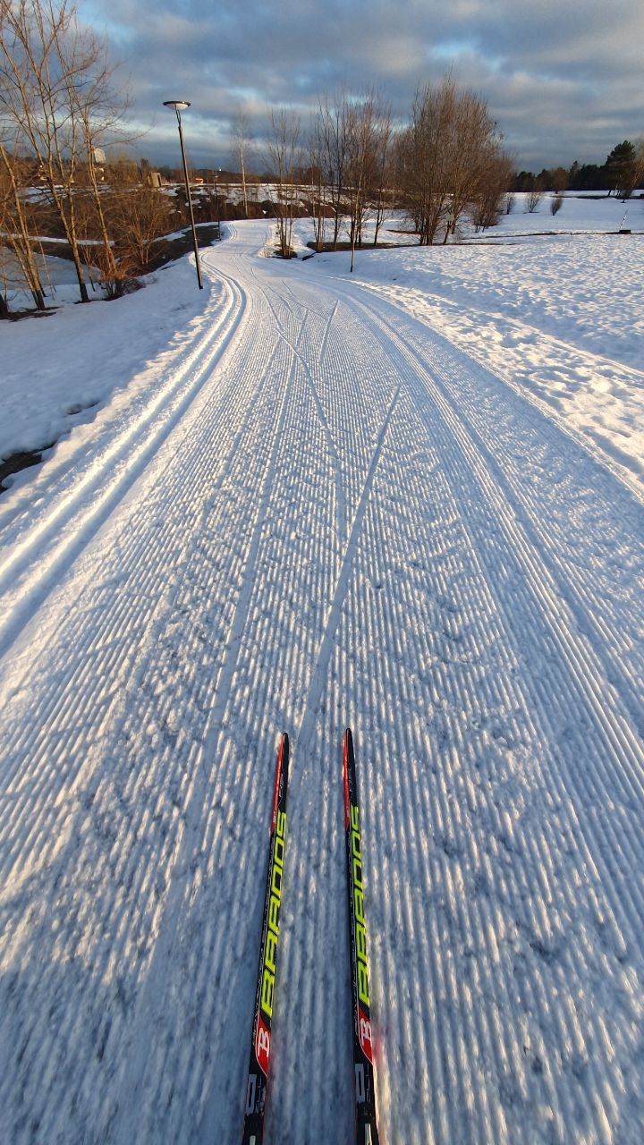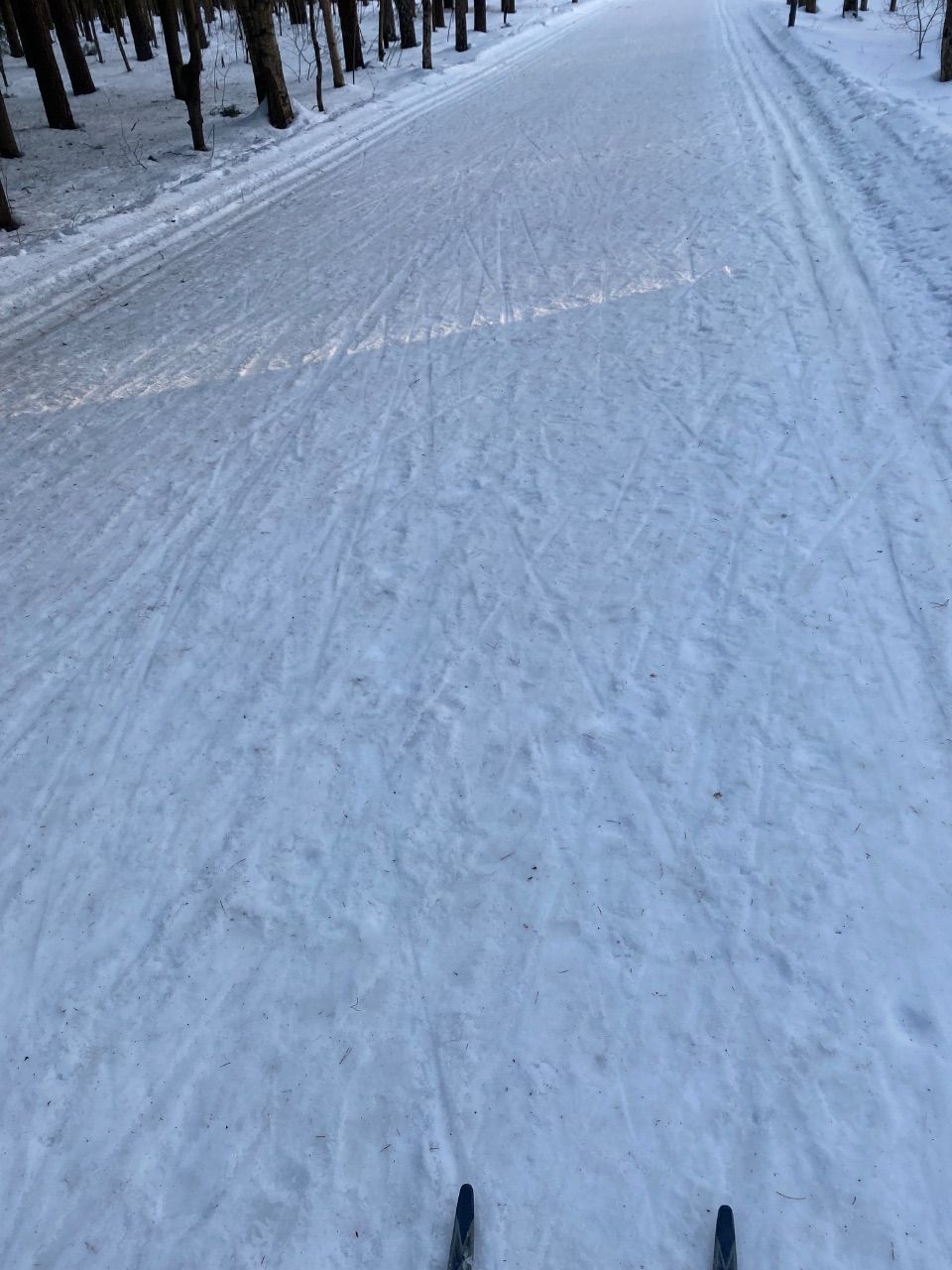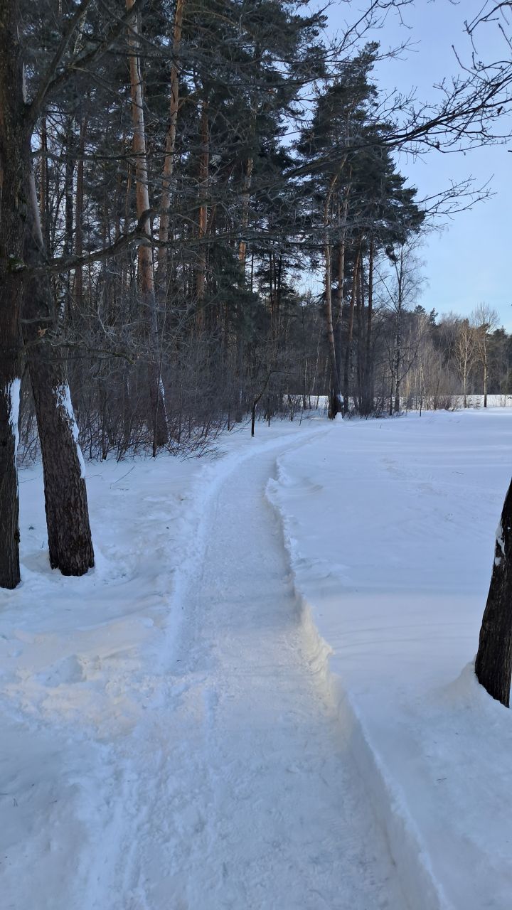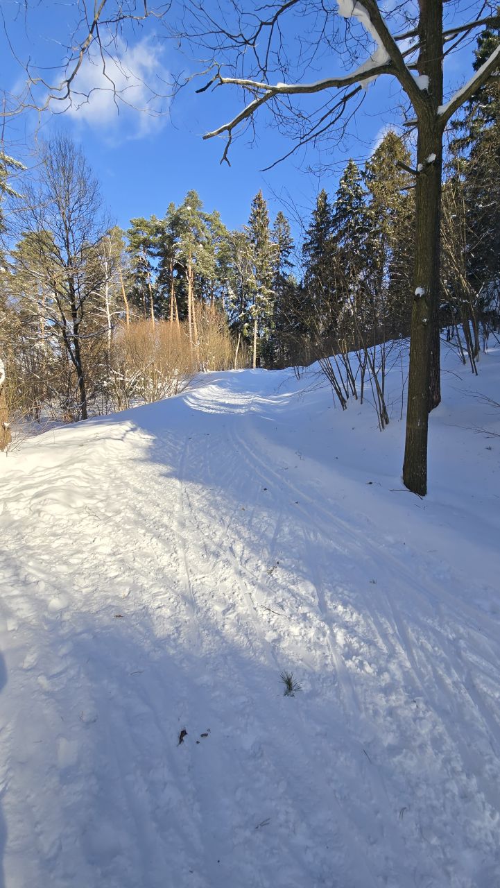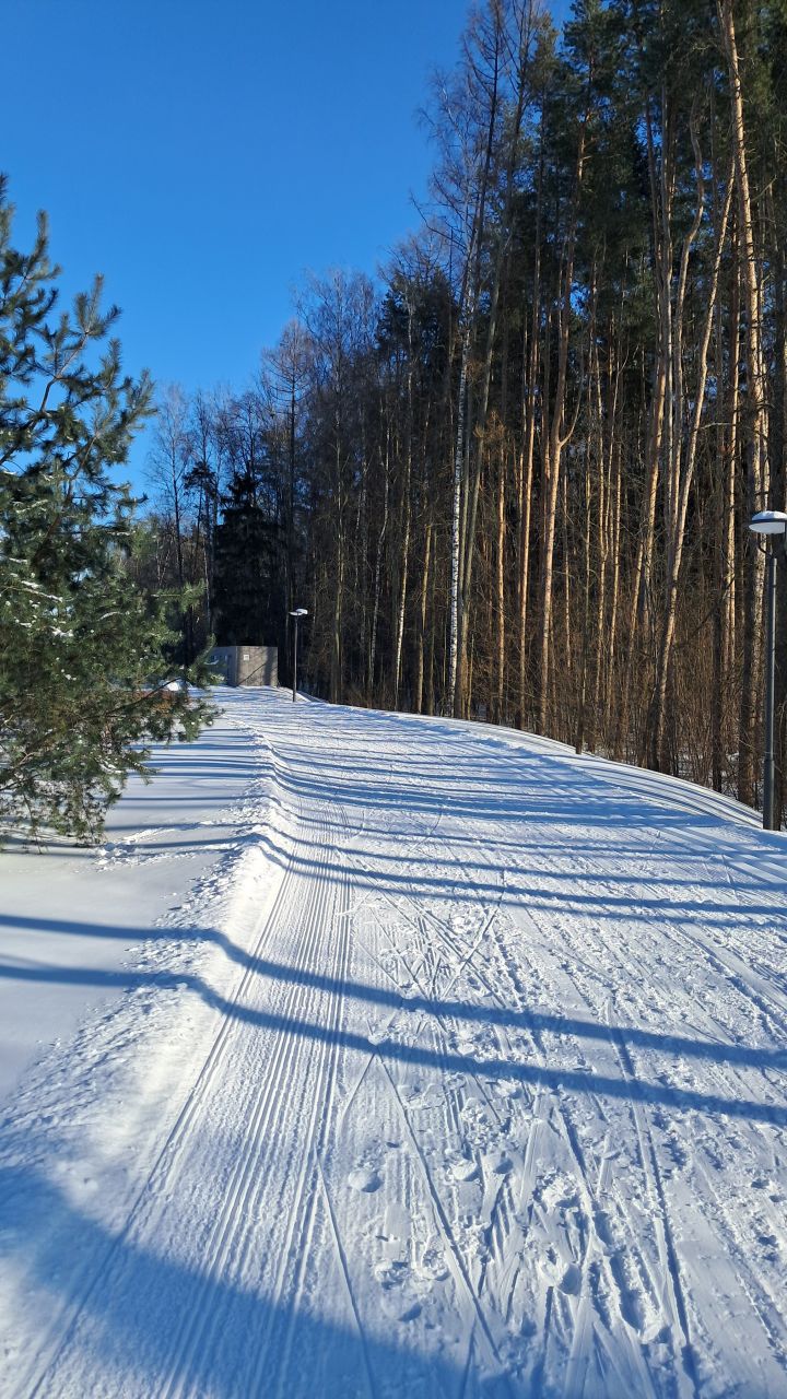 Покатался сегодня с утра, было тяжело с непривычки, лыжников очень много. Пруд ещё не катали, видимо толщина льда не позволяет там сделать трассу, по лесу катается в целом хорошо, попадаются ветки и палки достают до асфальта