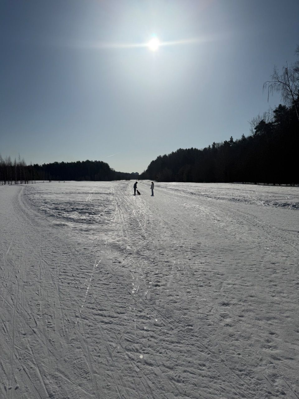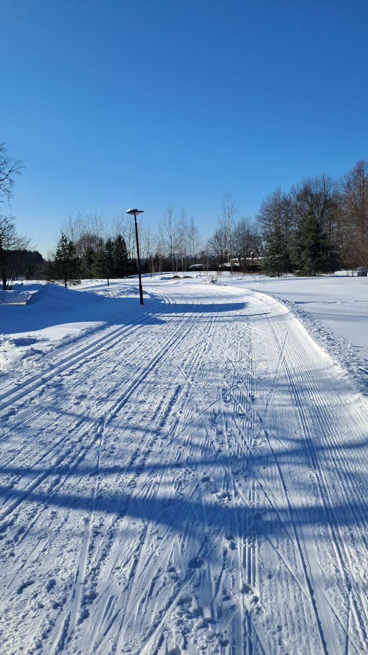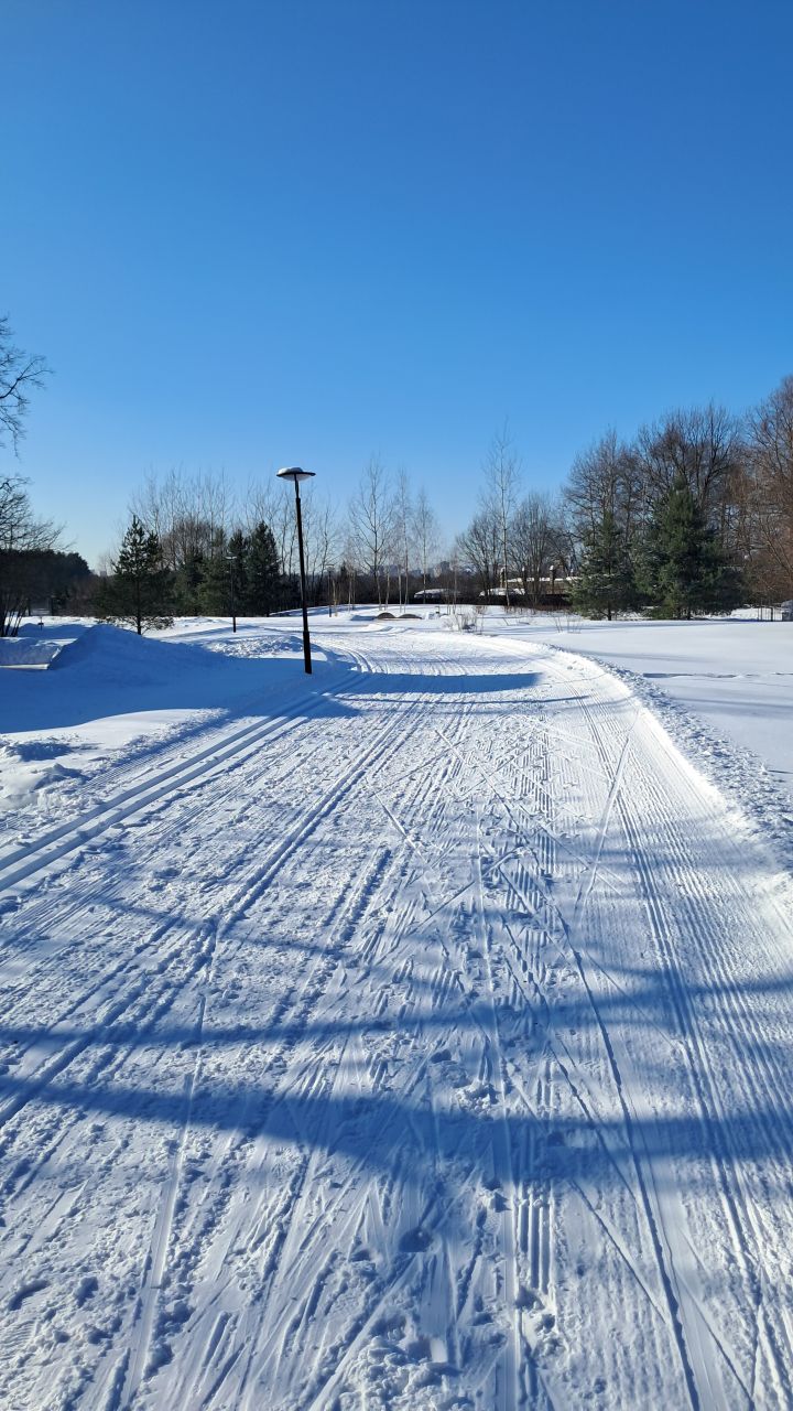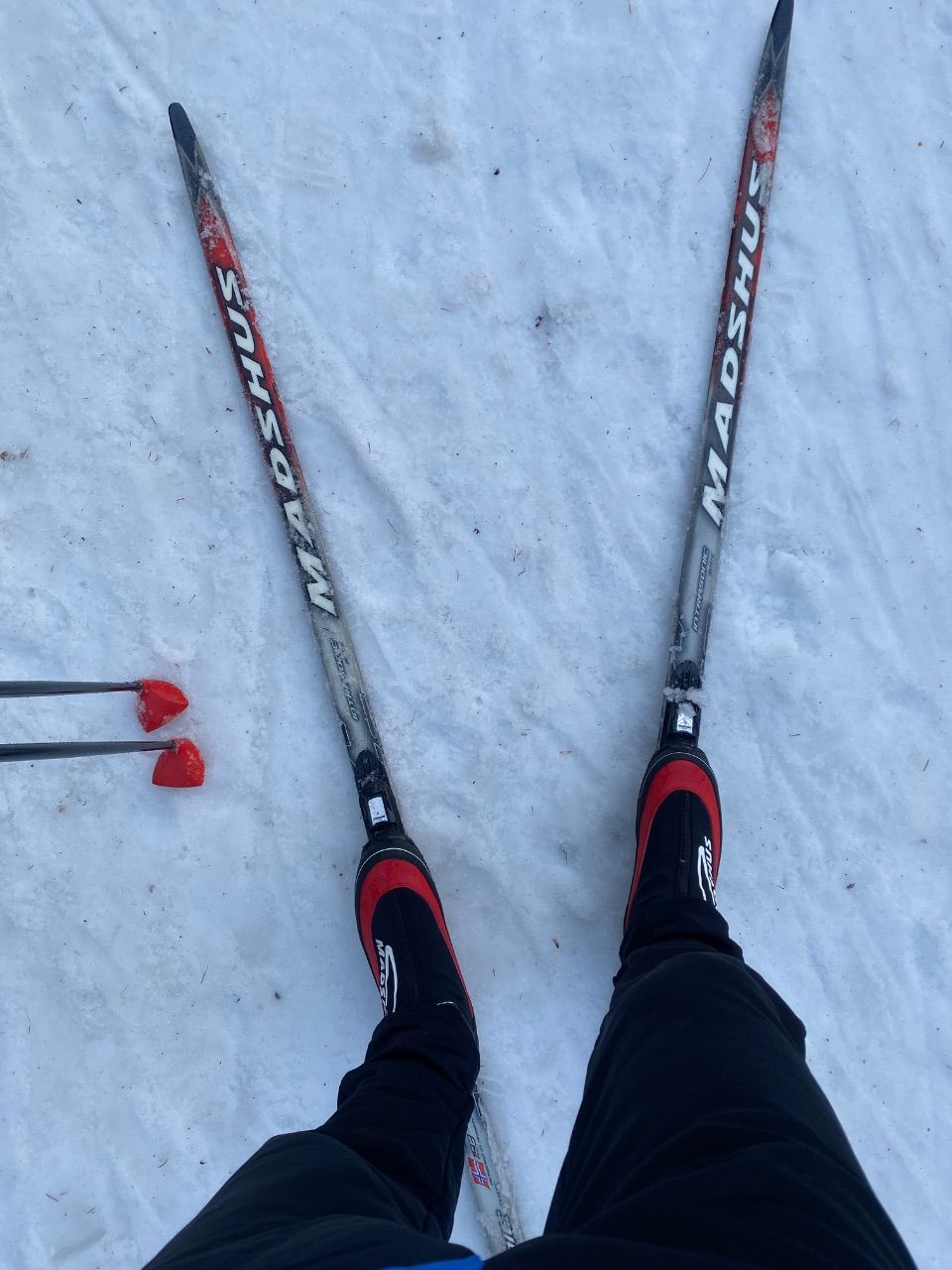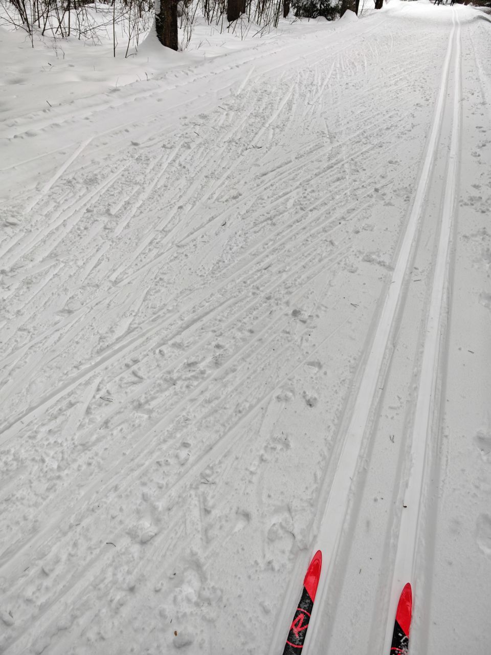 Покатался сегодня с утра, было тяжело с непривычки, лыжников очень много. Пруд ещё не катали, видимо толщина льда не позволяет там сделать трассу, по лесу катается в целом хорошо, попадаются ветки и палки достают до асфальта