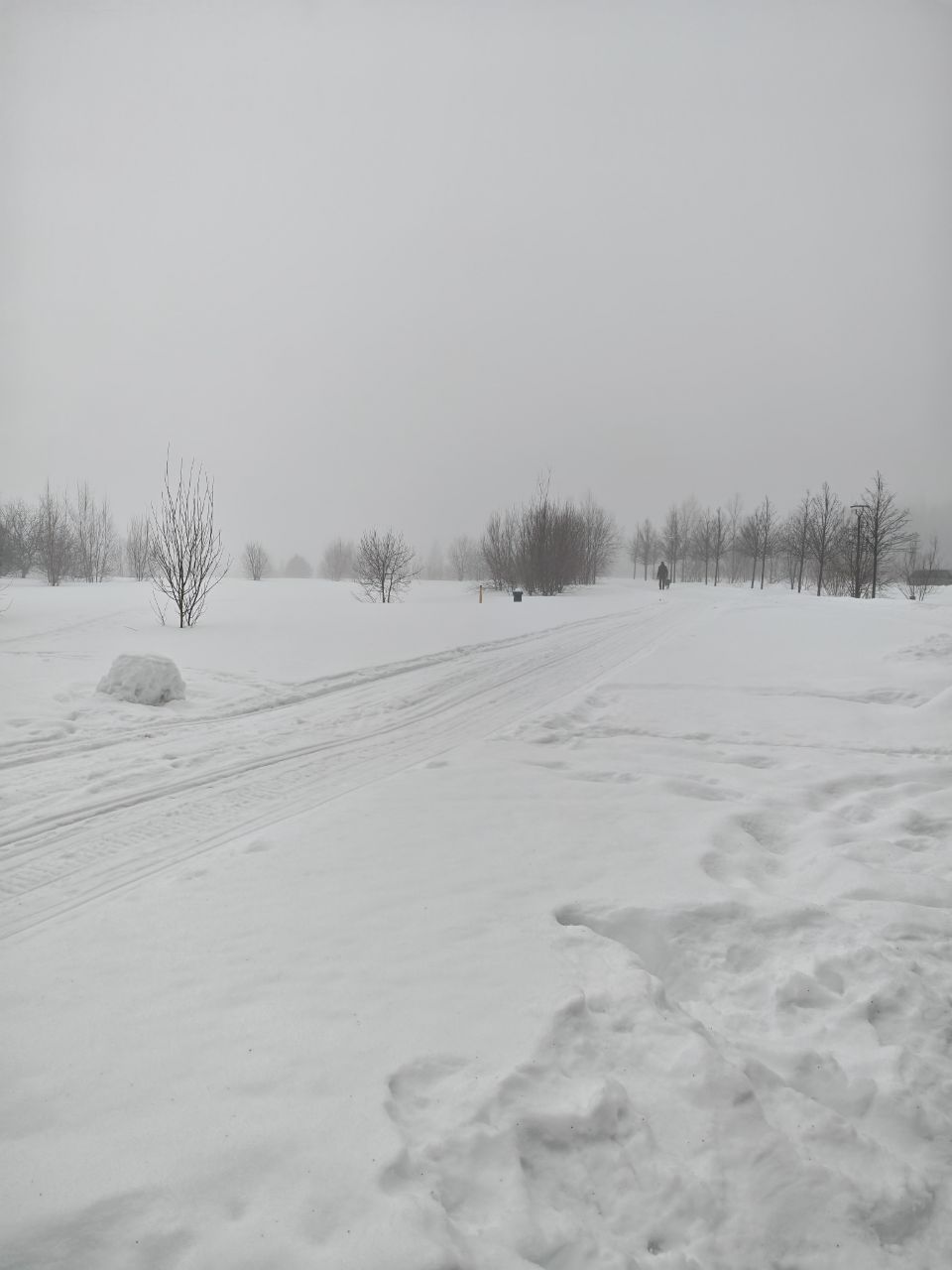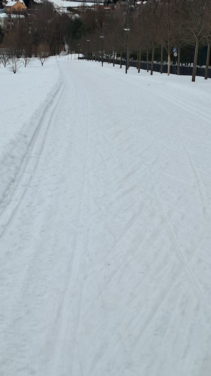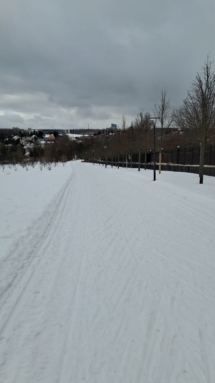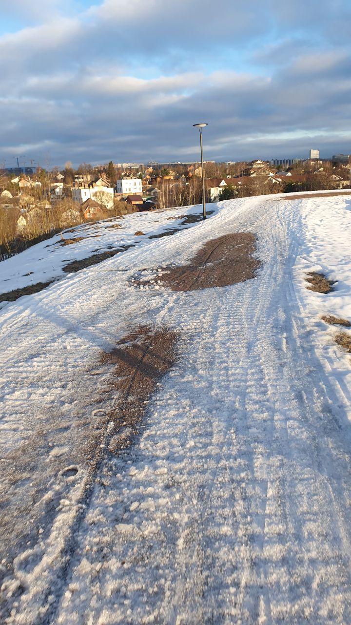 2. На роллерке есть участки с минимум снега и проглядывает асфальт. Но не критично. Кататься можно.