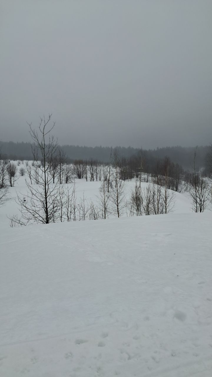 Катание на тройку. Приехал спецом к вечеру, чтобы меньше каши было, но ждало другое. Трасса грязная в лесу, лыжи жалко, с ямами от шагов, наверно, великана, раз так продавливает снег )