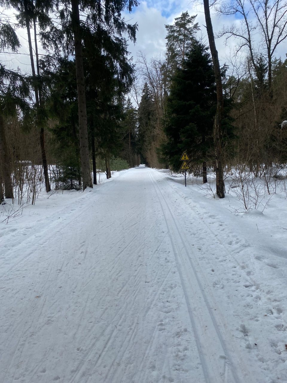 Местами где был ратрак, классика прям хорошо))). Коньком можно везде, кроме разных мелких дорожек, там самотоп. Снег после обеда превращает больше в силовую работу. Замечены двое "работящих" понаехавших на прокатных велосипедах яндекс.