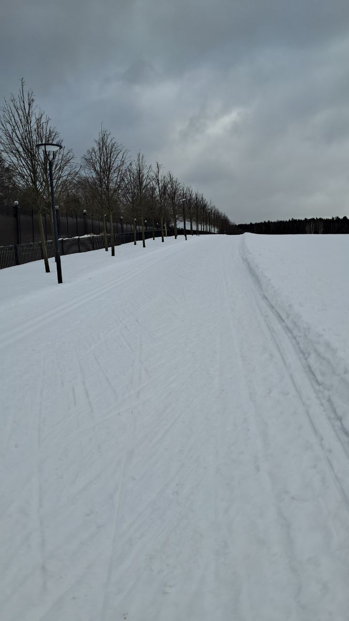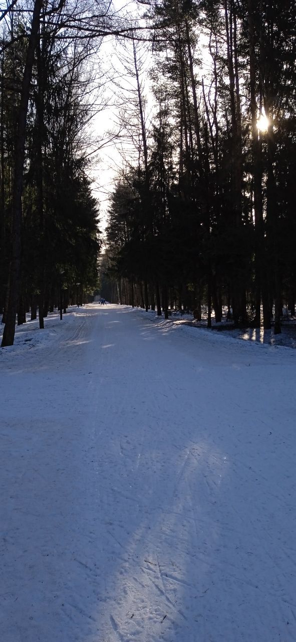 После ночного небольшого снегопада по всем аллеям каталось просто великолепно! Взял боевые лыжи Fischer теплые, с мазью NF 0 -6 и не прогадал. Лыжи катили сами, еле за ними успевал. 😀👍. Хочется надеятся , что оттепель в ближайшее время не грозит.