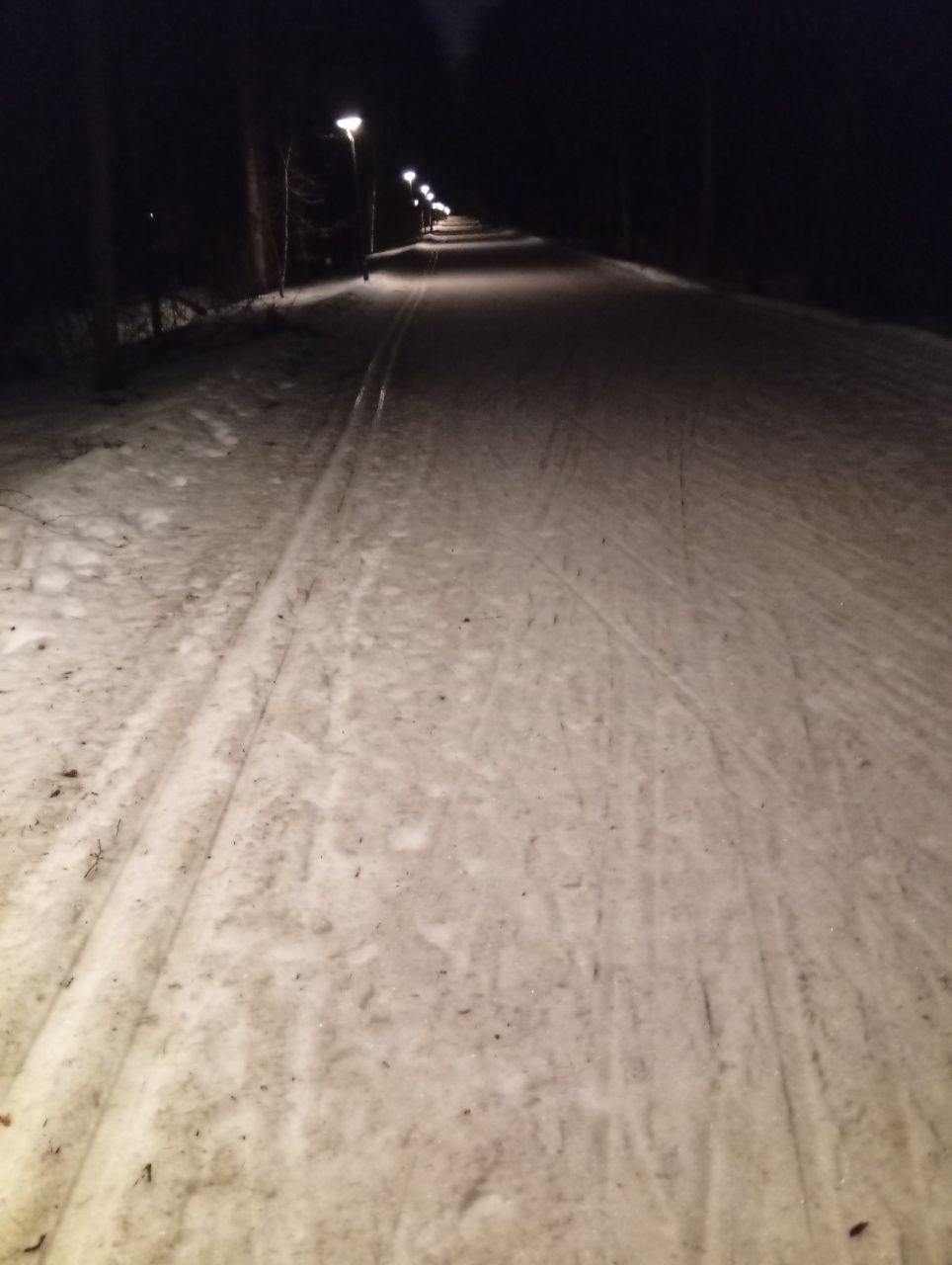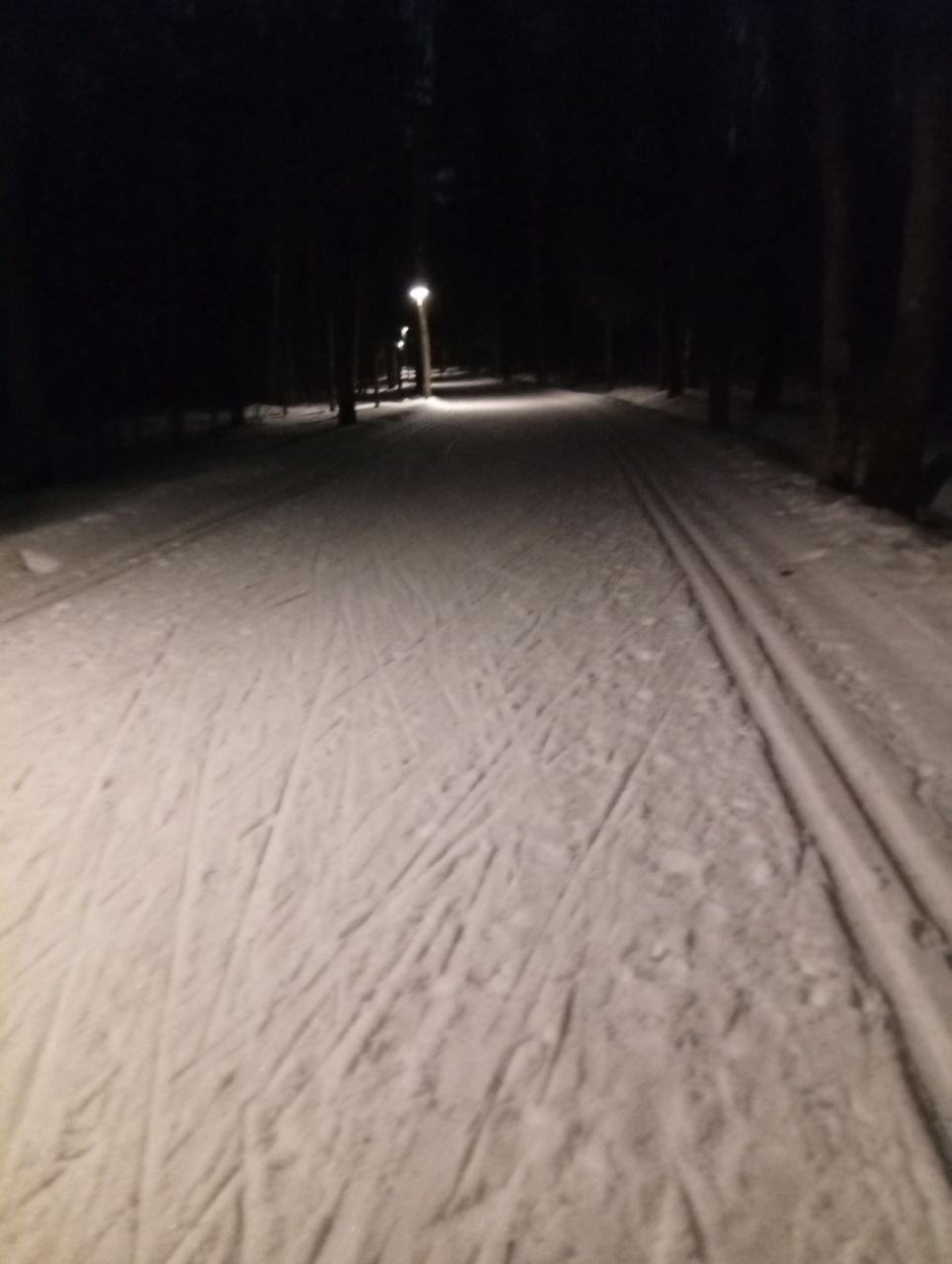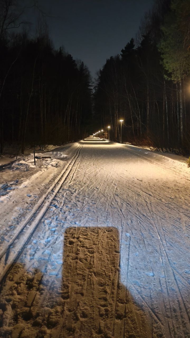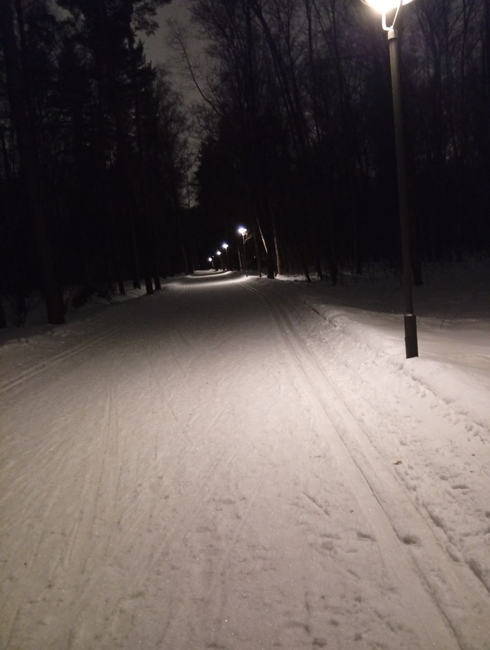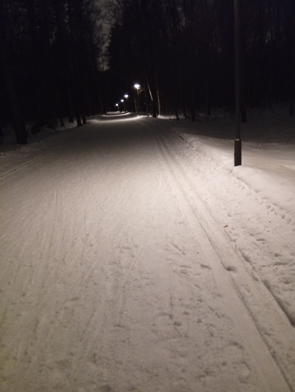 Катание 21.30—23.00. Скольжение отличное. Лыжников мало. Освещение очень хорошее похоже, обновили фонари: они стали ярче, и больше охват.