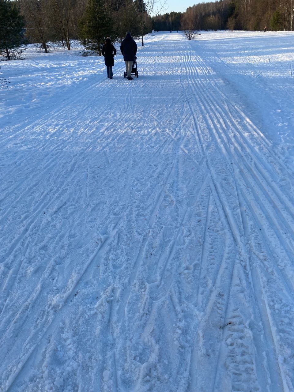 1. Нормально кататься сложно - очень много гуляющих, в том числе на велосипедах, с колясками и т.п., прямо по лыжне. Причём идёт двоица/троица гуляющих, обязательно растянутся по всей ширине лыжни, что не проехать🤦 Что у людей на уме!!!