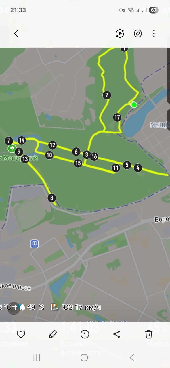 Начал в 8.00, до 9 скорости были просто пушечные! Потом начало отпускать и в 9.40 уже тупило. Катал у Девила, через центральную поляну, на широкую несвещенную, направо к забору и опять к Девилу.
