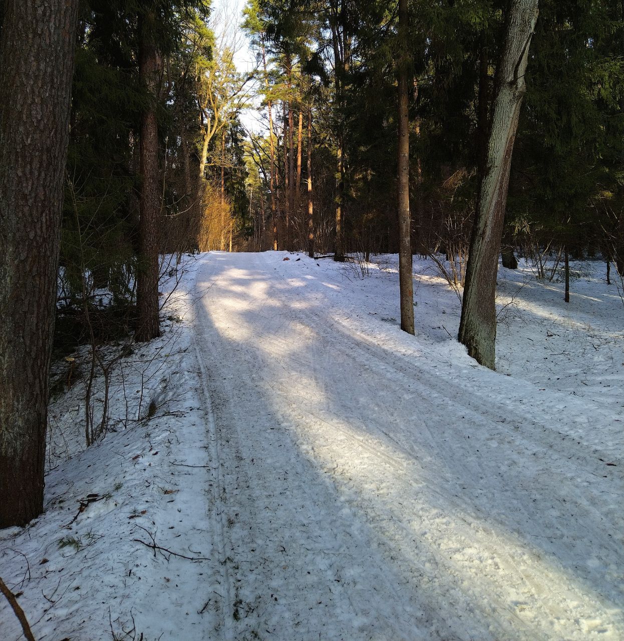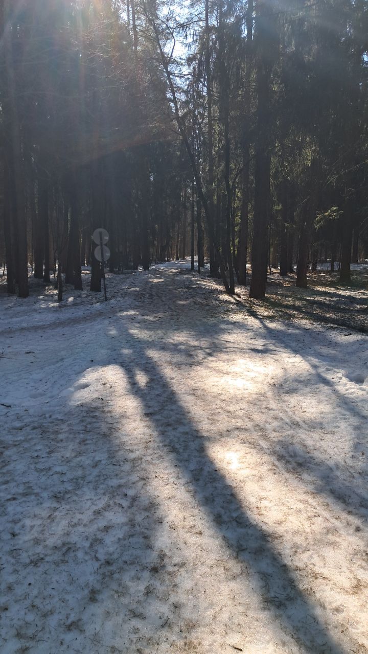 С 7 утра с дальней парковки со стороны железной дороги. Трак проехал, скольжение в лесу подтупливает, много грязи, в трех местах залысины до земли, но картину меняют открытые места (поля возле прудов и широкие аллеи). Там каталка идеальная, снег подморожен, держит и скользит отлично. Для 19 марта в Москве очень и очень. Рекомендую рано с утра.