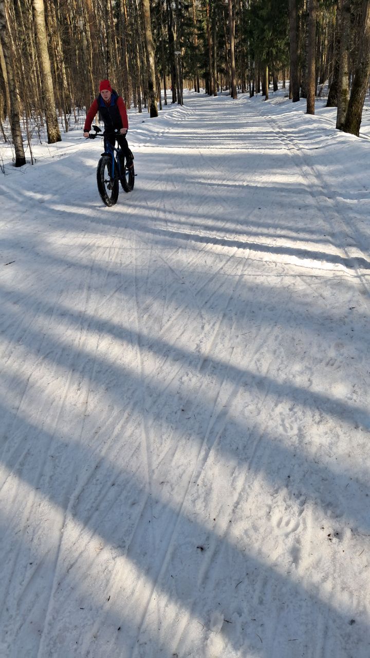 Был днем, гуляк явно меньше чем в выходные. Затоптать особо не успели. Катит хорошо. Местами есть кочки и мусор, но можно проехать, не цепляет. Красота. Замечен лесипедист в белой каске