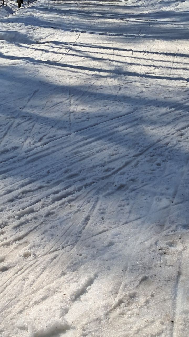 В 9 уже откисает трасса, разрывы уже ширятся. Катать на асфальтовых. В лес лучше не катить. По просеке не освещенной нормально катить. Ратрак катается