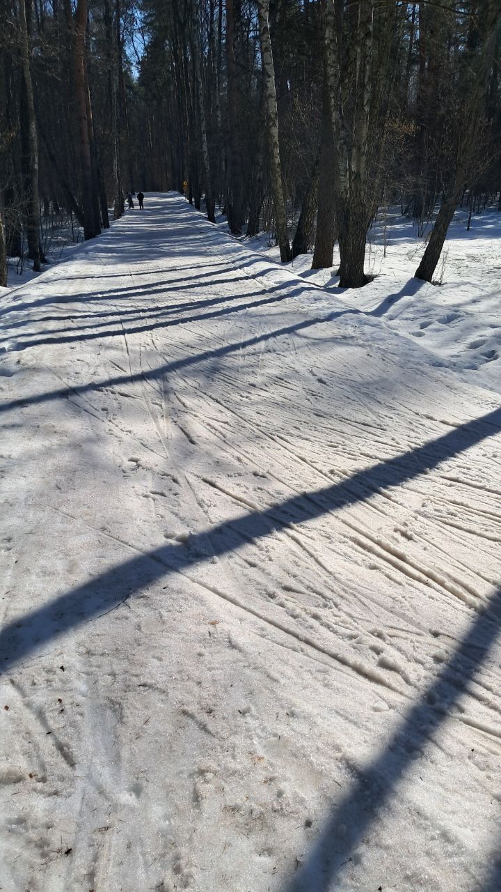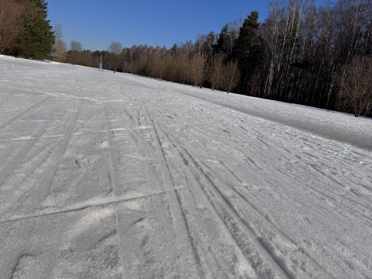 Ратрак прошел и хоть местами уже есть проталины кататься есть где и по утрам и вечерам комфортно! Спасибо администрации парка)