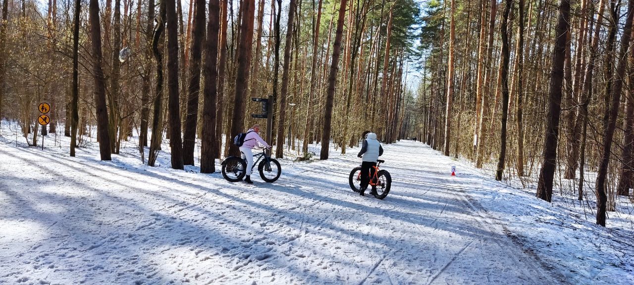Снег ещё есть, но лыжников днём уже почти нет. Зато туча велосипедов.