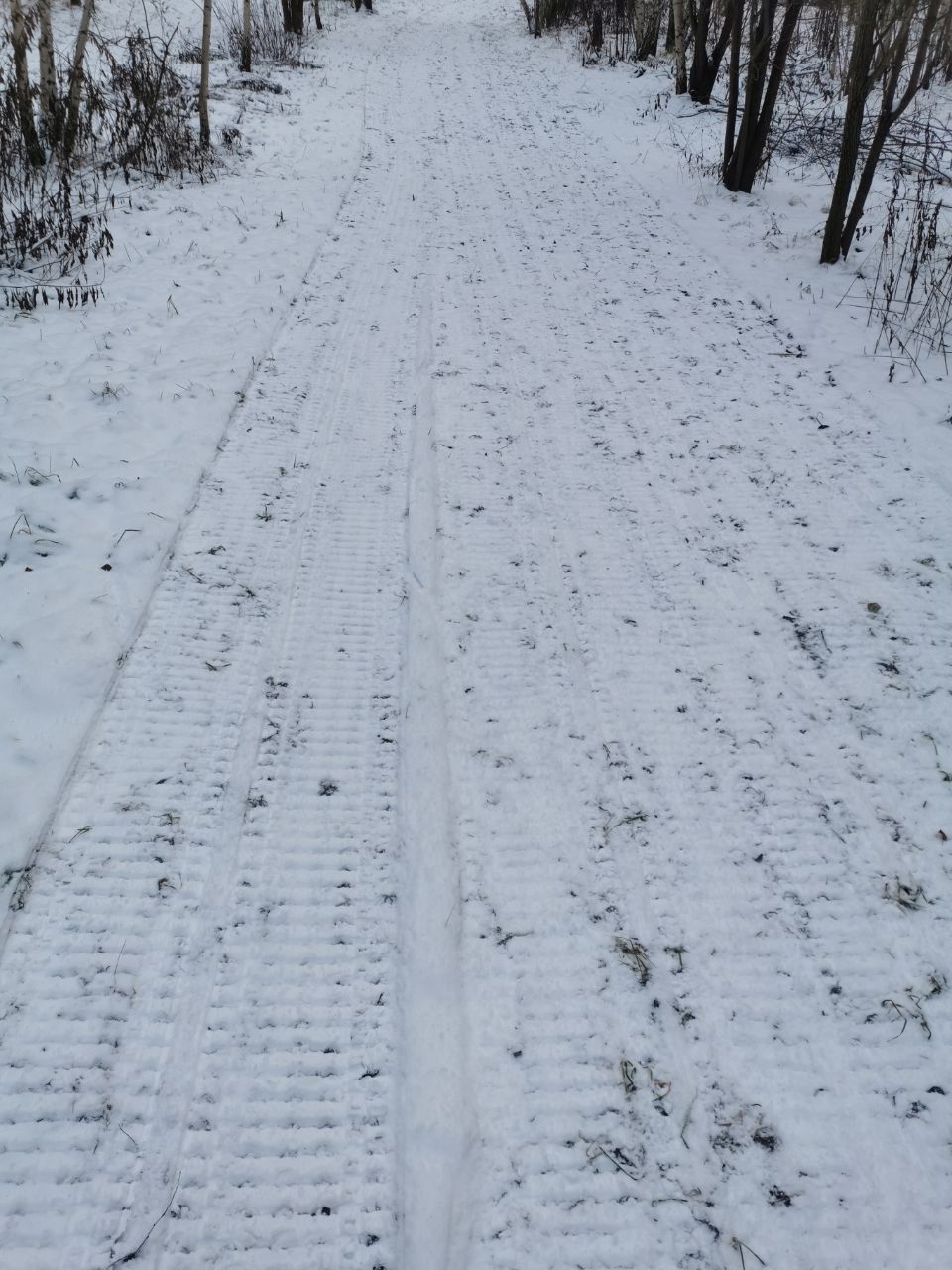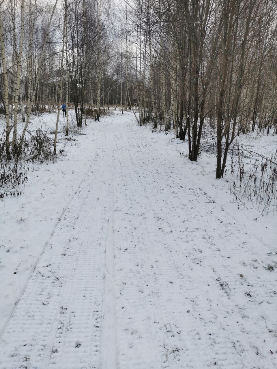 Катание по трассе почти невозможно. Но! На Долгом пруду, что к северо-востоку, поверхность отличная, скорости хорошие, лёд толстый, лыжи кантуются, особенно на раскатанной части у западного берега. Круг около 2.4 км.
