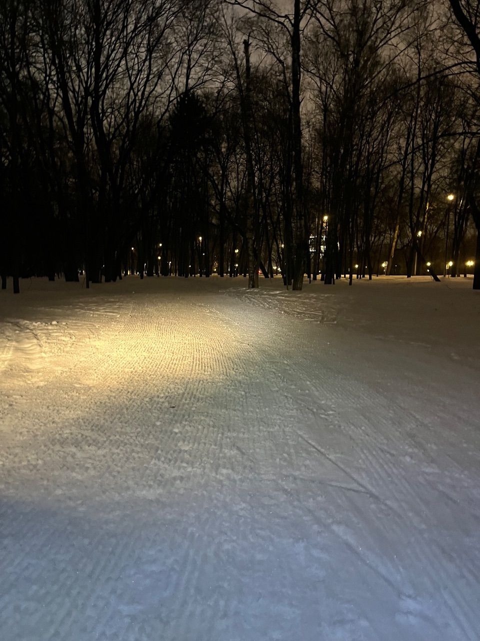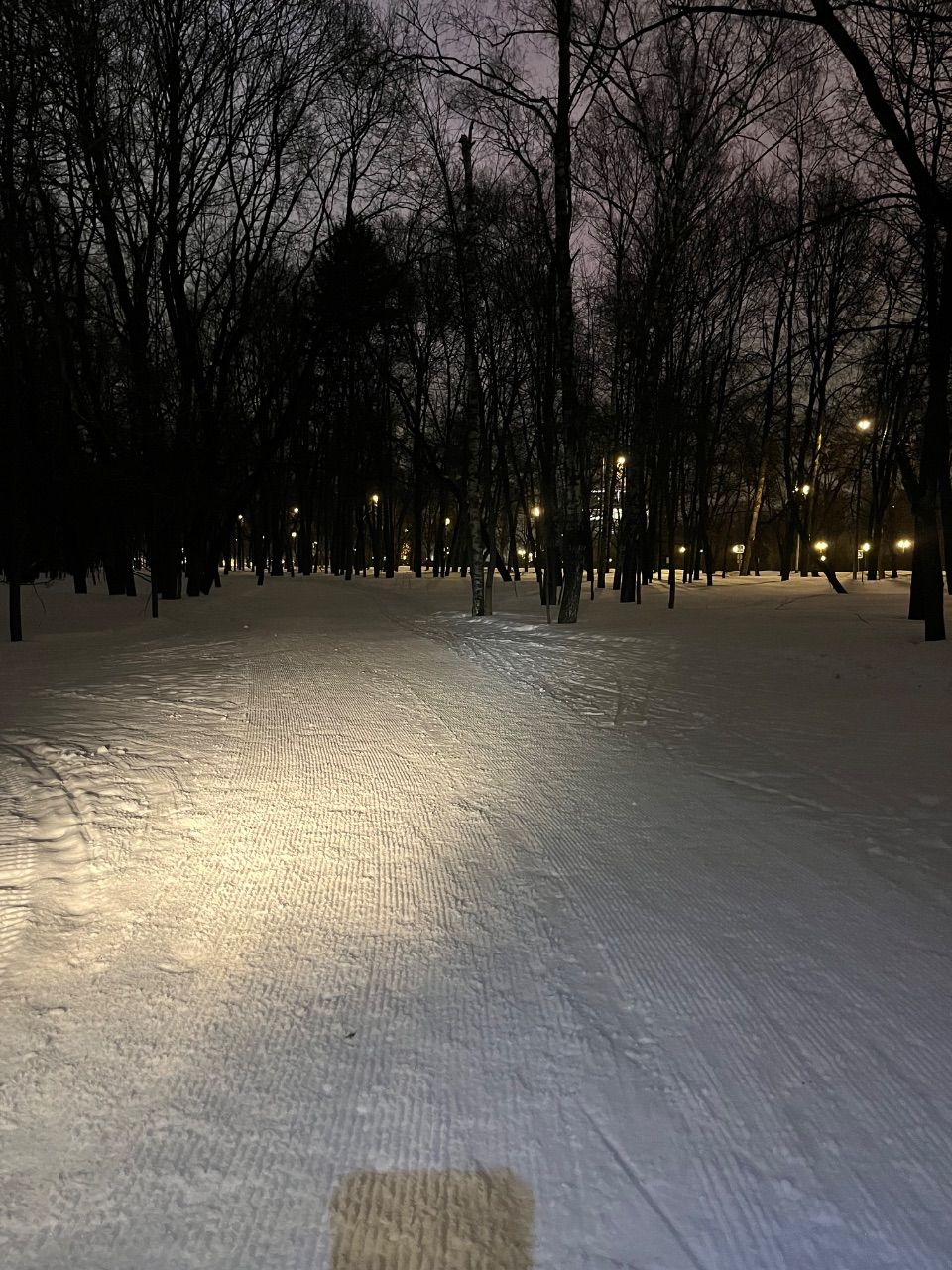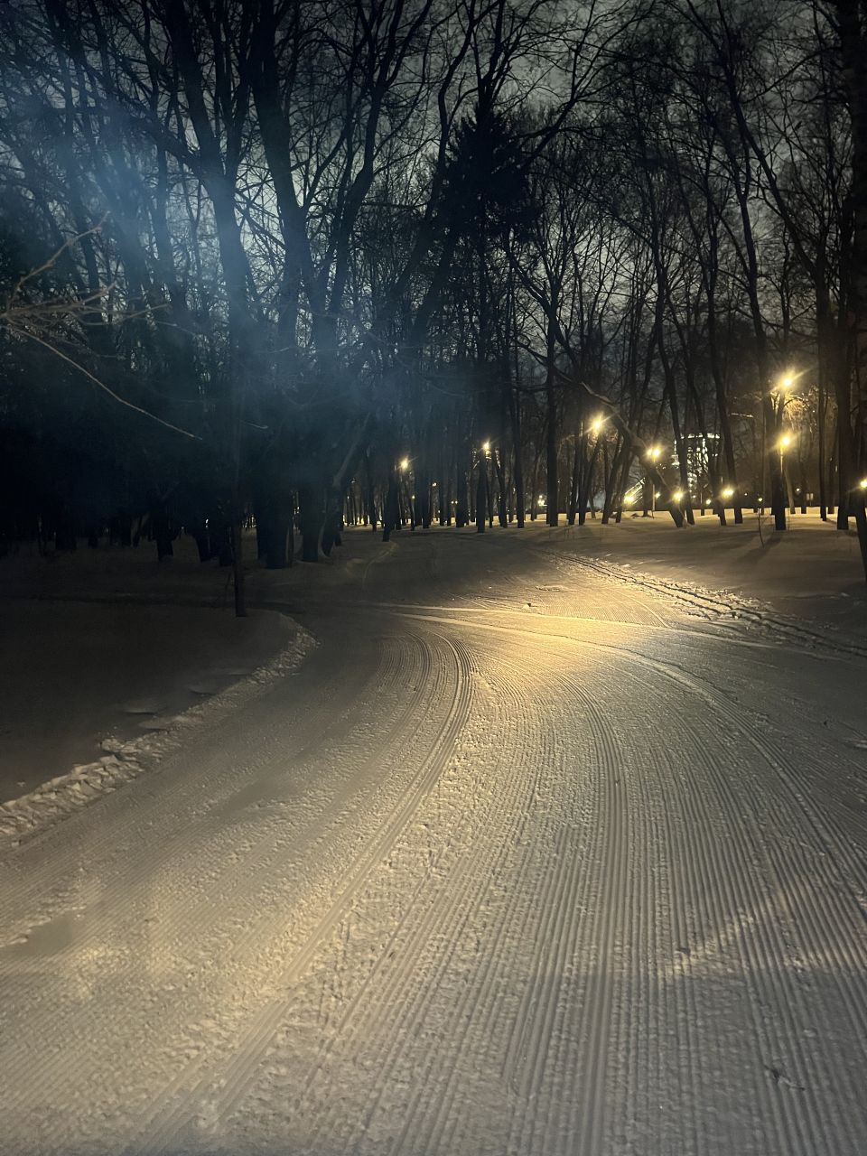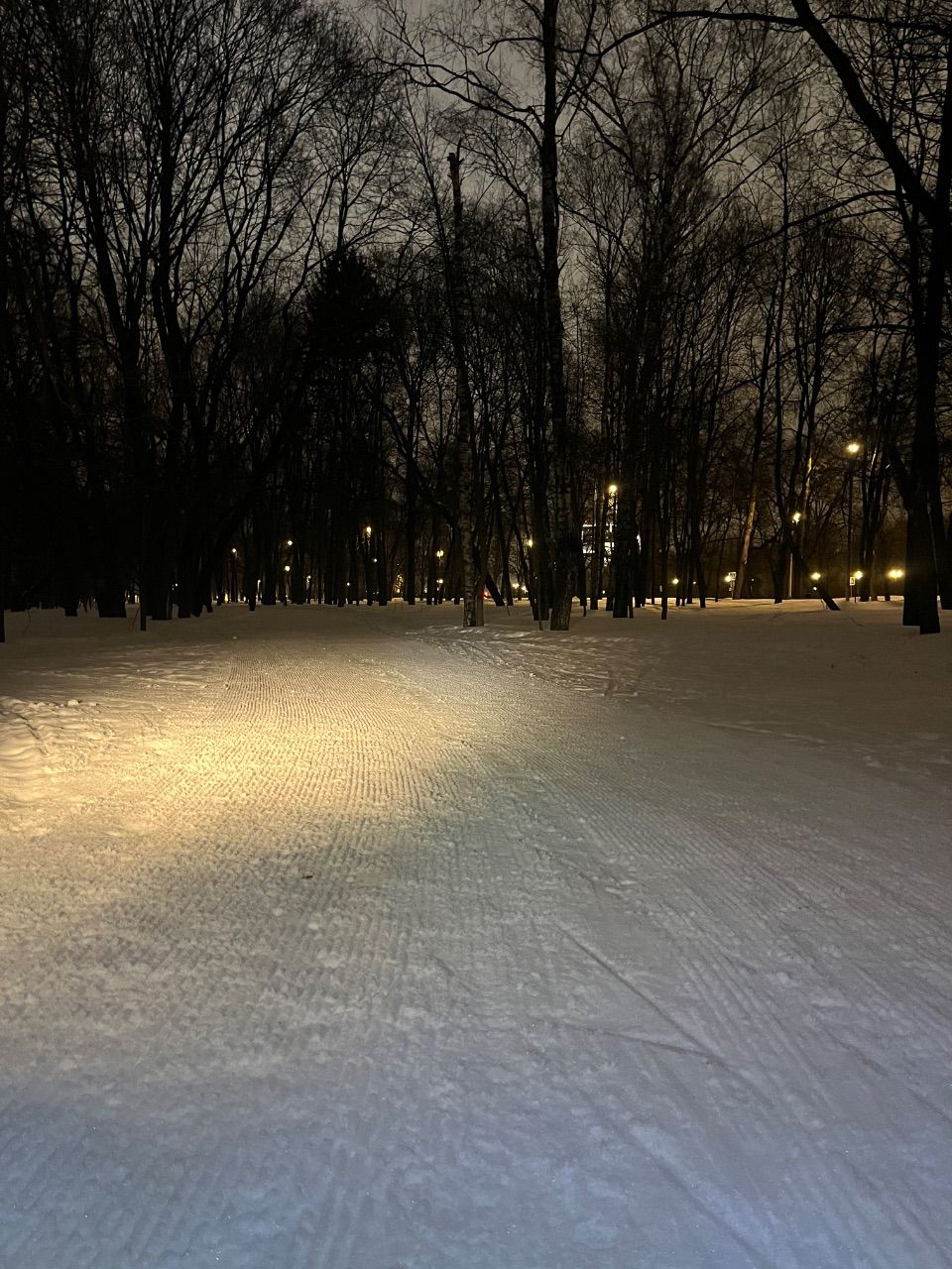 Трасса проложена в парке, регулярно готовится силами лыжников МГУ с использованием снегоходов и ратрака, нарезается классическая лыжня. Есть срезка на 3 км. Разметка выставляется только на гонки, но заблудиться сложно – развилок почти нет.