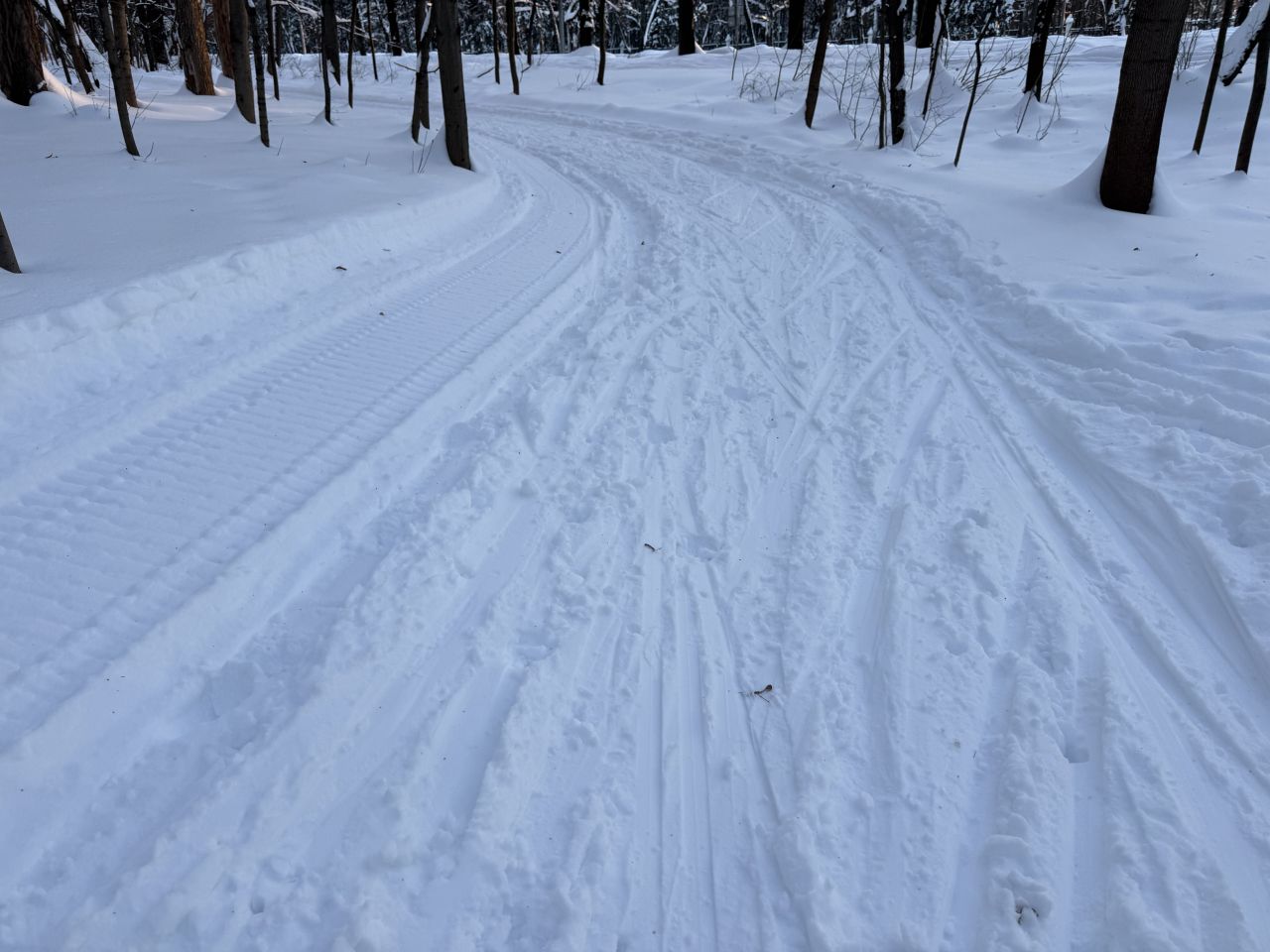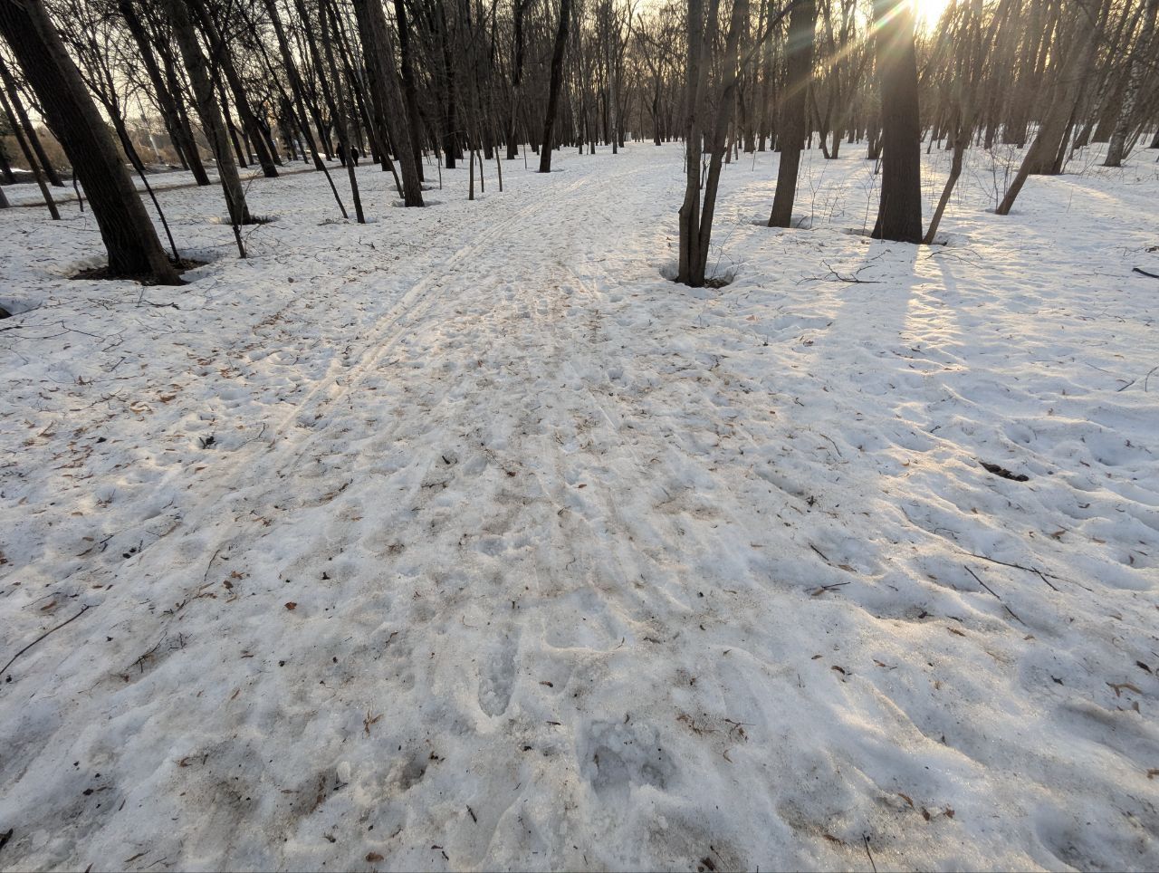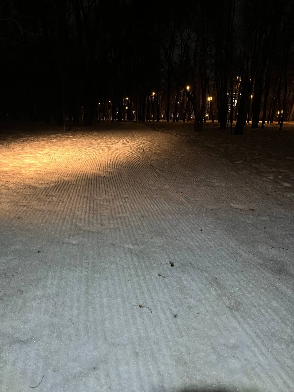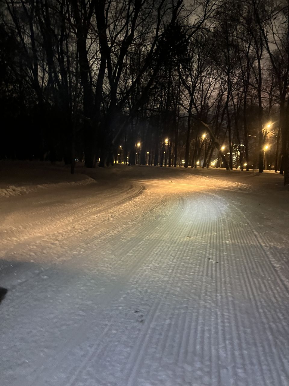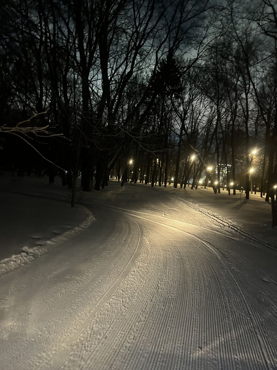 Трасса проложена в парке, регулярно готовится силами лыжников МГУ с использованием снегоходов и ратрака, нарезается классическая лыжня. Есть срезка на 3 км. Разметка выставляется только на гонки, но заблудиться сложно – развилок почти нет.