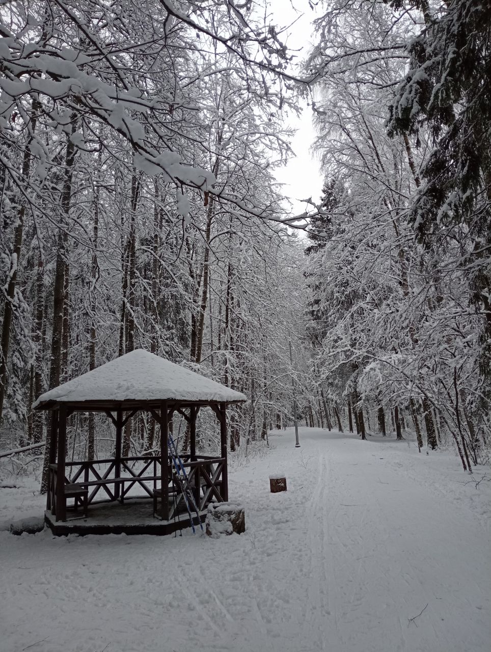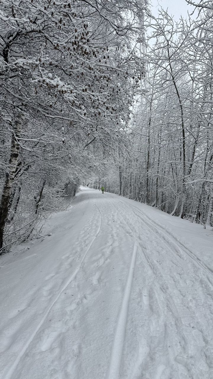 До июня можно спокойно работать в лыжне на классике. Палками в некоторых местах пробивается до земли, но это на обочине, в целом неплохо.