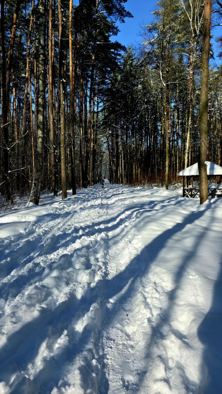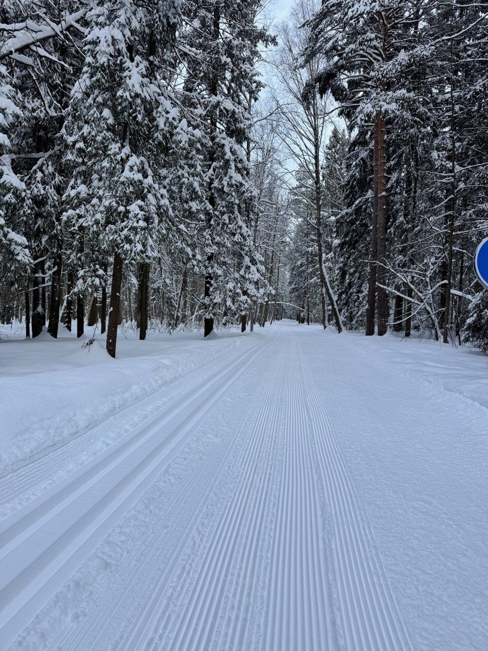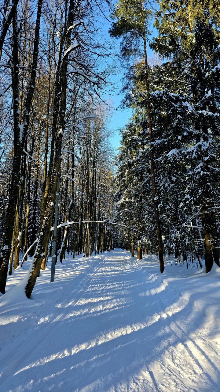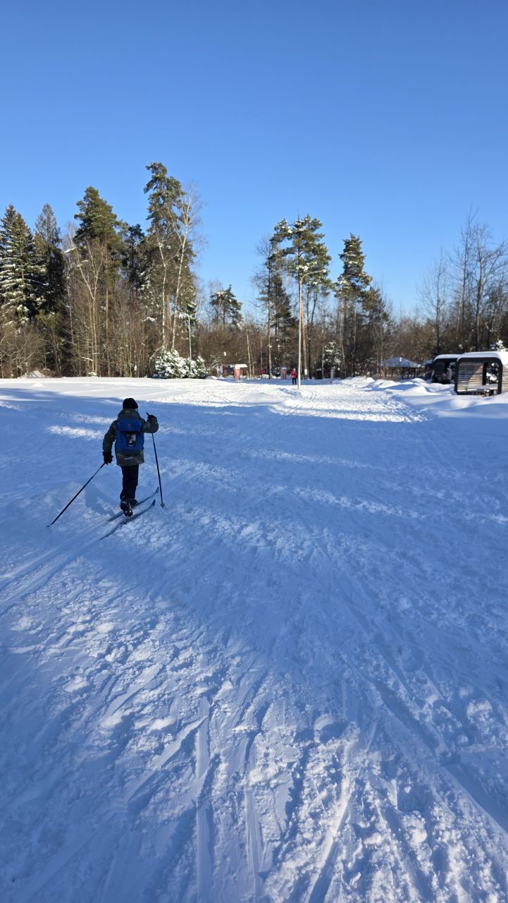 Коньковая часть от Дэви до Июня и до Императорских Мытищ уже не бетон, а глянцевый "железобетон". Канты нигде не держат. По полоскам на лыжне видно, что в оттепель утрамбовали тяжёлым оборудованием, выдавили воду и в мороз все забетонировалось. Такая ситуация в Мытищах всегда после трамбовки. Классика вроде как есть местами , но одна палка едет по бетону другая проваливается.