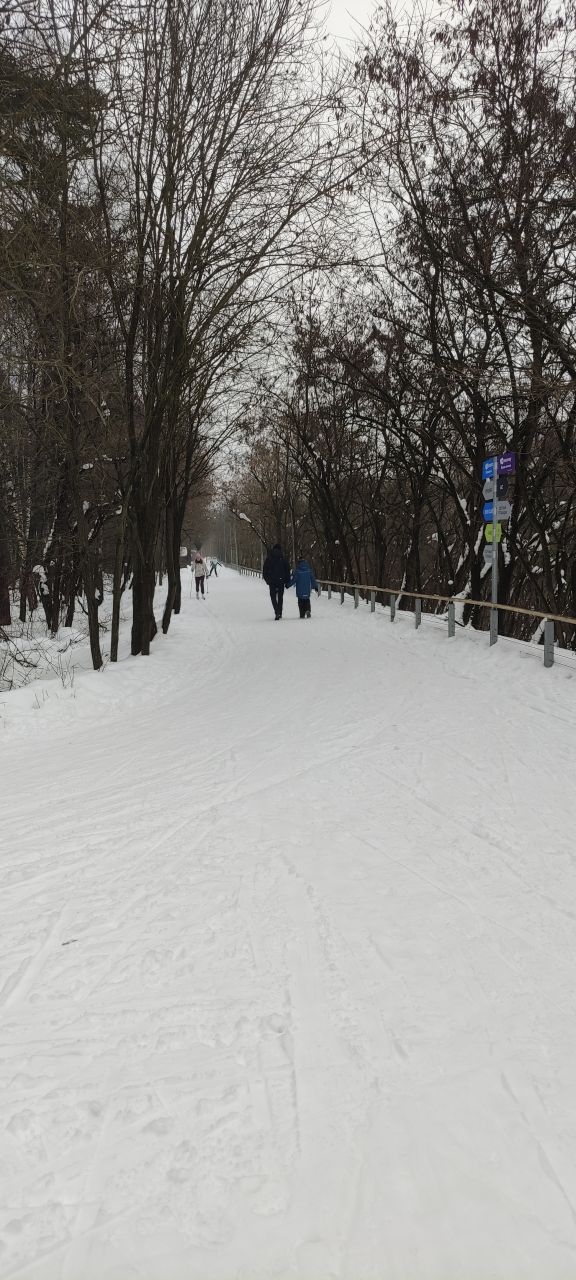 Несмотря на то, что снег подтаял, скольжение было на четвёрку, а последние 200 м до арки / входа в парк вообще летело. Впервые запарковался на ближней парковке. Она совсем не чищена, одно переднеприводное авто мужики выталкивали втроём.