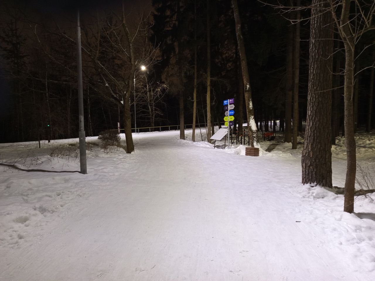 Дальше трасса примерно одинаковая до самого проката, но придётся попотеть: свежего снега много, он пока не утрамбован. Зато в ближайшие дни должно стать лучше — если, конечно, трассу будут поддерживать для конька: тогда кататься будет куда приятнее!