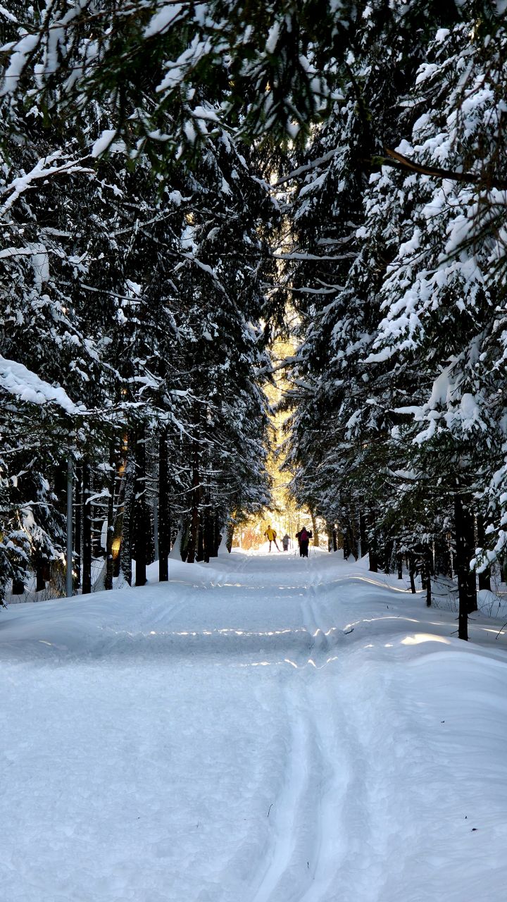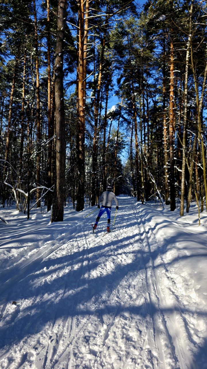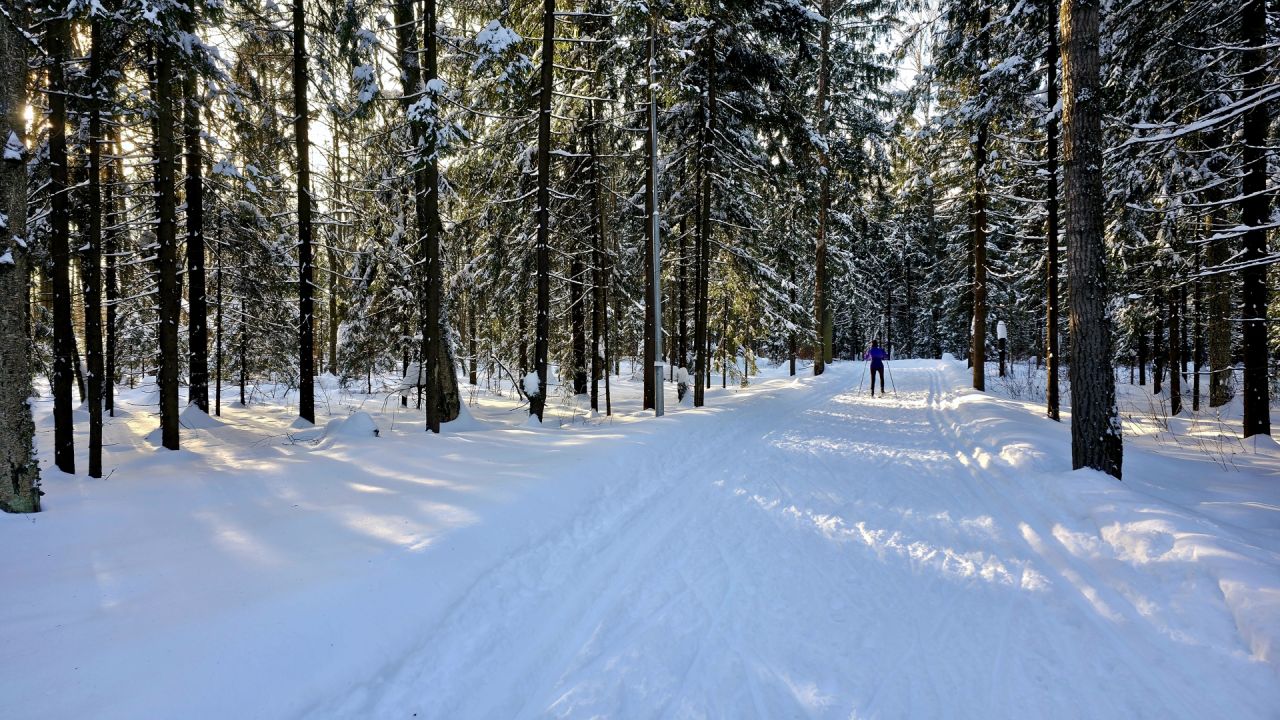В начале маршрута, на участке возле июня, трасса покрыта сугробами, из‑за чего передвижение возможно исключительно классическим стилем. Однако после развилки через 300-400 м состояние снежного покрова заметно улучшаются: снег лежит достаточно ровно, что позволяет комфортно перейти на коньковый ход и полноценно поработать на дистанции хоть и не без усилий.