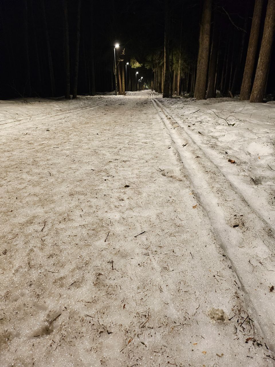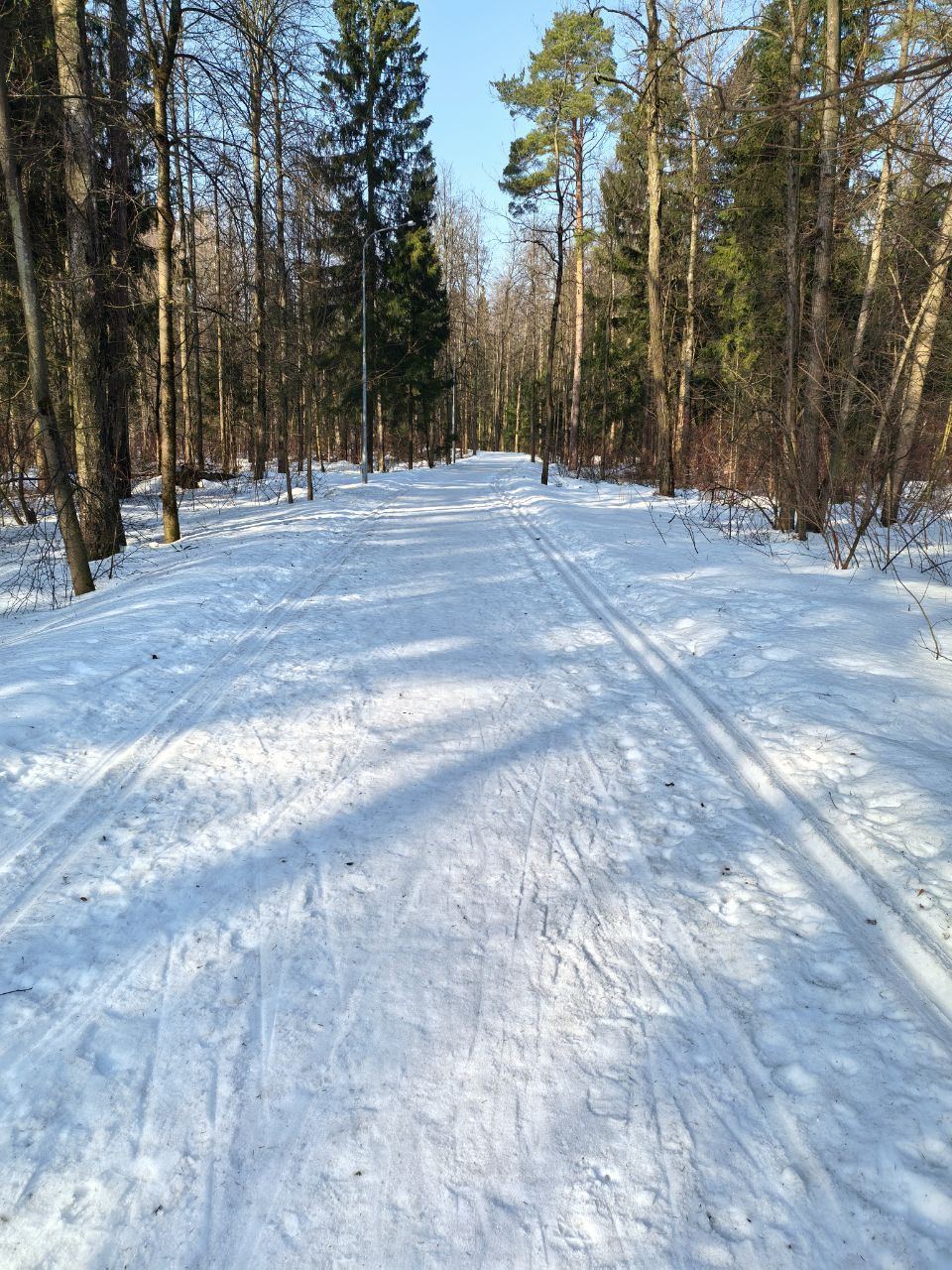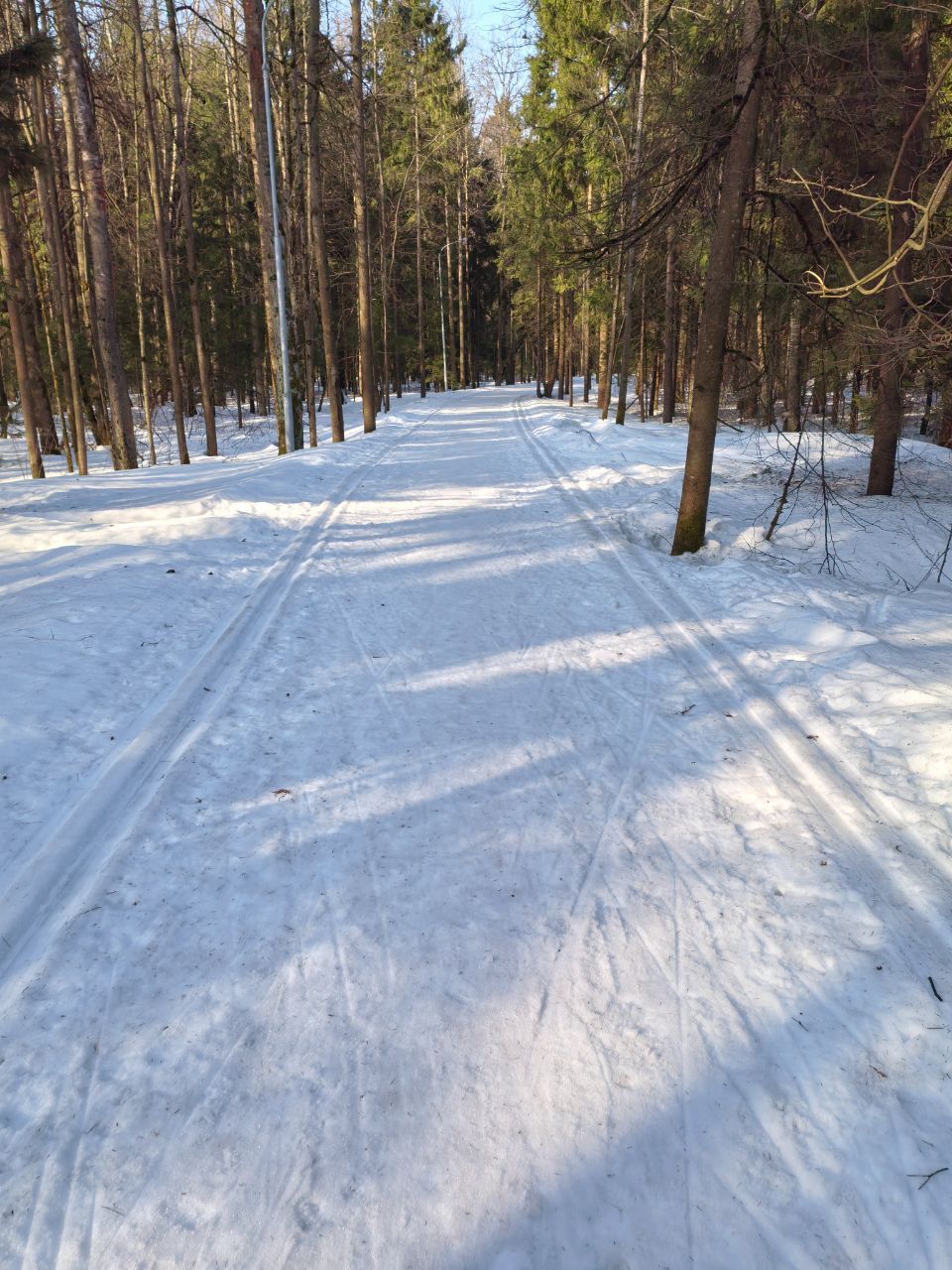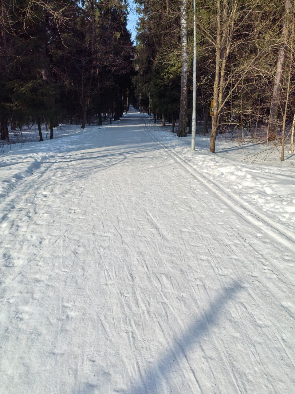 В лесопарке для текущей погоды очень хорошо. Катался от входа у заправки и до проката на Пироговском шоссе, к императорам не поехал. Плотно, жестко, к ночи подмораживает. Видно, что готовят, но топтуны, бегуны делают свое дело исправно. И леспаркхоз куда-то ездил, следы от машины видно, но не мешают.