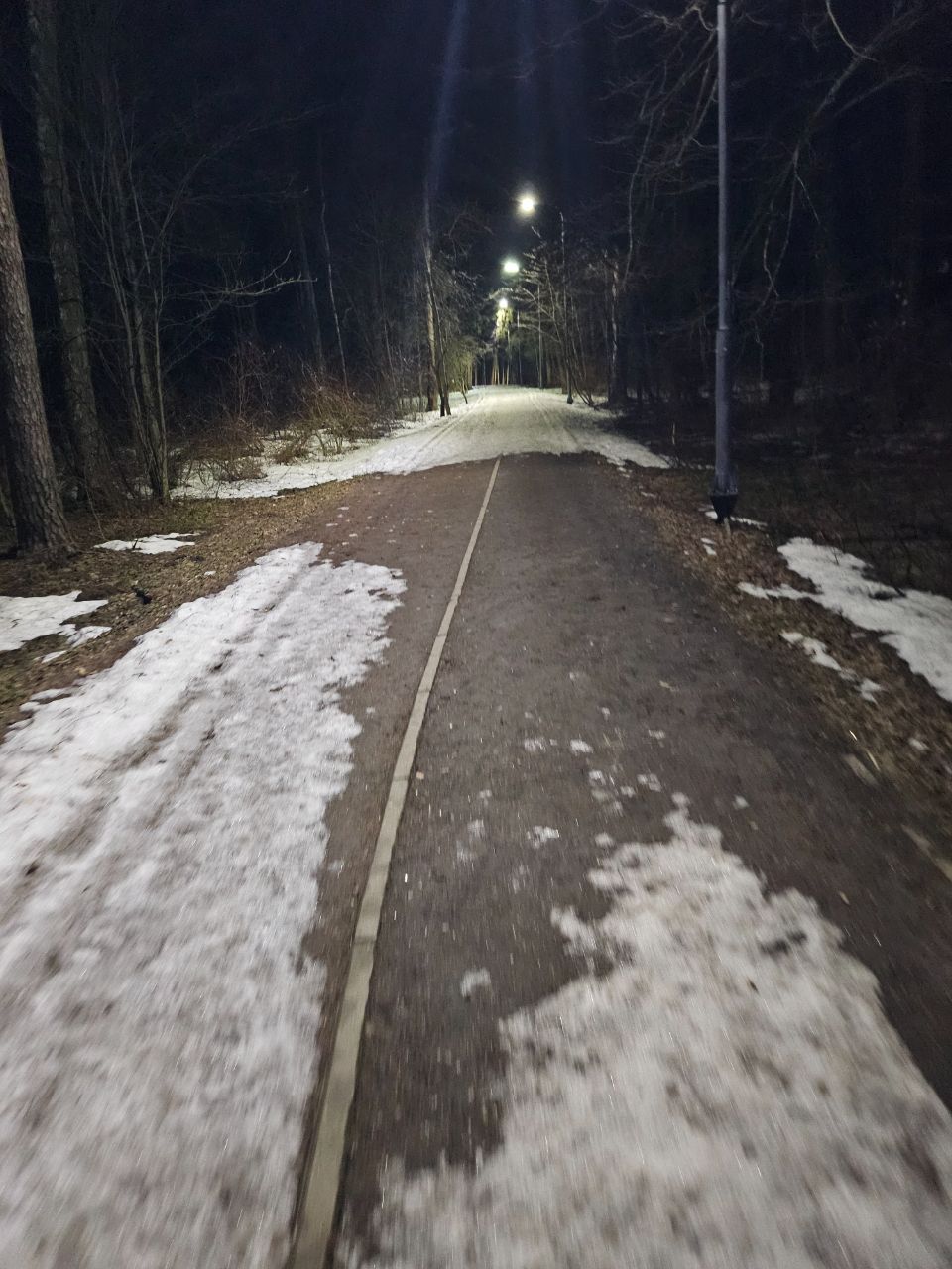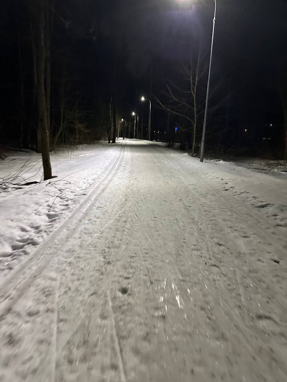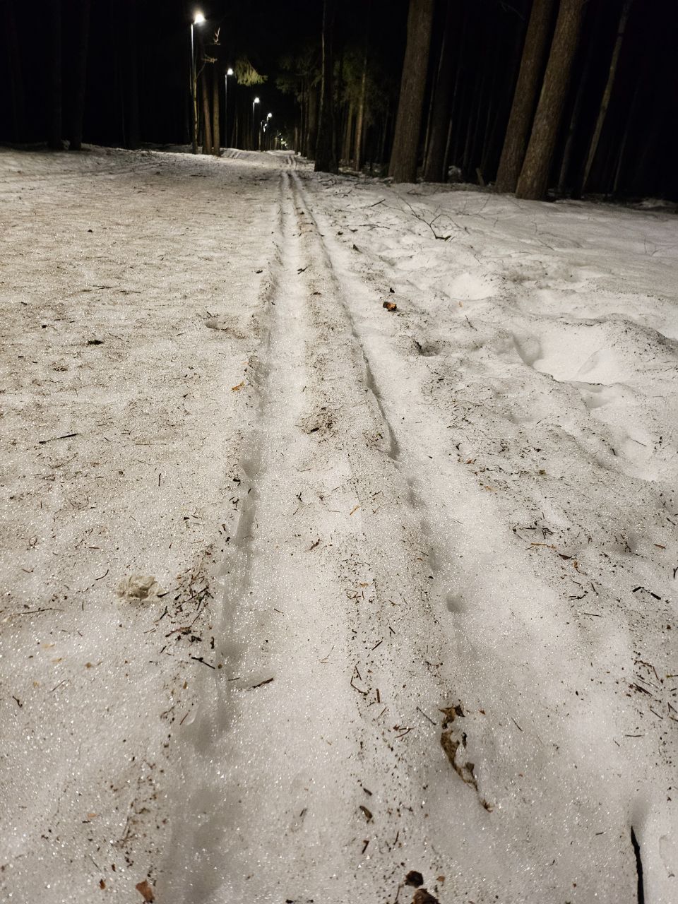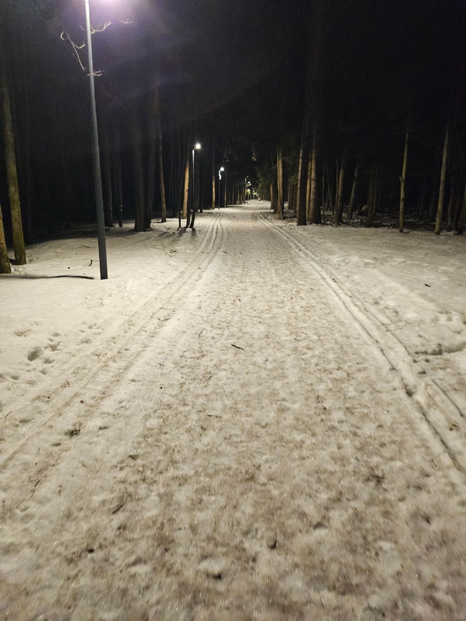 В лесопарке для текущей погоды очень хорошо. Катался от входа у заправки и до проката на Пироговском шоссе, к императорам не поехал. Плотно, жестко, к ночи подмораживает. Видно, что готовят, но топтуны, бегуны делают свое дело исправно. И леспаркхоз куда-то ездил, следы от машины видно, но не мешают.