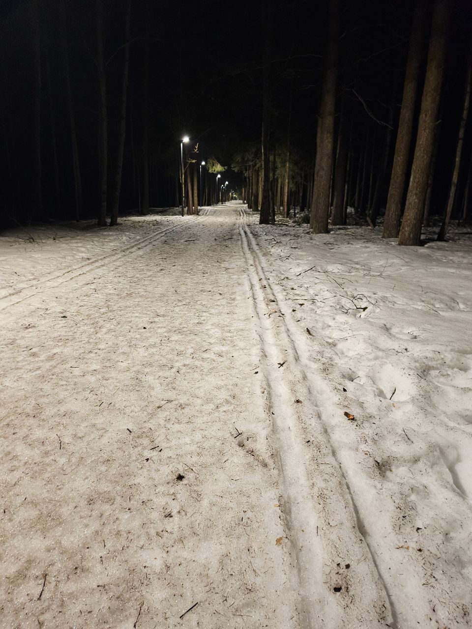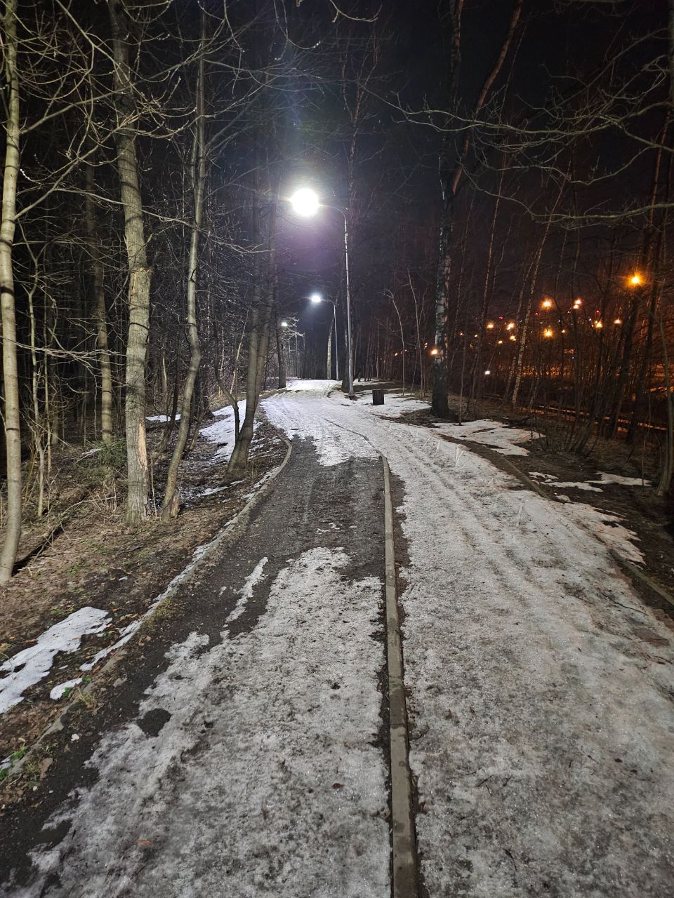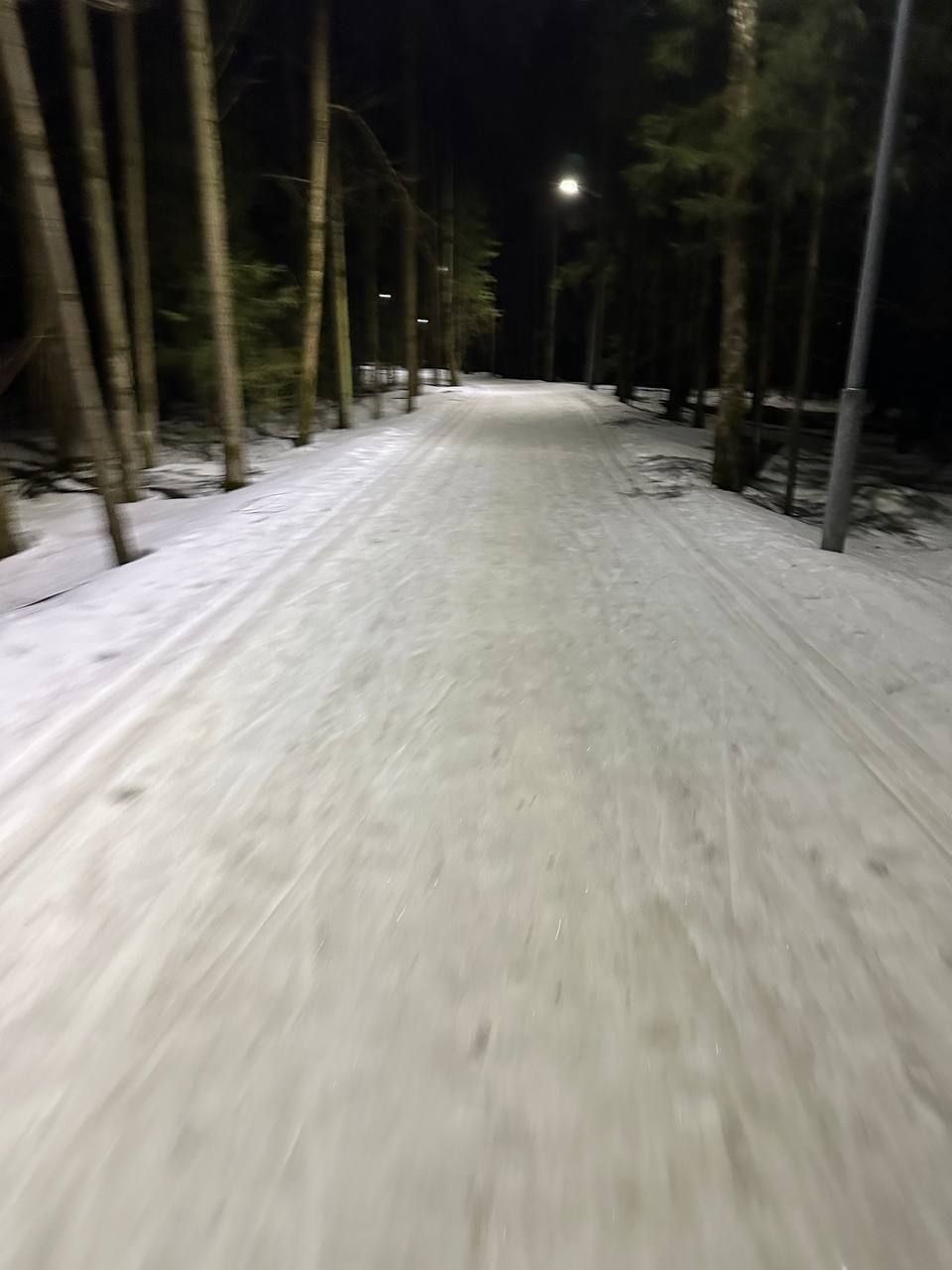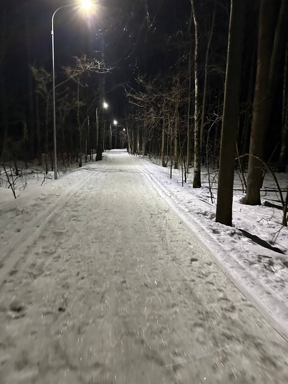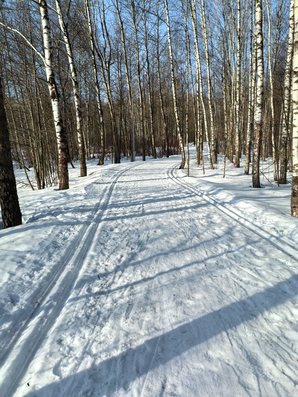 В лесопарке для текущей погоды очень хорошо. Катался от входа у заправки и до проката на Пироговском шоссе, к императорам не поехал. Плотно, жестко, к ночи подмораживает. Видно, что готовят, но топтуны, бегуны делают свое дело исправно. И леспаркхоз куда-то ездил, следы от машины видно, но не мешают.