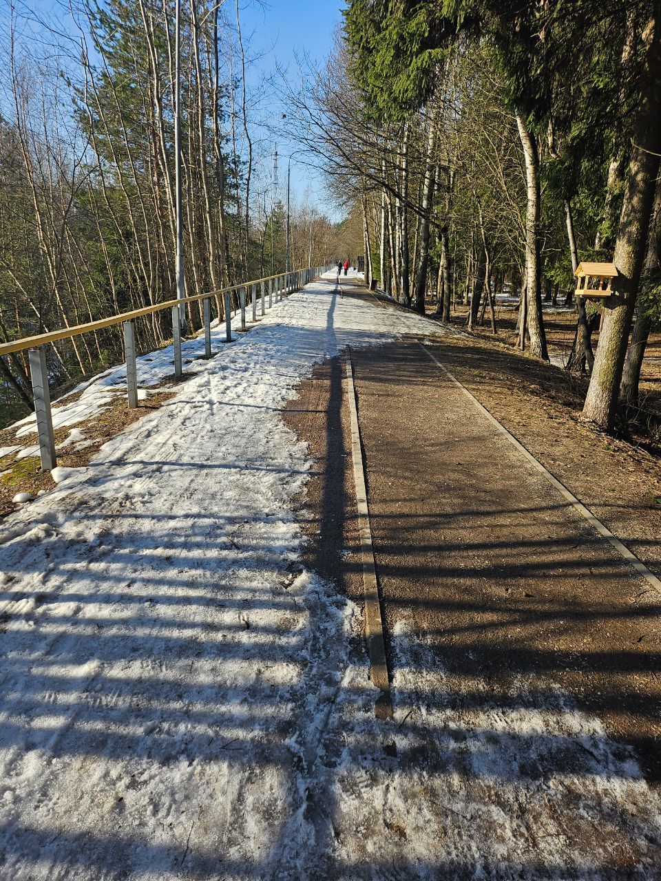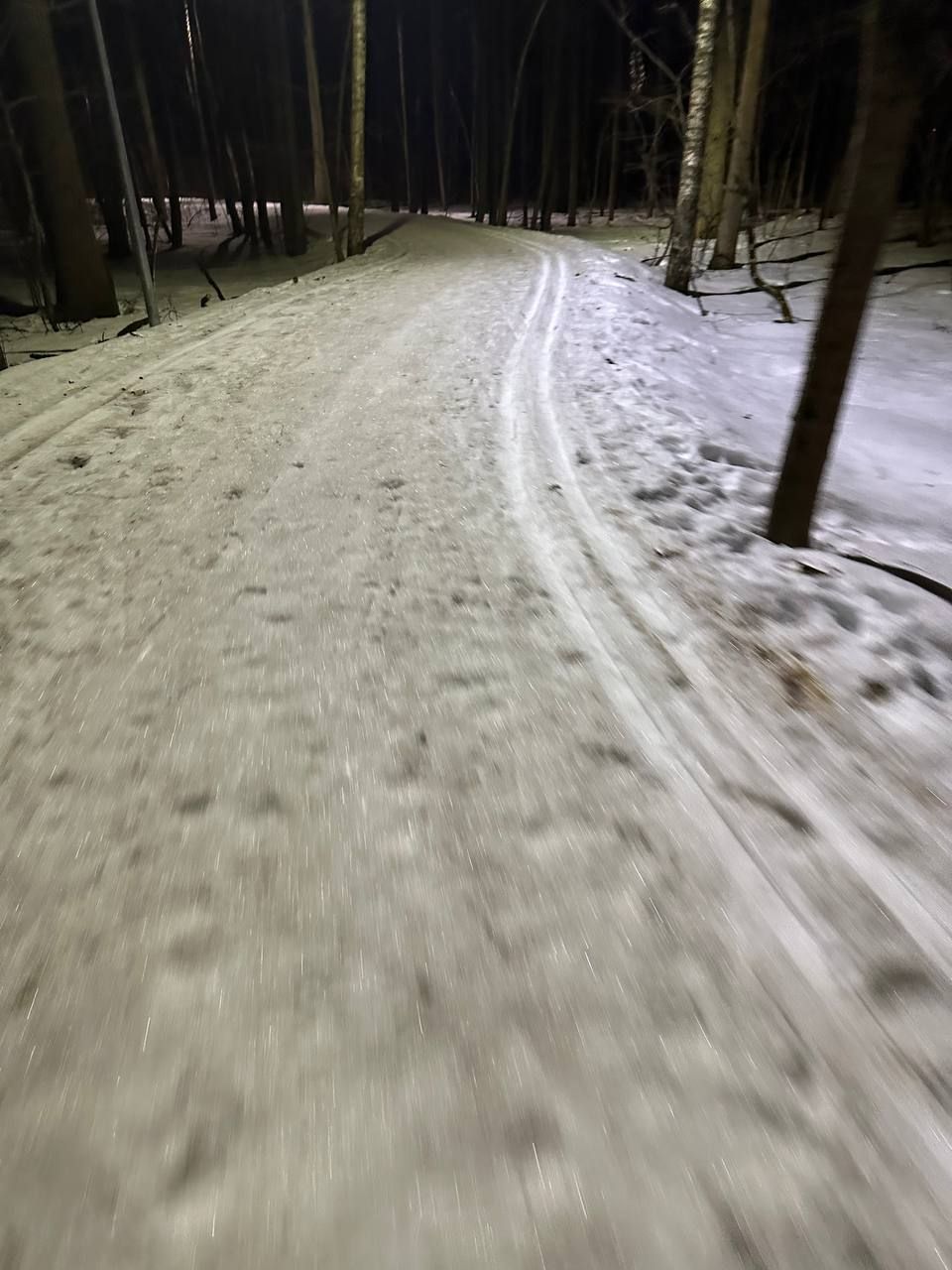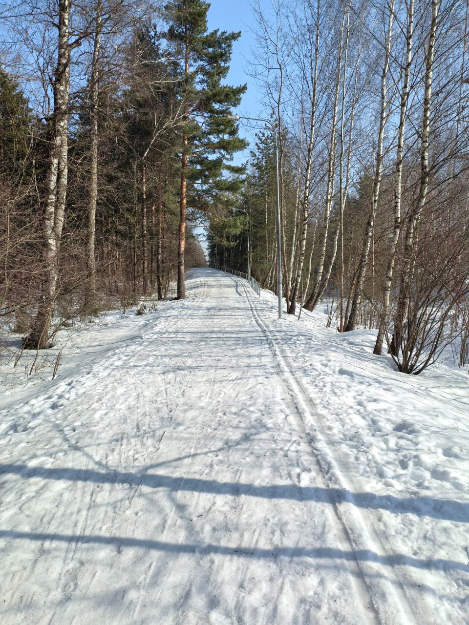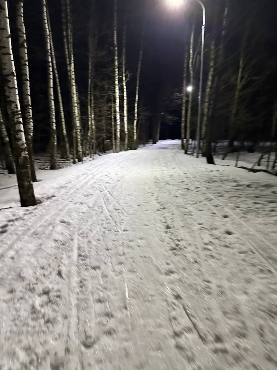 В лесопарке для текущей погоды очень хорошо. Катался от входа у заправки и до проката на Пироговском шоссе, к императорам не поехал. Плотно, жестко, к ночи подмораживает. Видно, что готовят, но топтуны, бегуны делают свое дело исправно. И леспаркхоз куда-то ездил, следы от машины видно, но не мешают.
