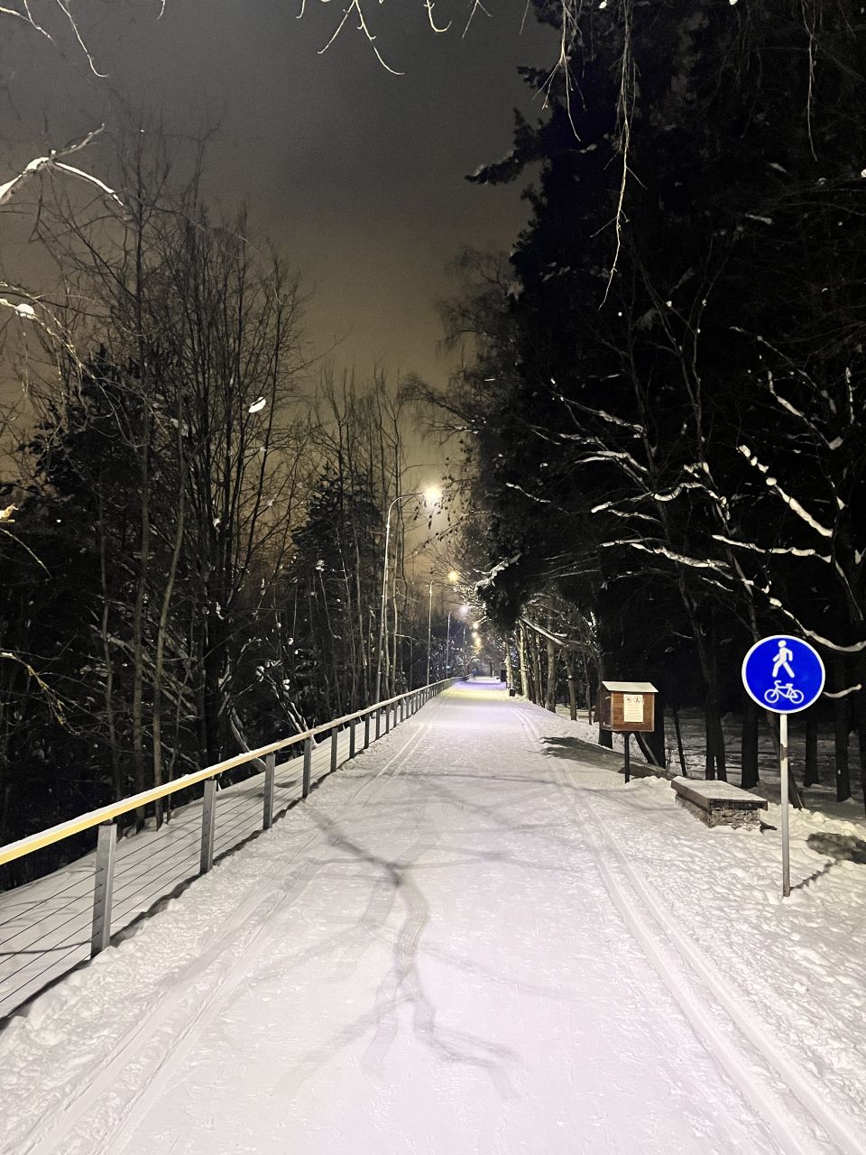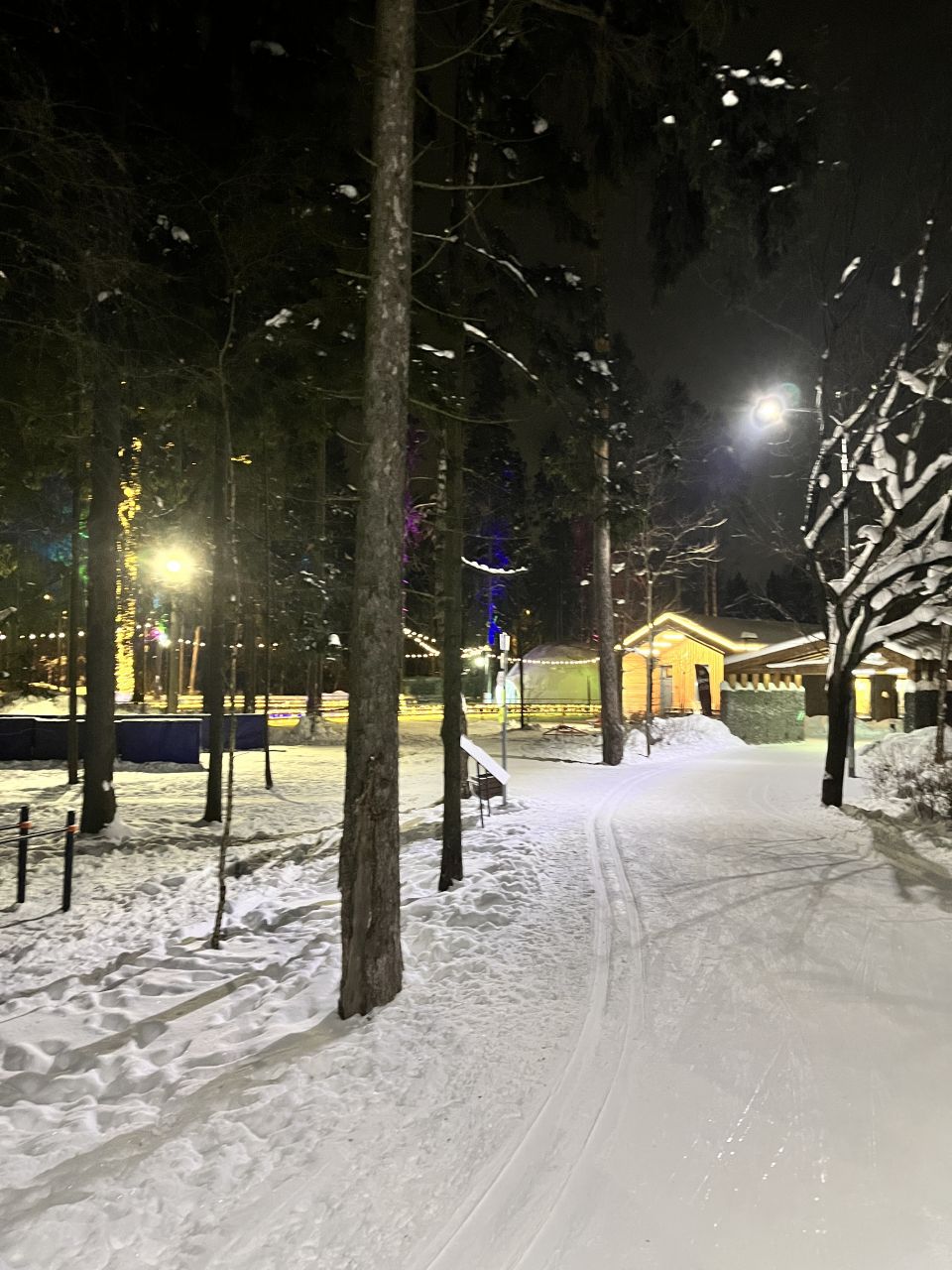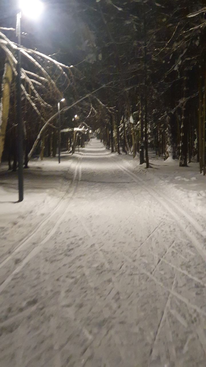 Катал в районе 21.00. Просто кайф! Мороз, народу мало - в основном лыжники - трасса отличная, освещена. Вышло около 13км, можно было от верхней точки уйти еще налево и добавить, но решил что на сегодня хватит. Рельеф плоский, чем то походит на Мещерский.