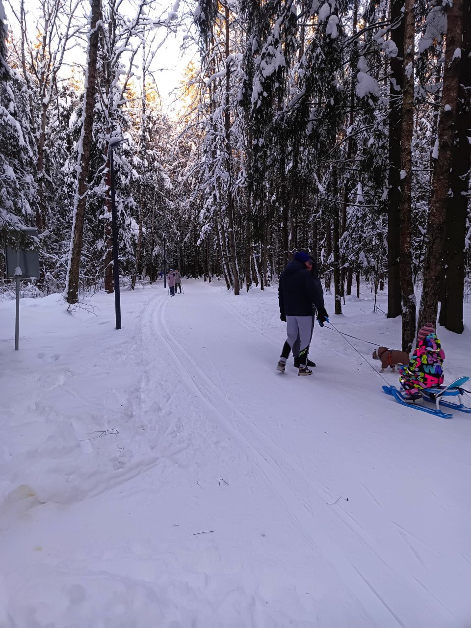 Доставщики всё пытаются подгадить,но снег уже слишком плотный для этого :( От первопроходца остался след метров на 100, на участке до императорских. Трасса нормальная для парка с пешеходами и ватрушками. На 6-7. Катит добротно.