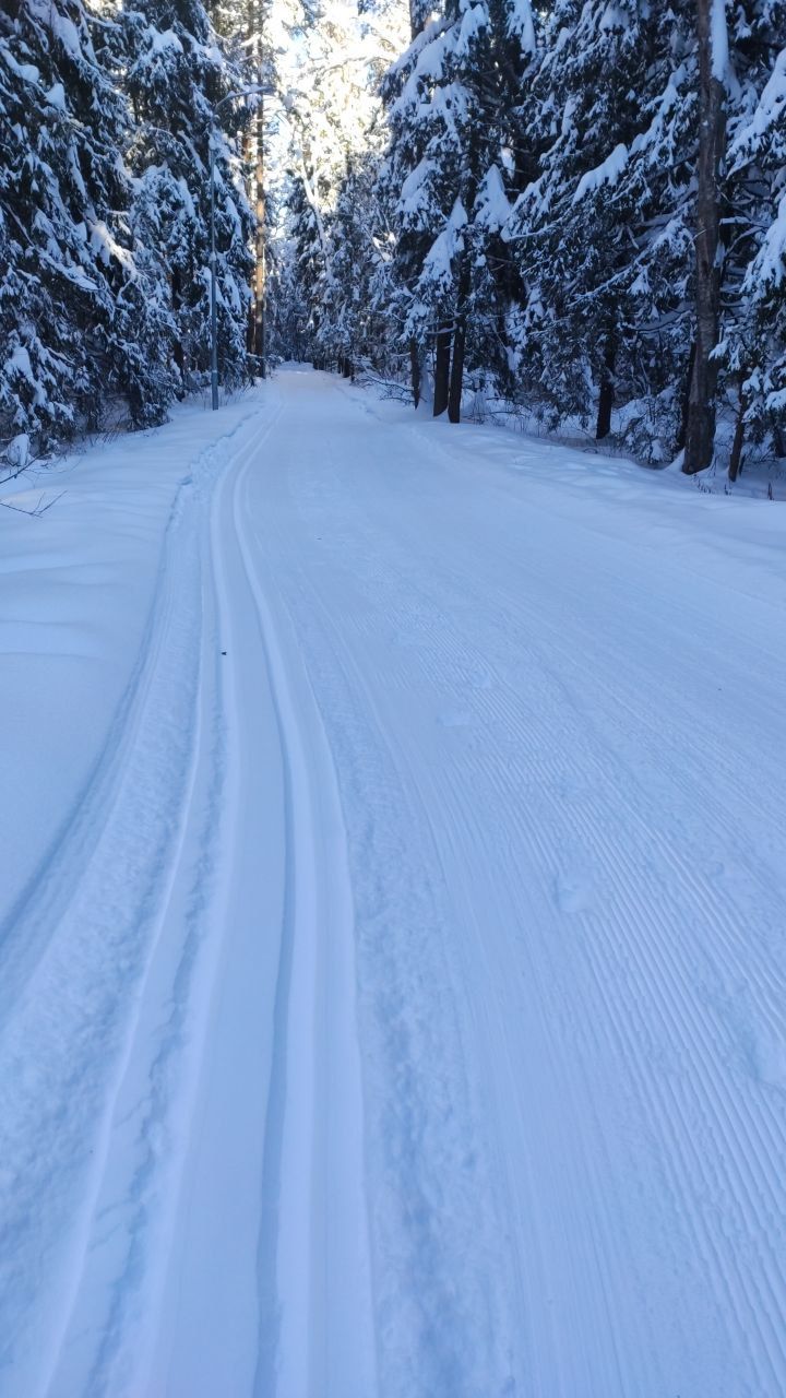 26.01 с 18 до 20 нападало много мусора веточки ,кора. Осторожно лыжи катят нестабильно. Разок даже клюнул носом аж лыжа отстегнулась) 3-4раза неплохо дёрнуло. В общем не торопясь погулять можно.
