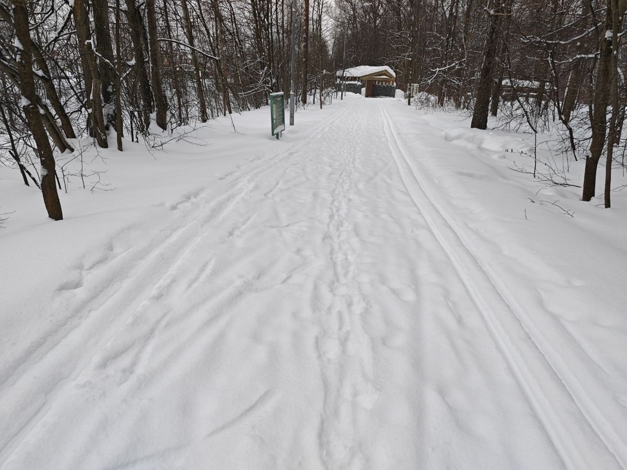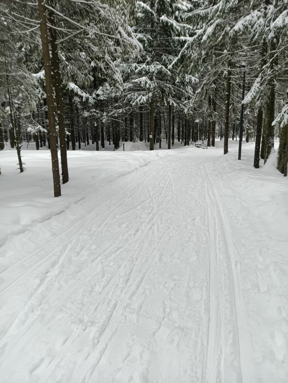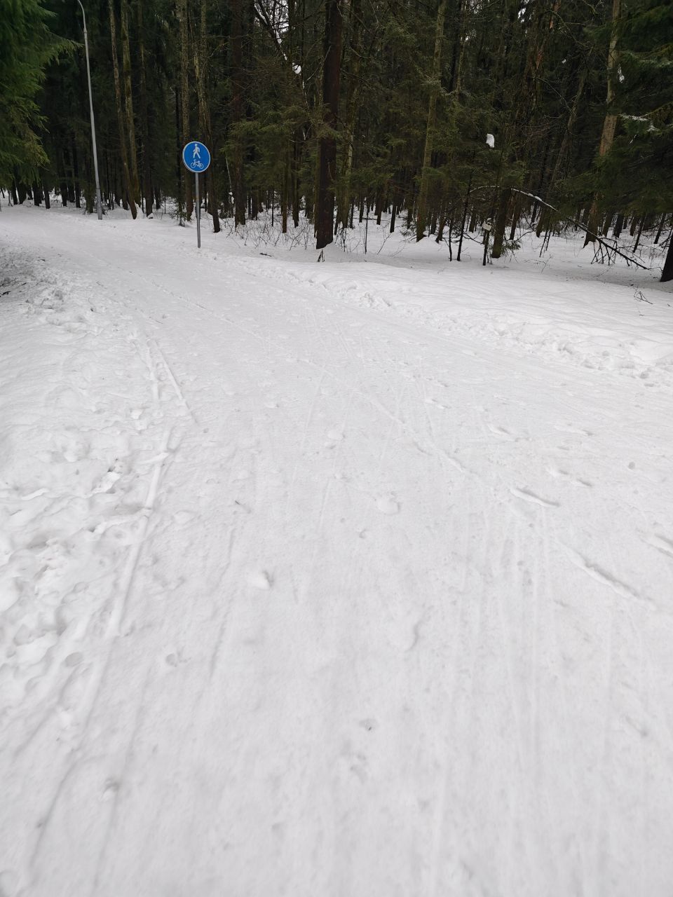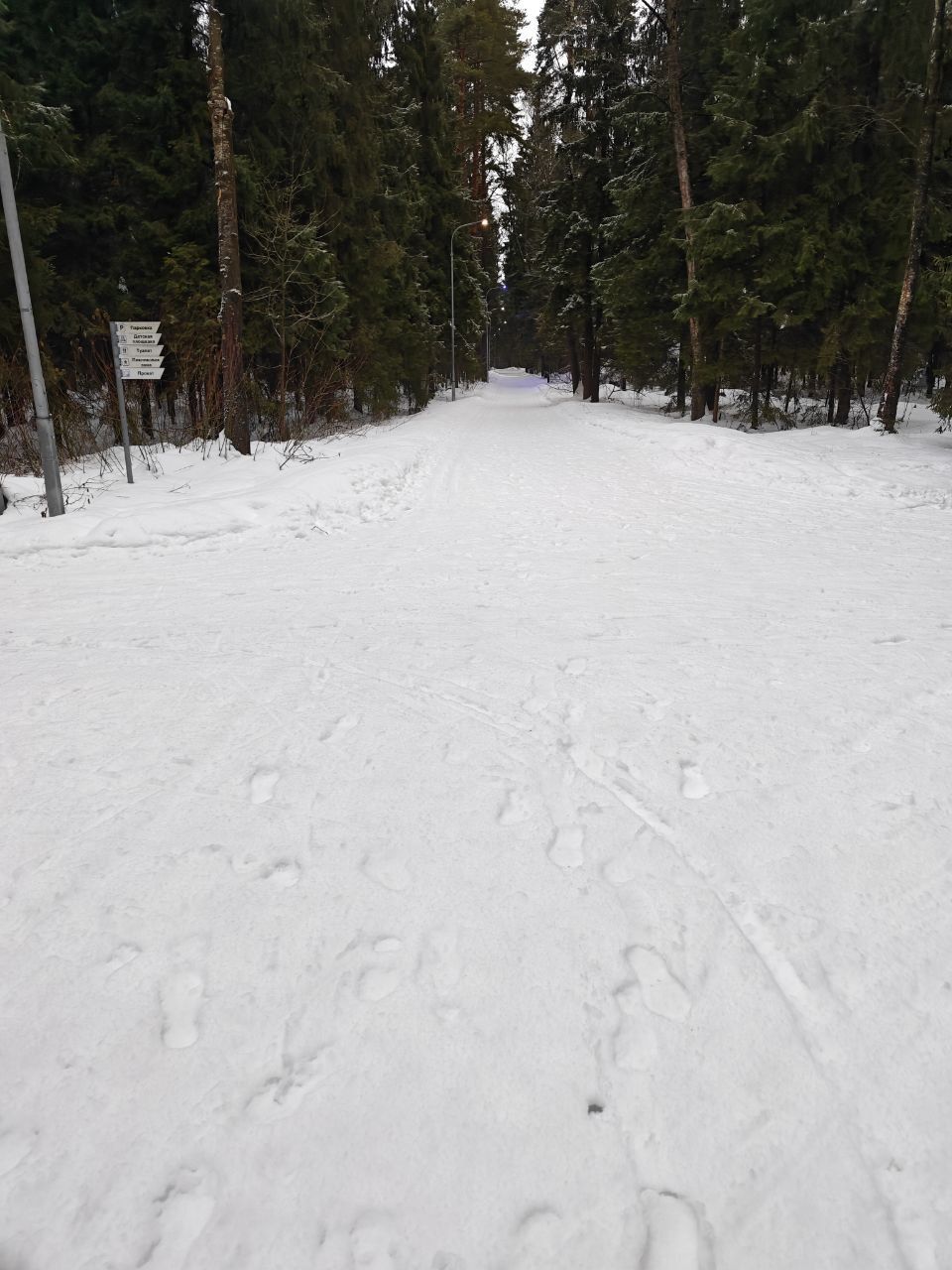 В лесопарке для текущей погоды очень хорошо. Катался от входа у заправки и до проката на Пироговском шоссе, к императорам не поехал. Плотно, жестко, к ночи подмораживает. Видно, что готовят, но топтуны, бегуны делают свое дело исправно. И леспаркхоз куда-то ездил, следы от машины видно, но не мешают.