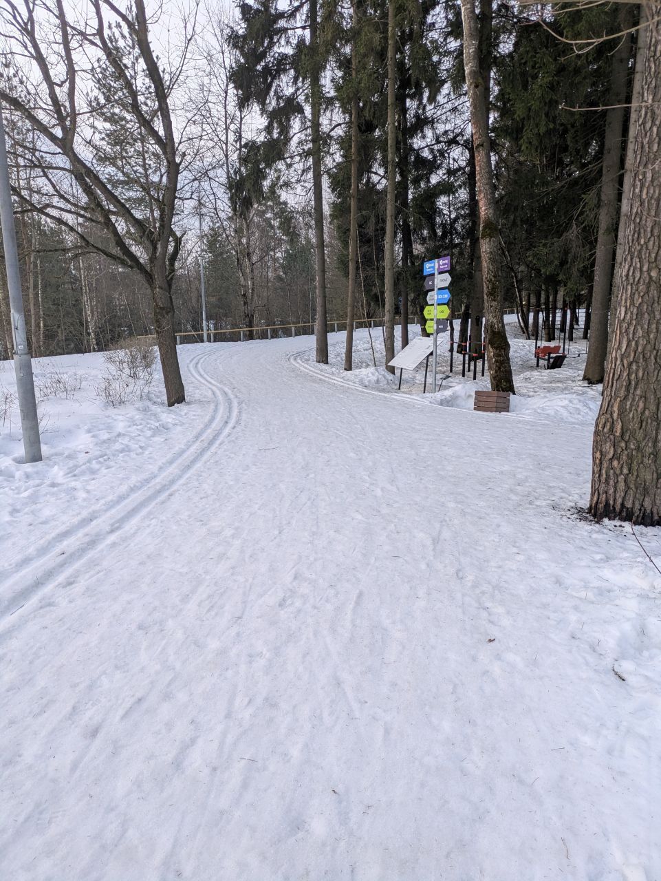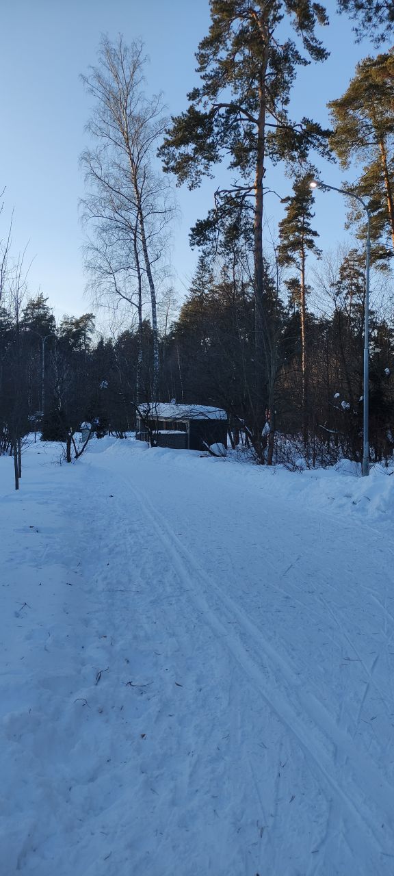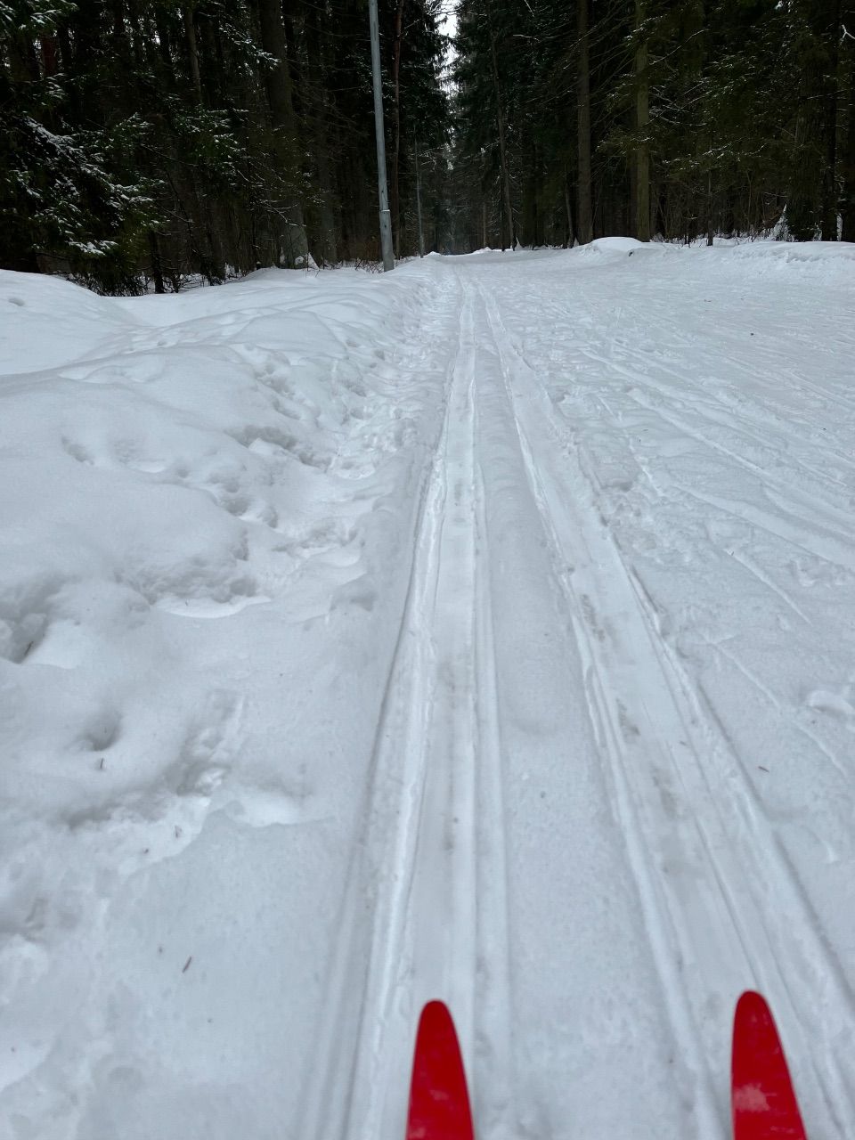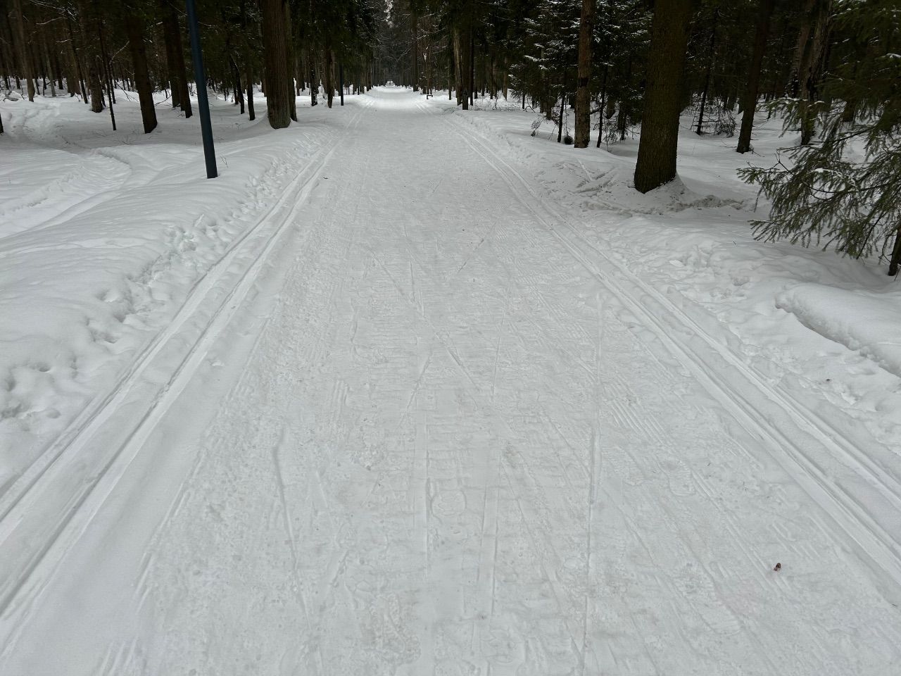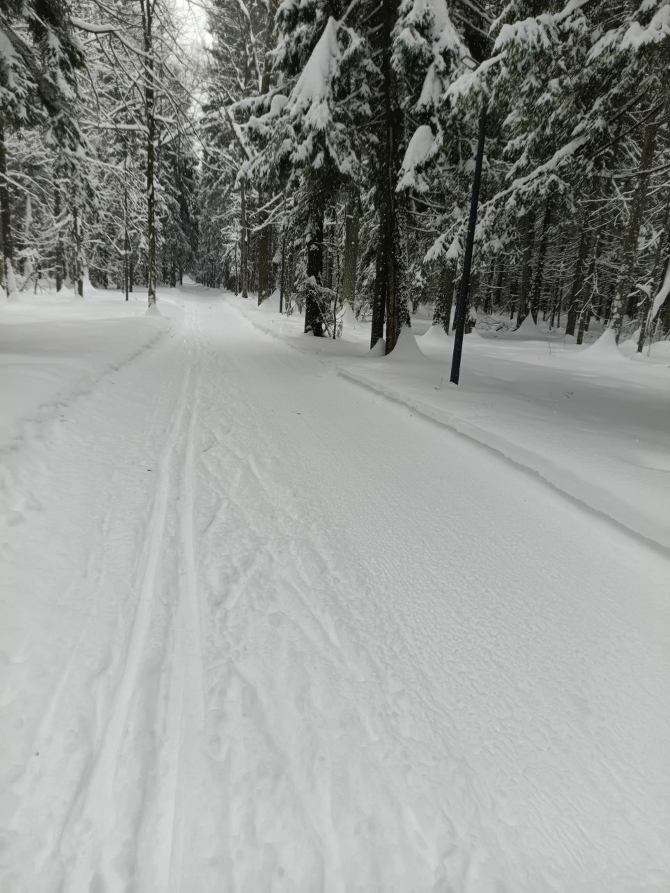 В лесопарке для текущей погоды очень хорошо. Катался от входа у заправки и до проката на Пироговском шоссе, к императорам не поехал. Плотно, жестко, к ночи подмораживает. Видно, что готовят, но топтуны, бегуны делают свое дело исправно. И леспаркхоз куда-то ездил, следы от машины видно, но не мешают.