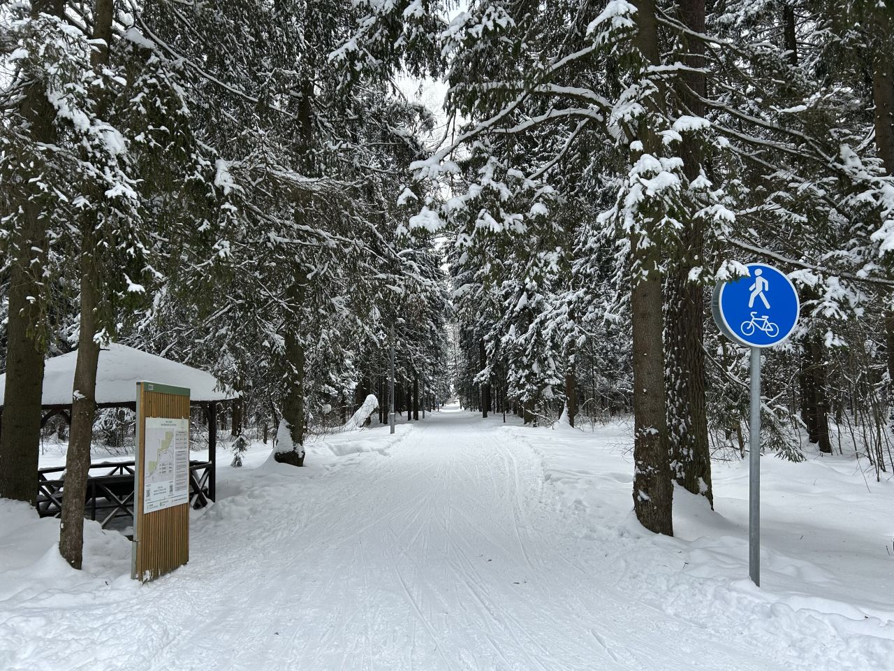 Здравствуйте, от входа у ТРЦ Июнь до Императорских Мытищ прекрасная дорожка. WC на отрезке Июнь - Императорские Мытищи не работают. Черныш на посту, снегоходом утрамбовано, лыжный курорт!