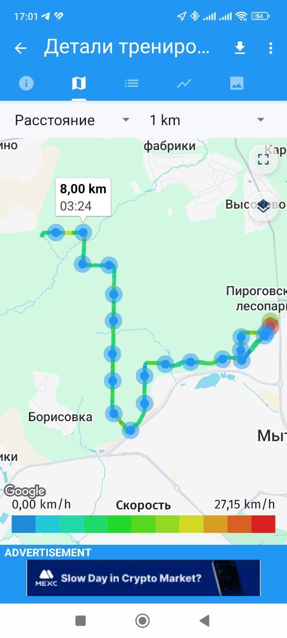 С 16 часов было средневато по скользяку. А с 18 часов прилично подмерзло и прям полетело. Много веточек, но они не мешают ехать, лишь слегка щекочат невры