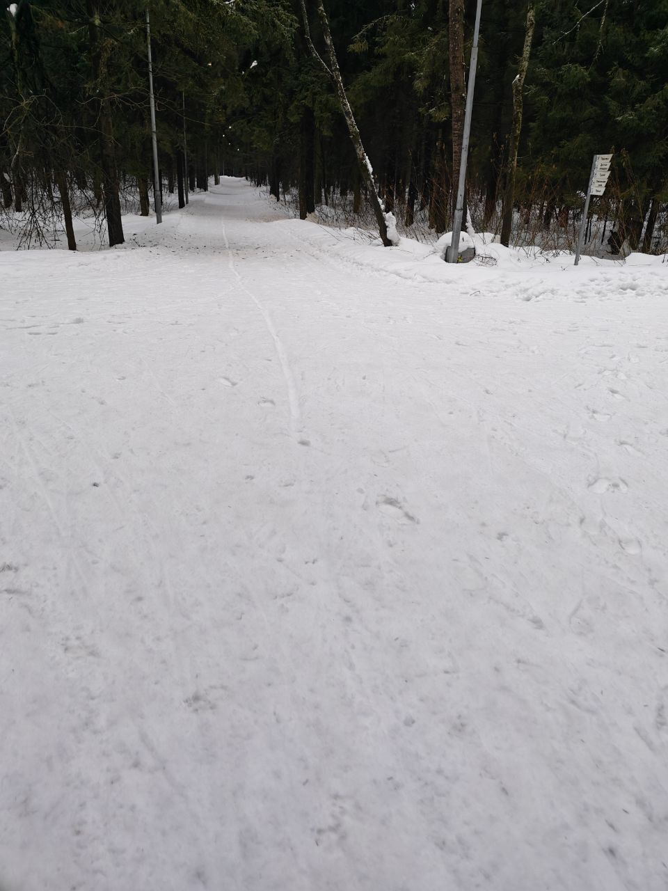 Каталась с 11.30 до 12.30 от Июня до Имп.Мытищ. На обратном пути навстречу проехал снегоход, закатал половину полотна фото2). Классика выглядит как самотоп (фото 1).