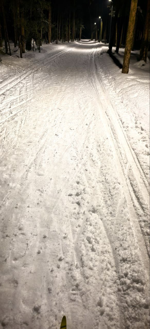 Прокатился до "июня" и обратно. Убедился в том, что коньковая трасса в достойном состоянии. Поменял на нормальные лыжи и никаких проблем. В паре тройке мест да просвечивался тёмной полоской, под коркой льда злосчастный бардюр но во первых не мешает движению, во вторых даже при случайном наезде не цепляет. А Деви клаб респект. Получил наконец-то удовольствие от катания в отличие от испорченной субботы не буду говорить где за 550руб🥲