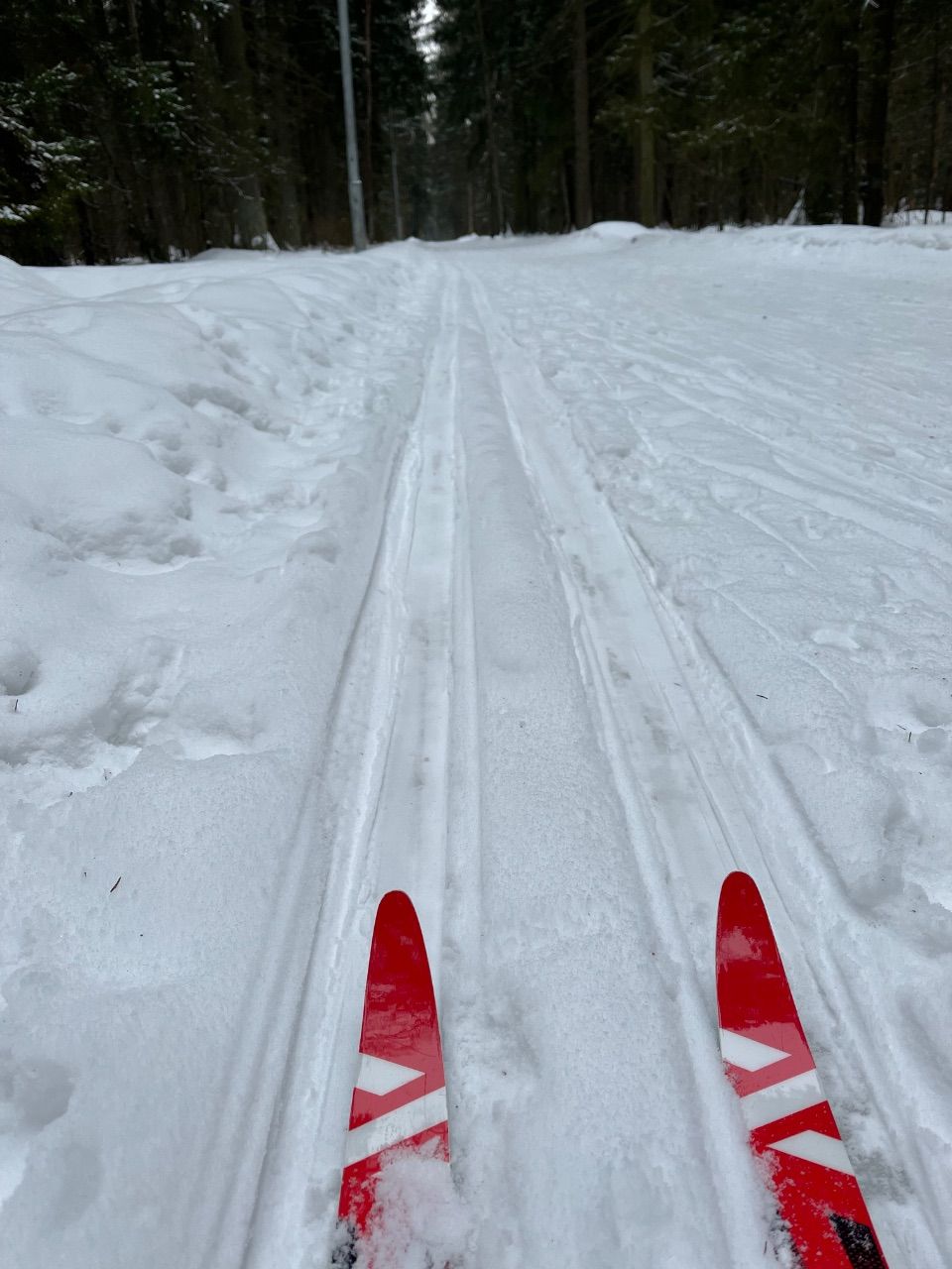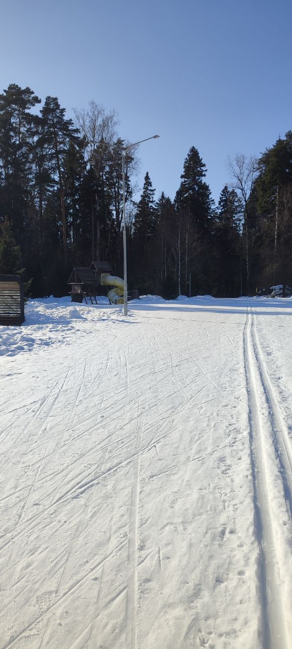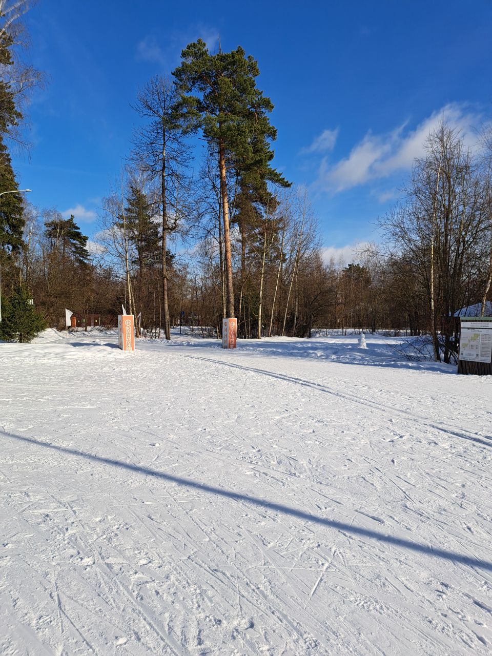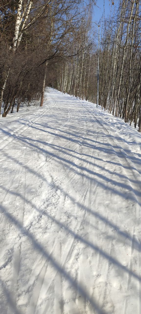 В Мытищах, конечно, леденисто и бетонисто, но зато лыжи едут сами, без лыжника) Можно кататься бесконечно, только лыжи лови по курсу) Еще и солнце вышло, вообще огонь. Без падений не обошлось, но эмоции только положительные)