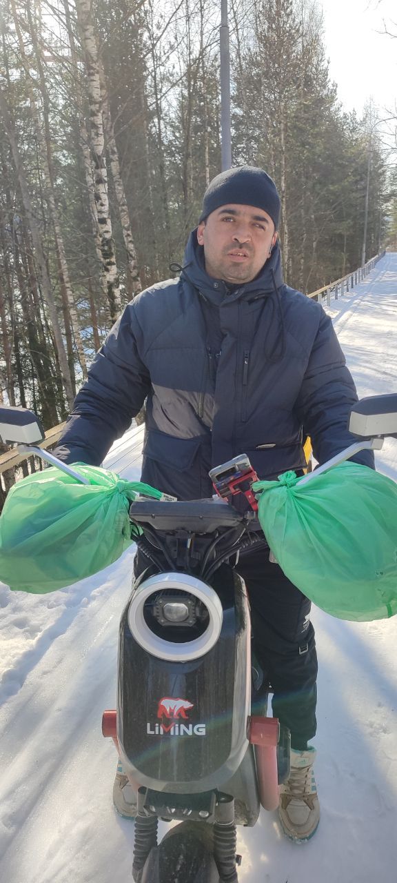 Чтобы катание стало на троечку, одному курьеру на электромопеде достаточно доехать в императорские мытищи и обратно в обычные, крепостные мытищи по лыжной трассе