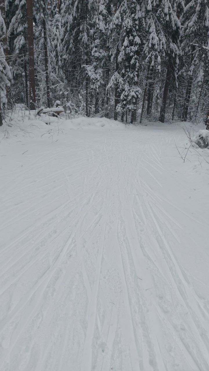 Трасса хорошо подготовлена. Прокатился по 4 километровому кругу, на основную часть не заезжал, не знаю. Земля нигде не проступает, хотя снега еще, конечно, не очень много. Коньком нормально, под классику еще маловато снега, хотя многие катаются. По вечерам включают освещение на 4 км круге.