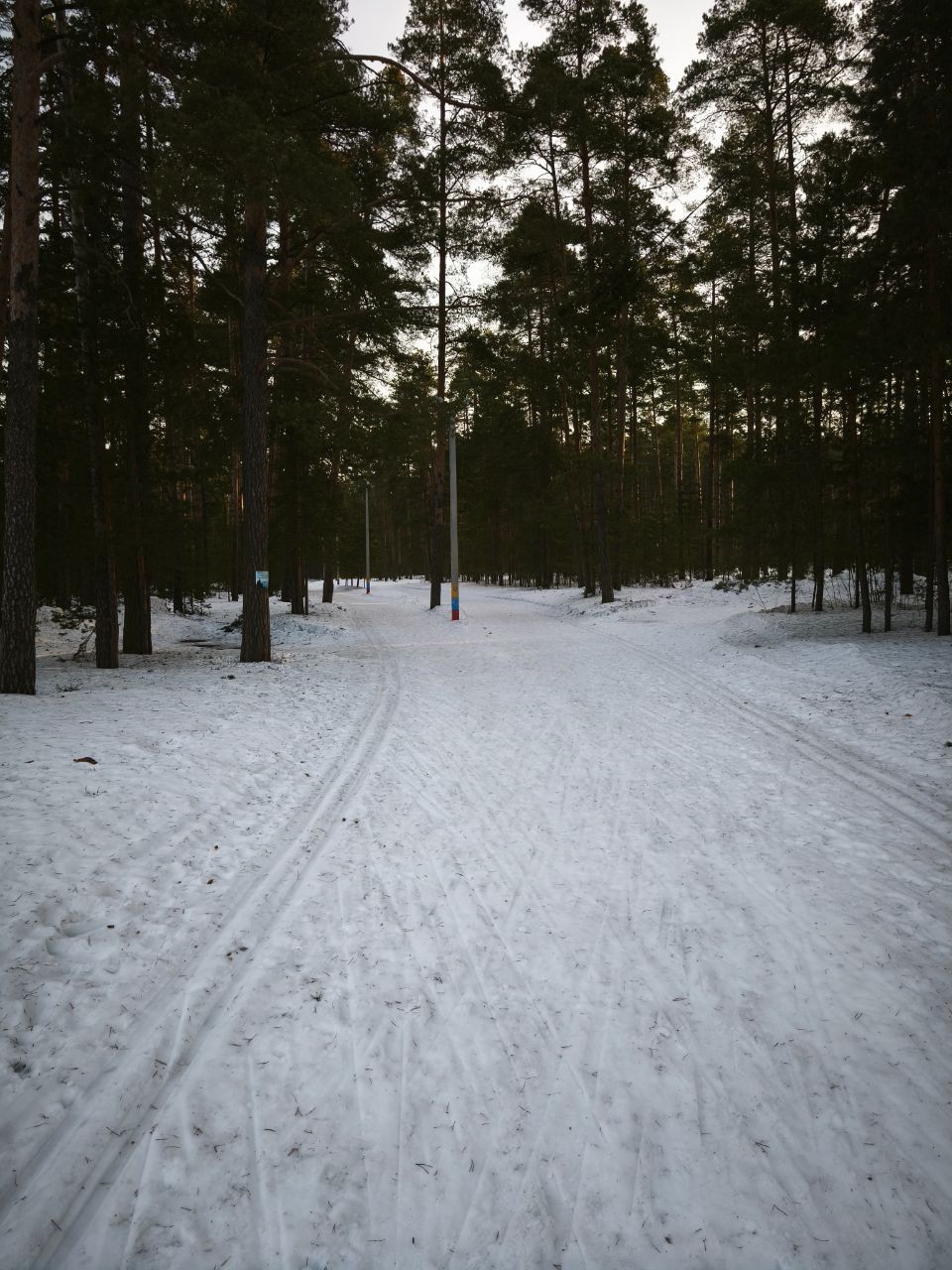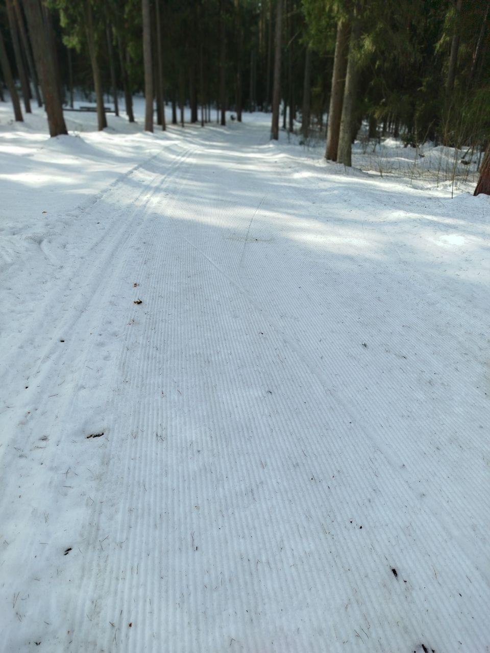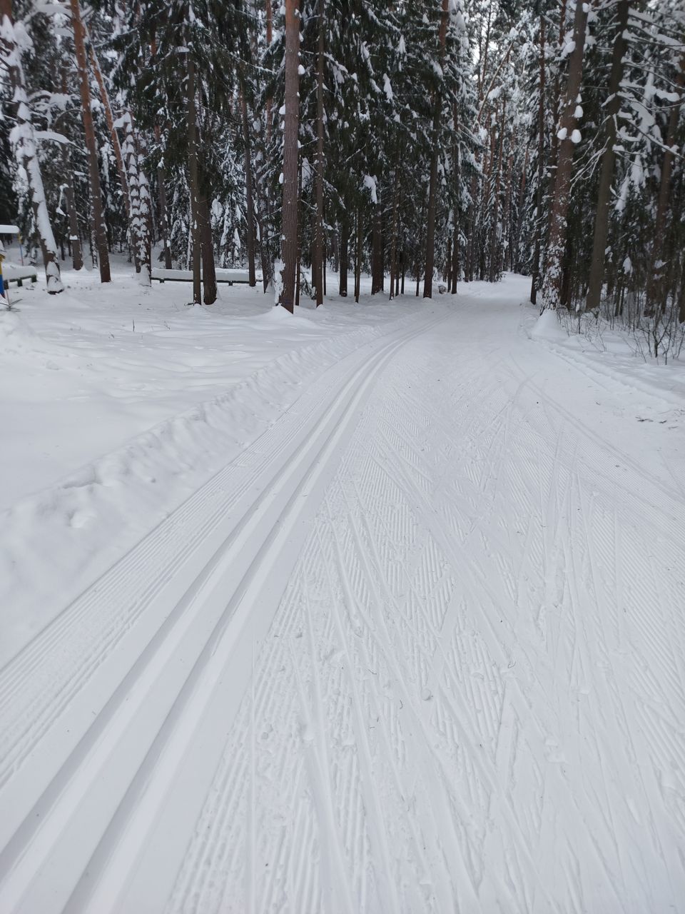 На утро 7.01.2026 ратраком пройдена вся трасса, освещенка плотнее, остальные петли мягче, палки проваливаются до земли. Много где ратрак достал песок/мусор. Желоба для классики почти везде, но в них тоже грязно.