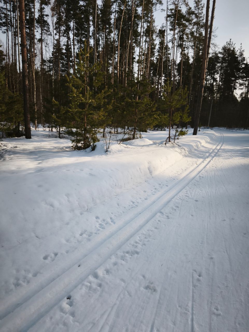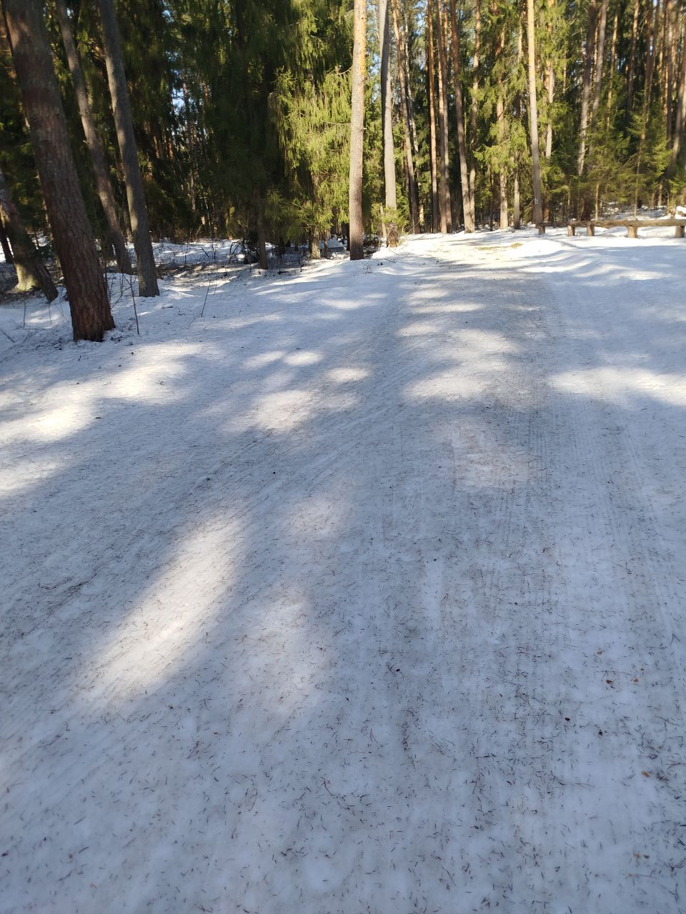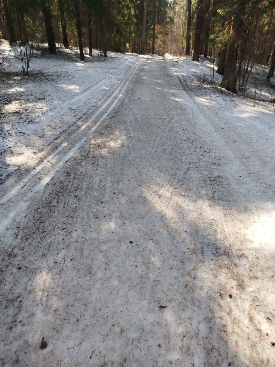 На утро 7.01.2026 ратраком пройдена вся трасса, освещенка плотнее, остальные петли мягче, палки проваливаются до земли. Много где ратрак достал песок/мусор. Желоба для классики почти везде, но в них тоже грязно.