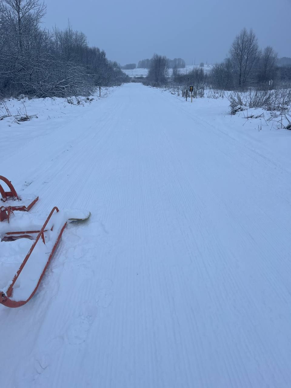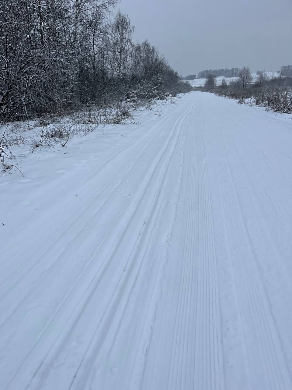 Из-за минимального снежного покрова, местами проглядывает трава и земля, рекомендую брать тренировочную пару либо асфальтовые. На данный момент трасса волнообразная, лыжники, у кого с курсовой устойчивостью все в порядке, покатают в удовольствие.