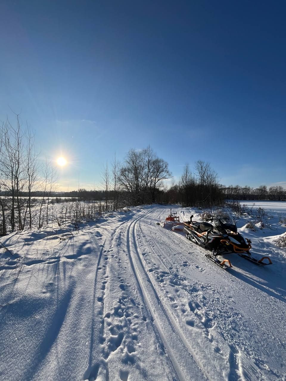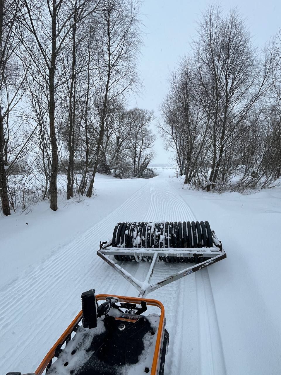 Сегодня укатываем трассу снегоходом. После обеда попробуем прикатать катком. Много переметов. Трасса сейчас не пригодна для катания