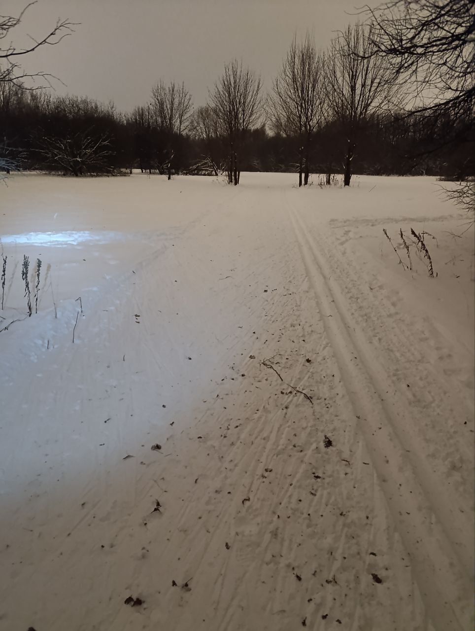 Прошла сегодня первый круг по самотопу, пухляк сильный, цепляла лыжами снег и иногда траву под ним ( все ожидаемо, самотоп же )
