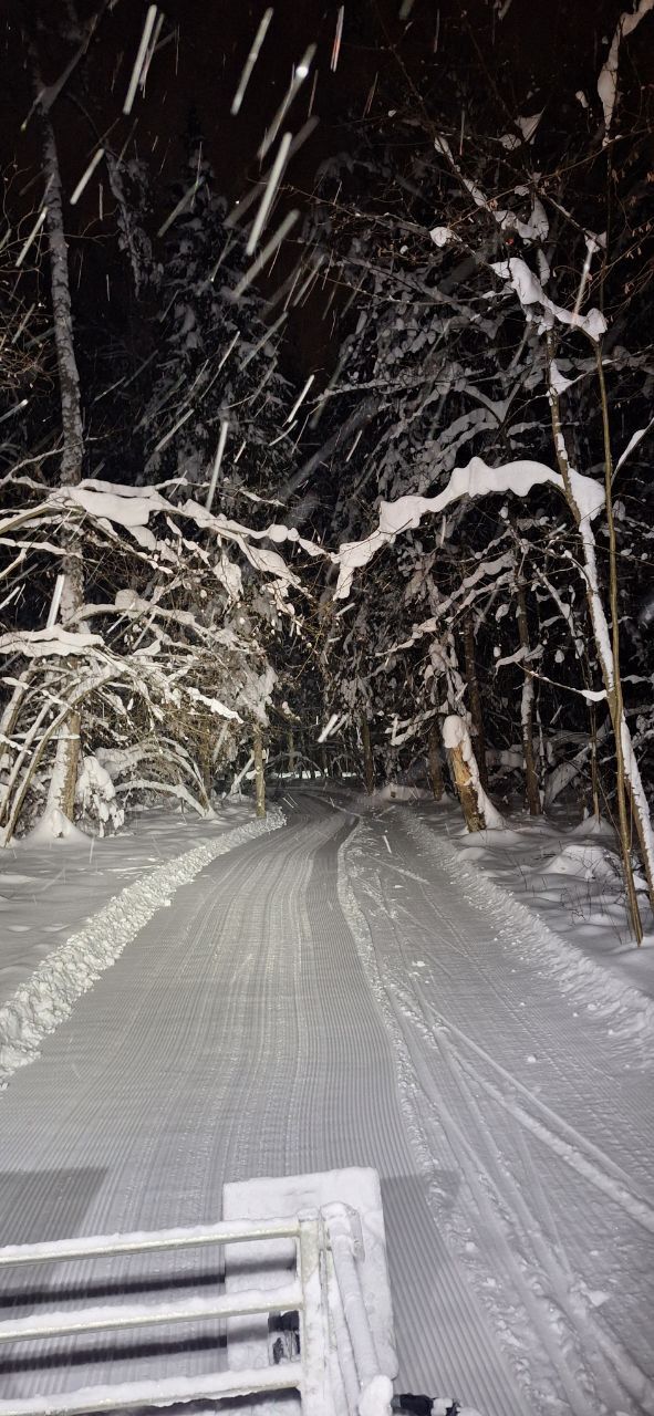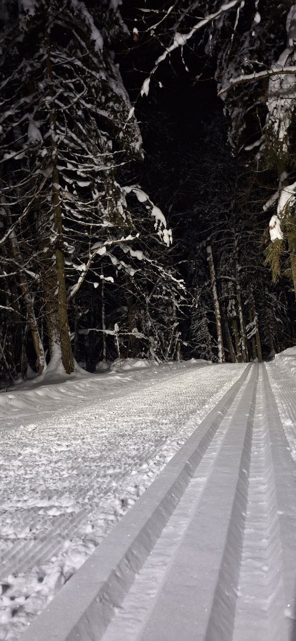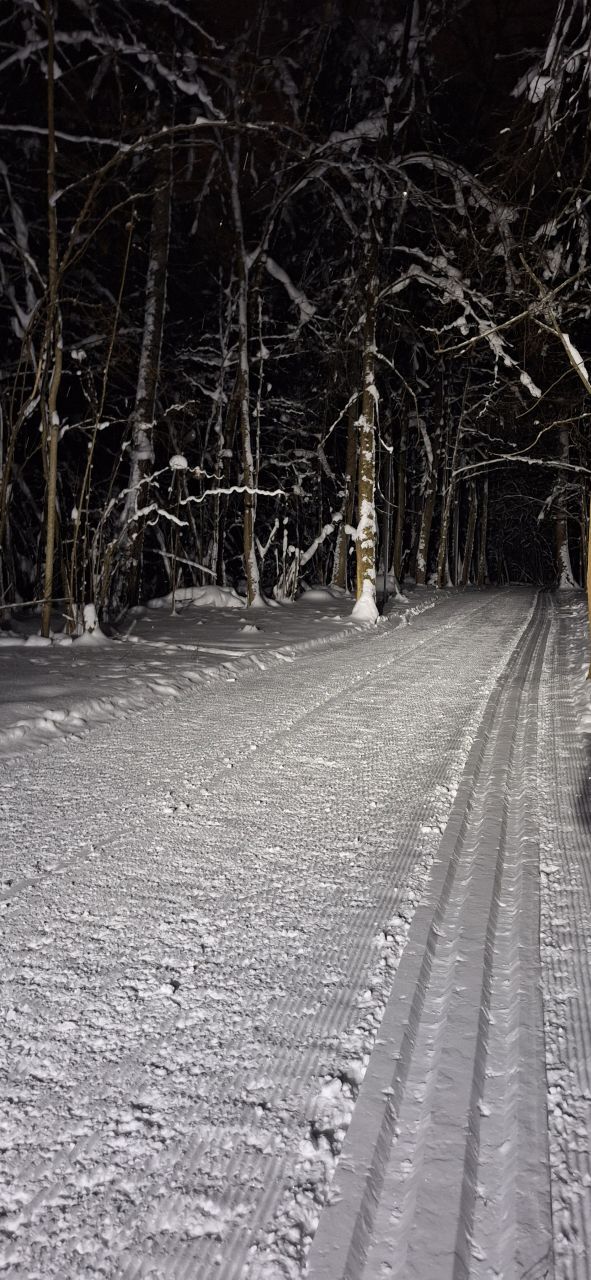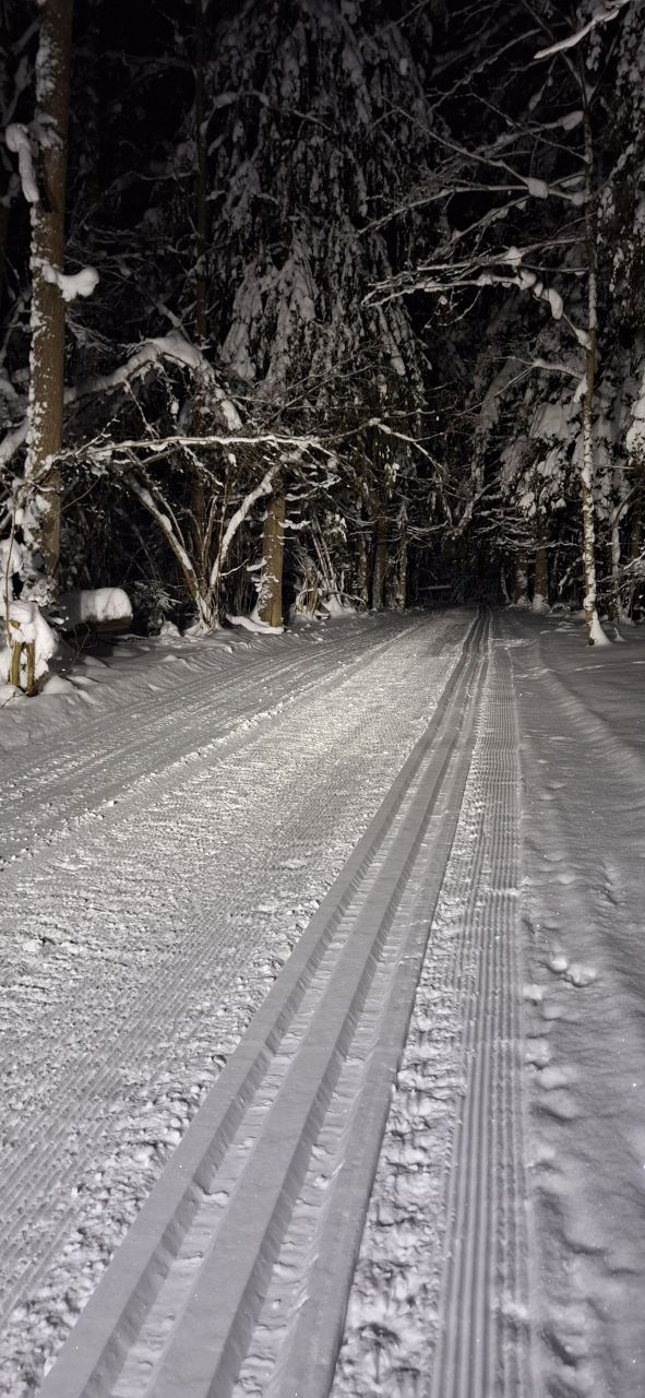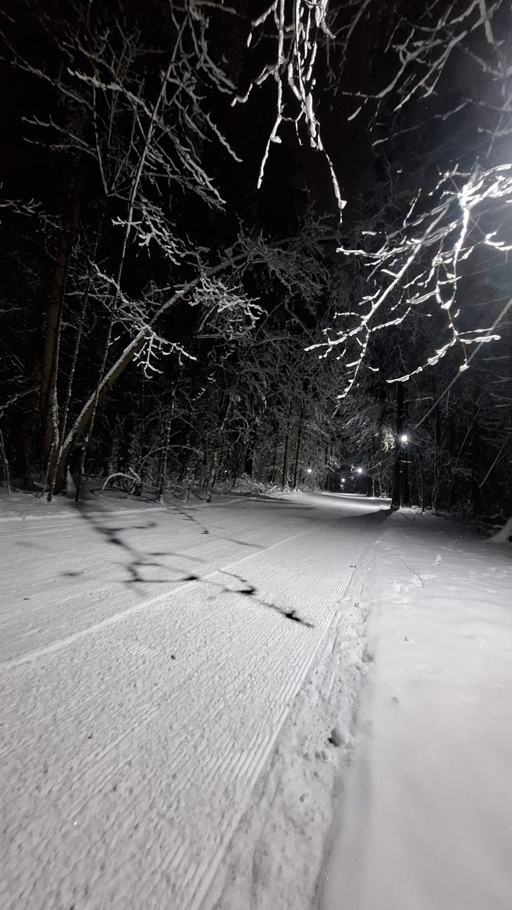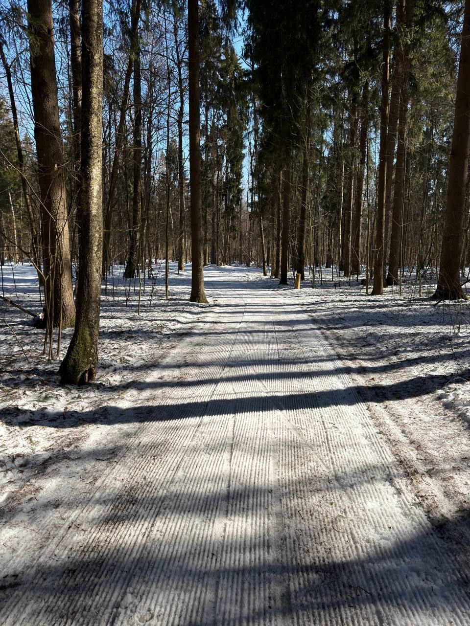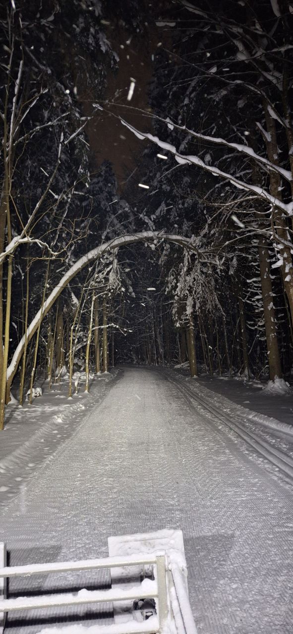 Круги 1 км, 2 км, 3 км и 5 км размечены светоотражающими элементами (левая сторона красным цветом, правая — желтым). Очень удобно при катании в темное время с фонариком.