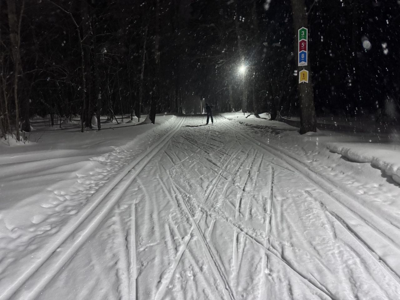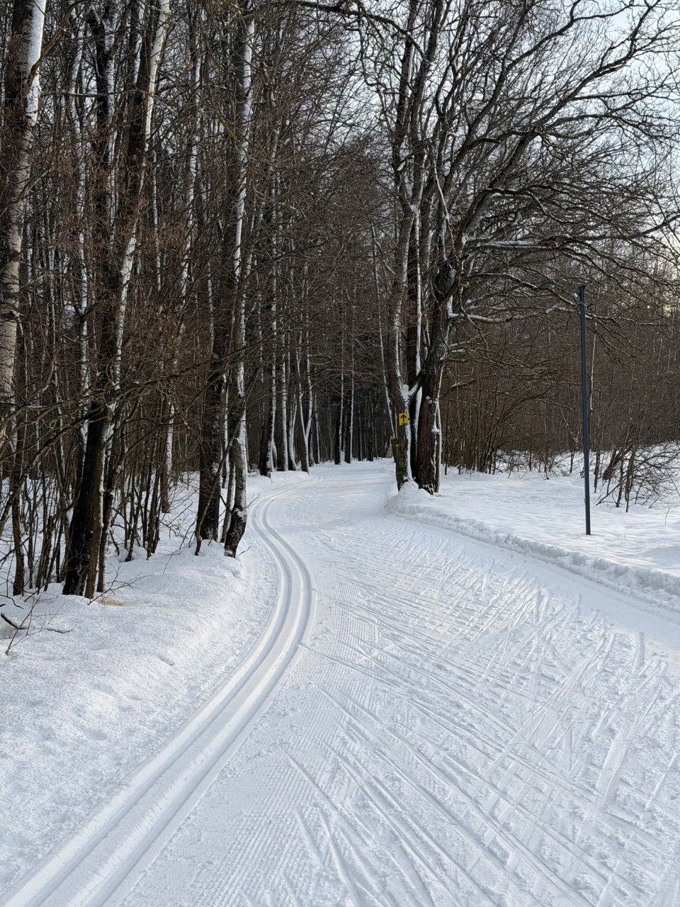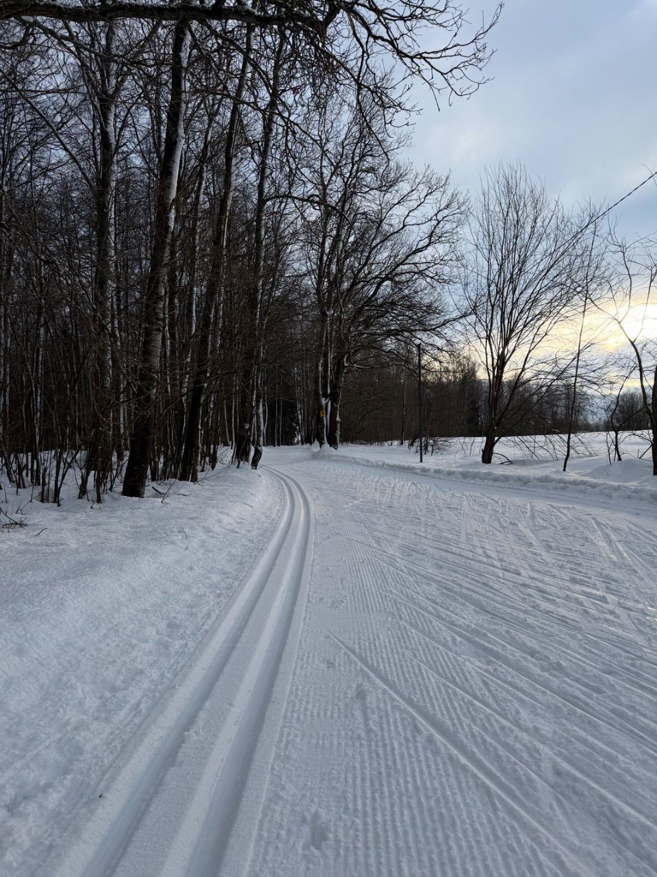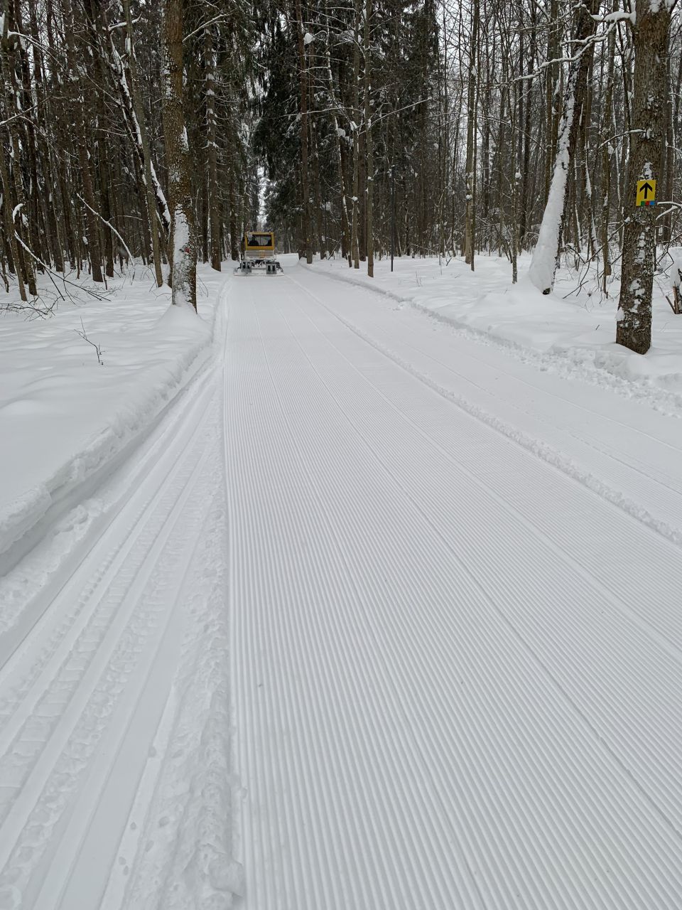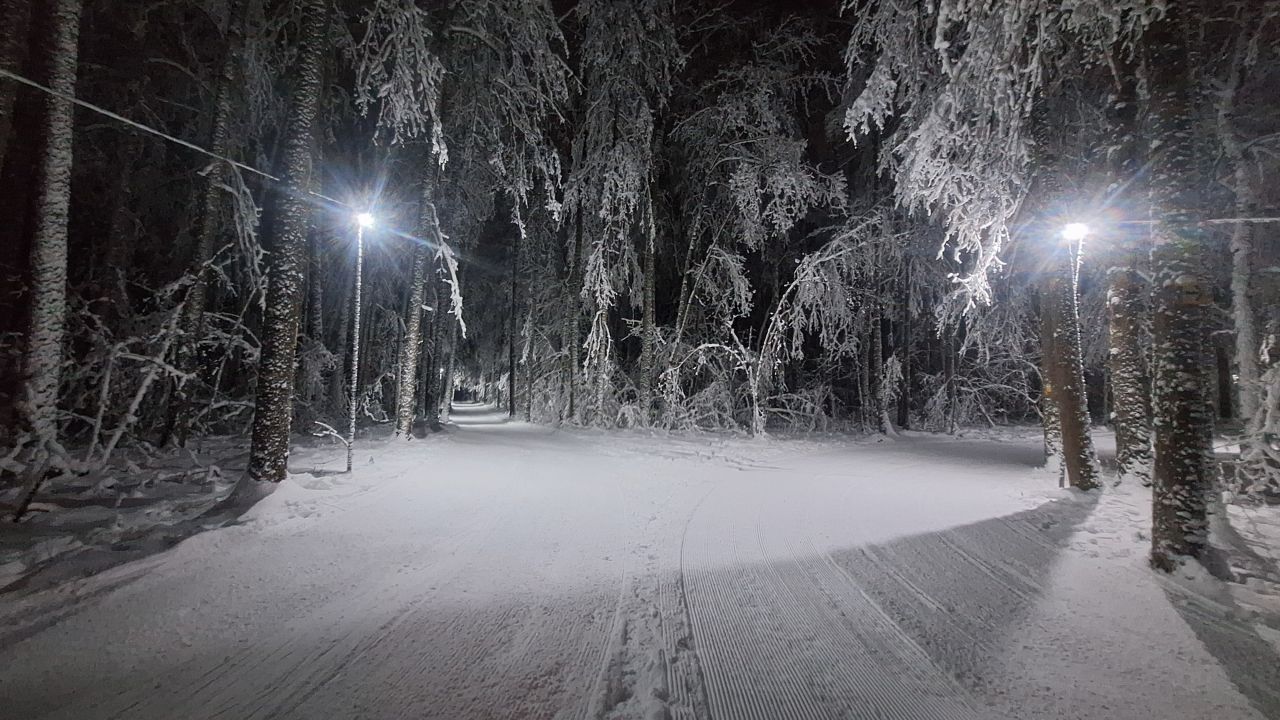 Круги 1 км, 2 км, 3 км и 5 км размечены светоотражающими элементами (левая сторона красным цветом, правая — желтым). Очень удобно при катании в темное время с фонариком.