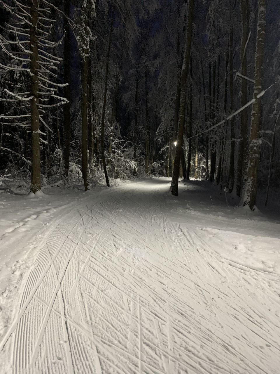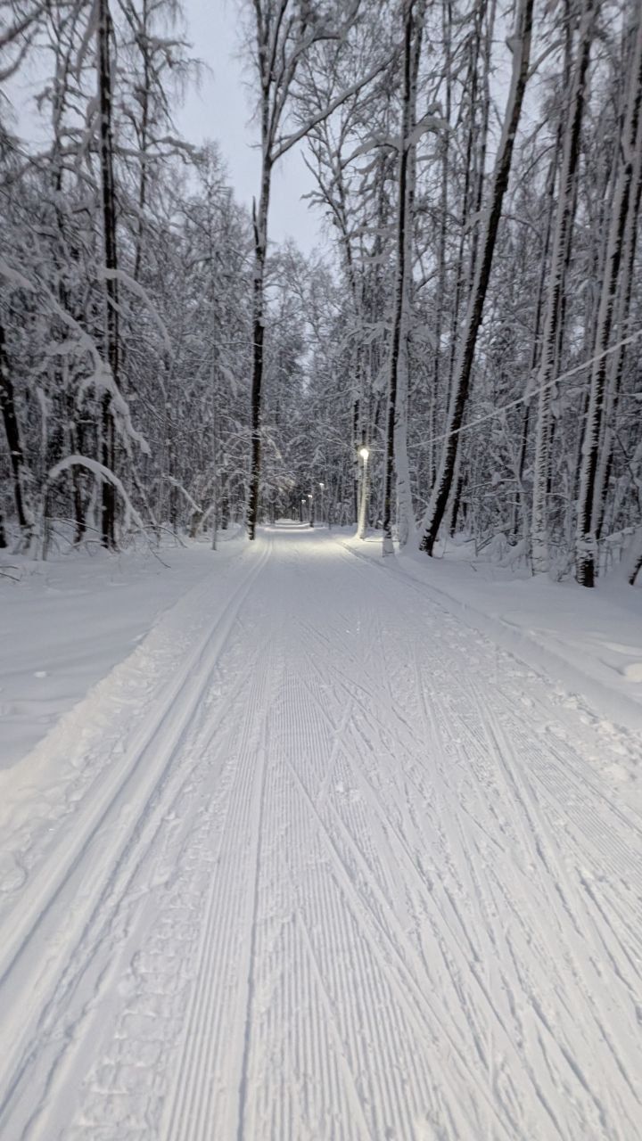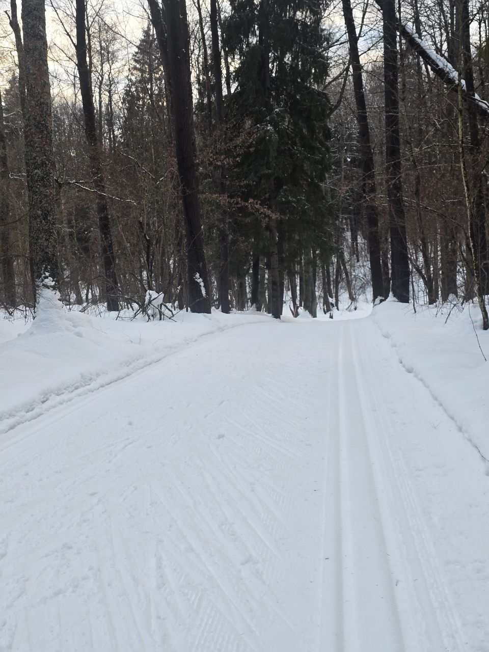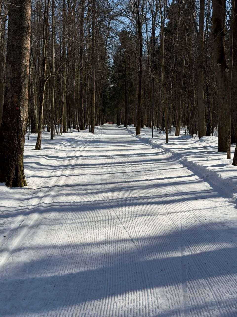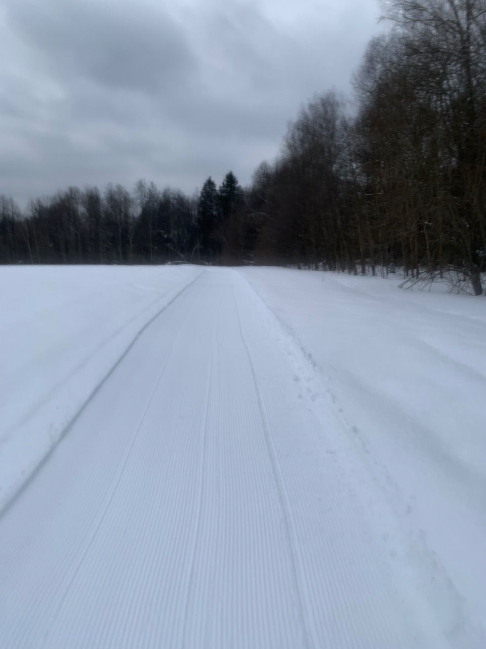 Круги 1 км, 2 км, 3 км и 5 км размечены светоотражающими элементами (левая сторона красным цветом, правая — желтым). Очень удобно при катании в темное время с фонариком.